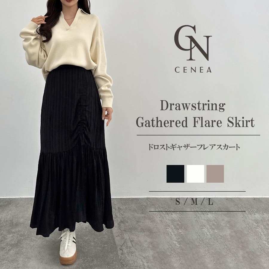 CENEA ドロストギャザーフレアスカート