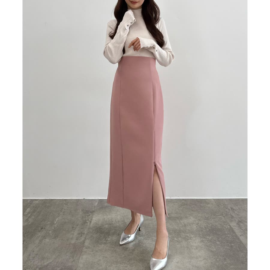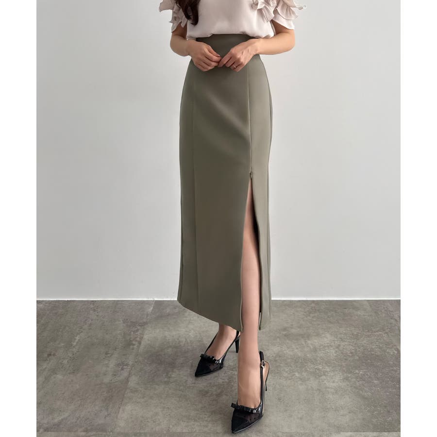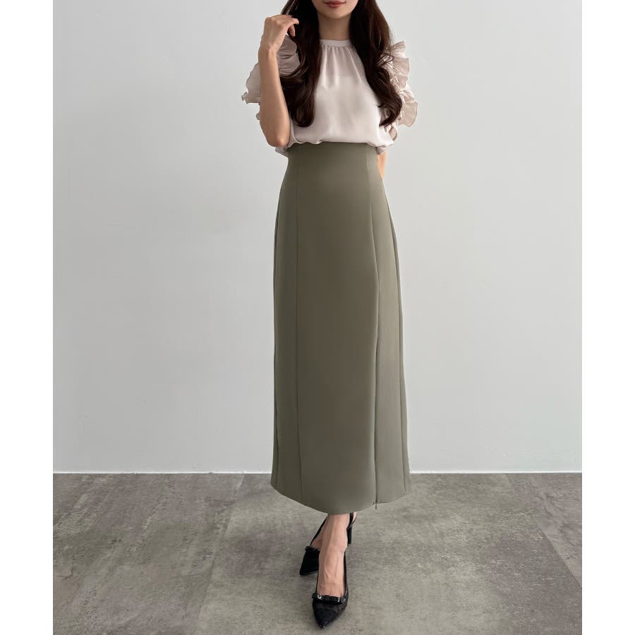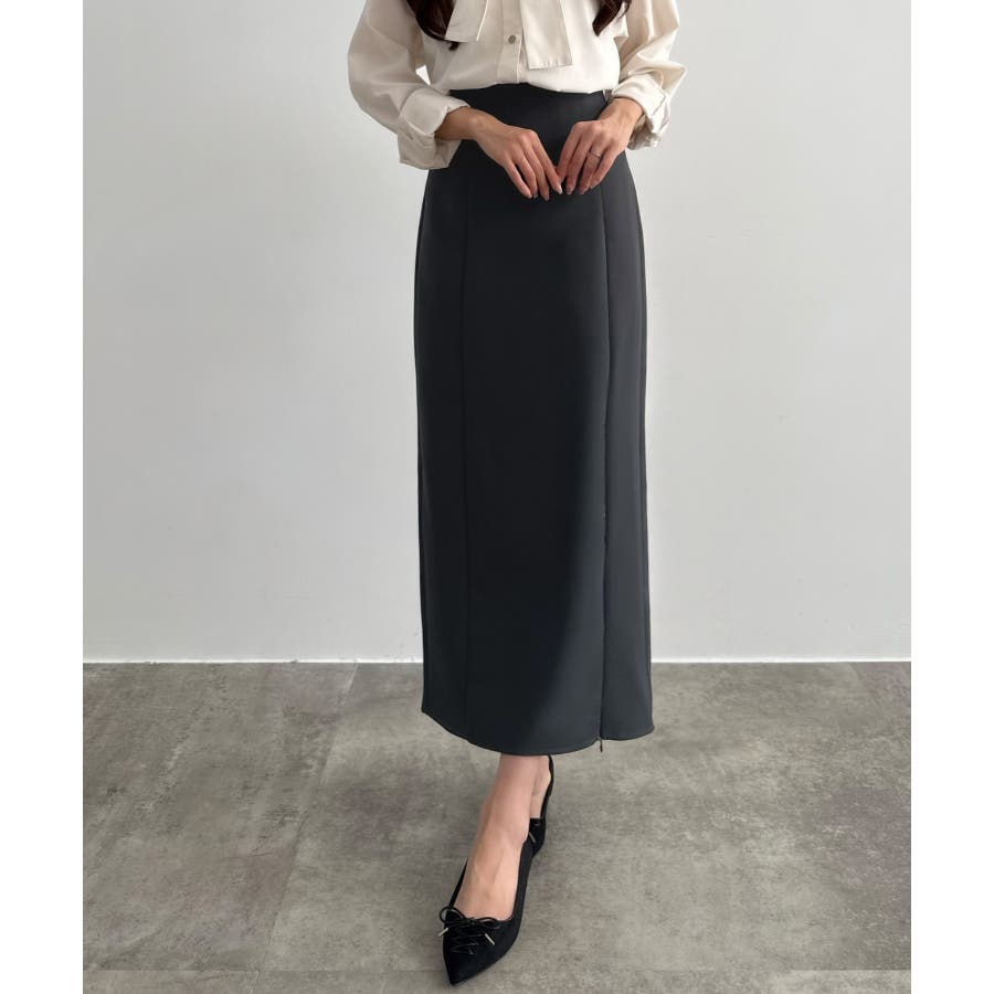 CENEA ハイウエストジップIラインスカート(通年生地)