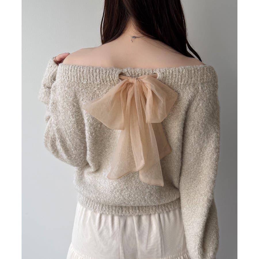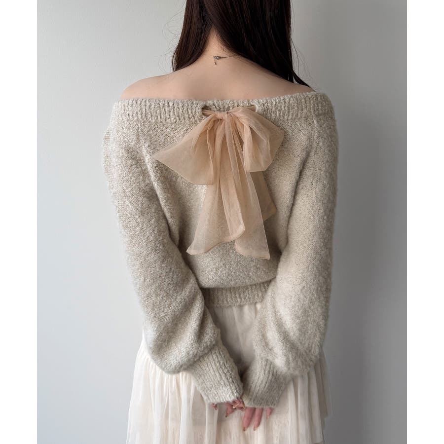 mipiarl 2WAYネックバックリボンニット
