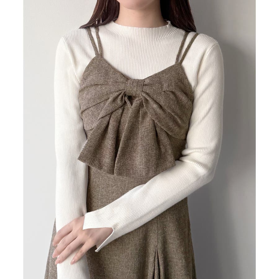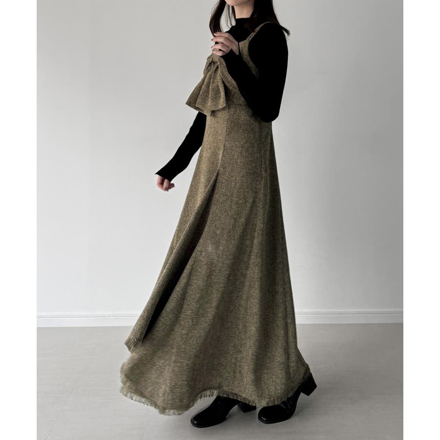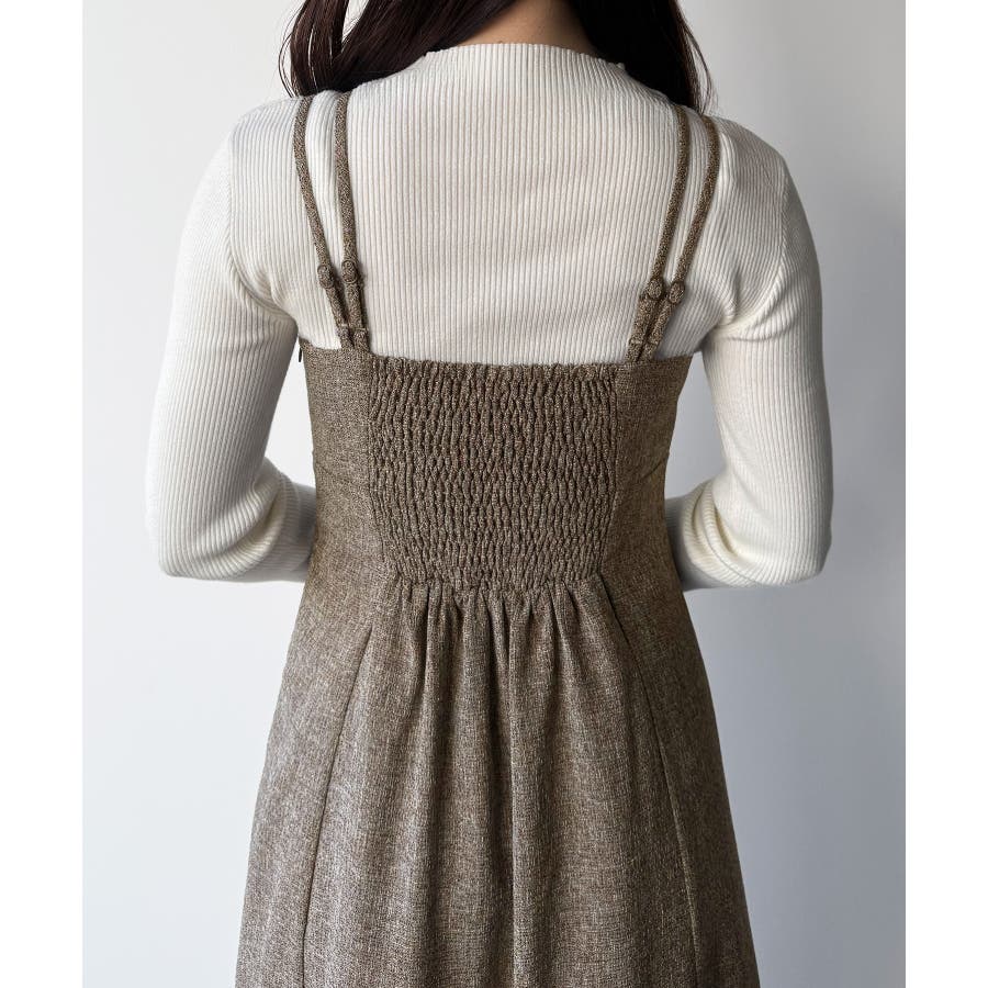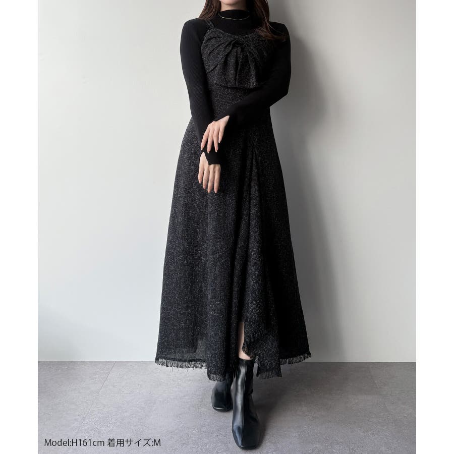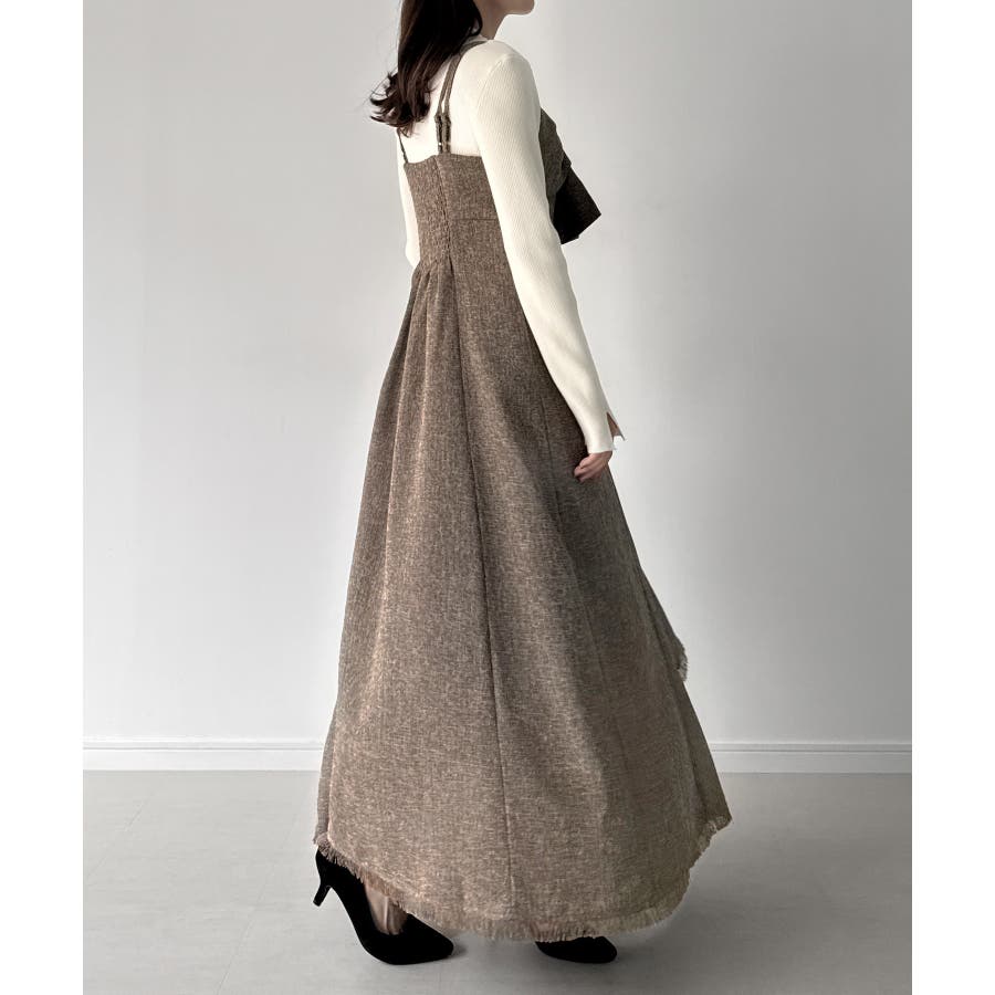mipiarl 薄手ツイードフロントリボンラッフルキャミワンピース