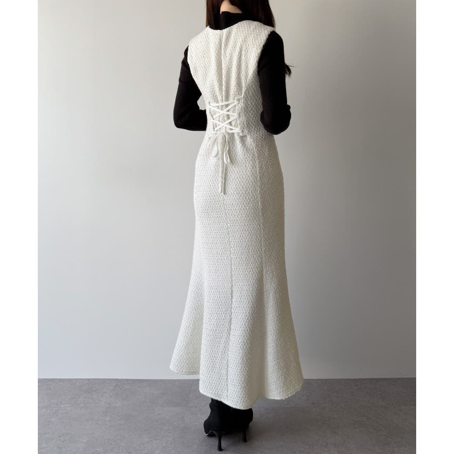 mipiarl ツイードレースアップマーメイドジャンスカ