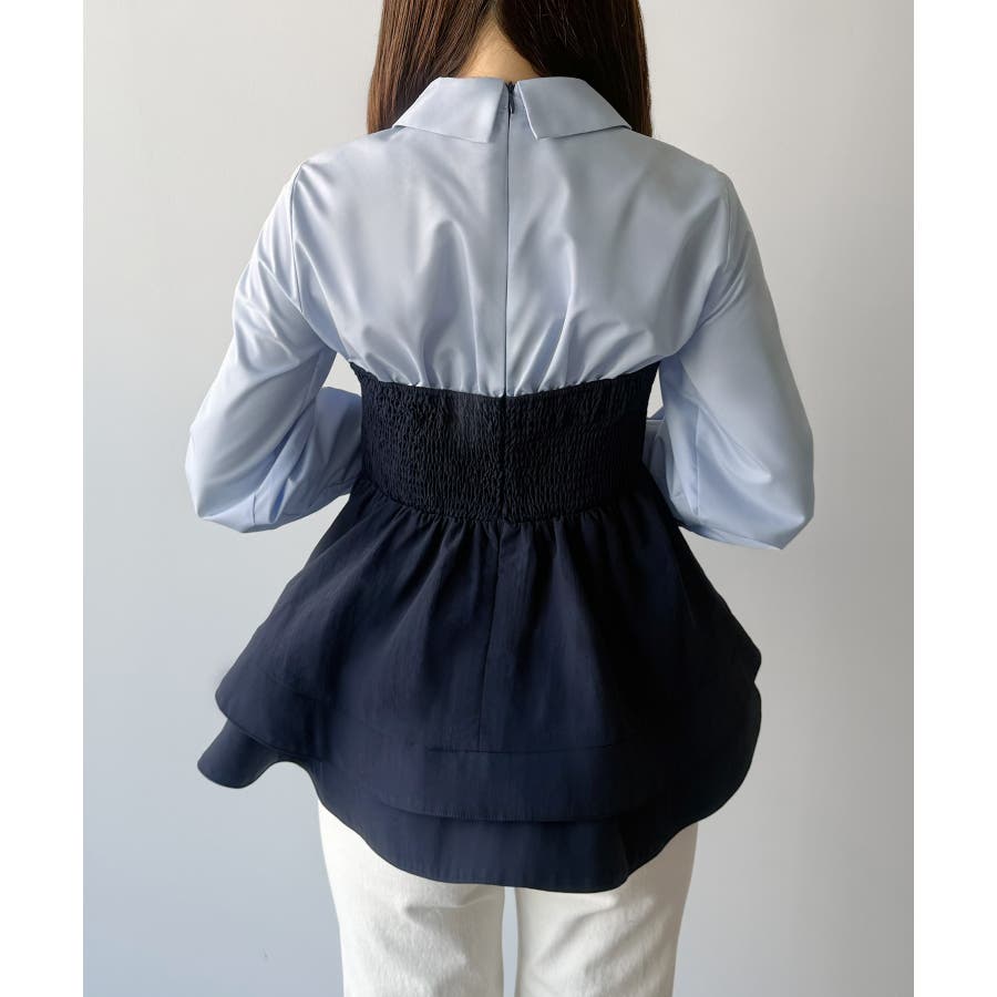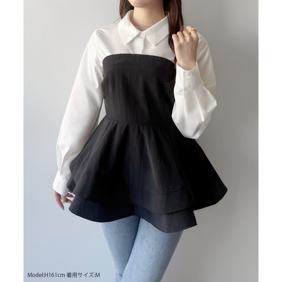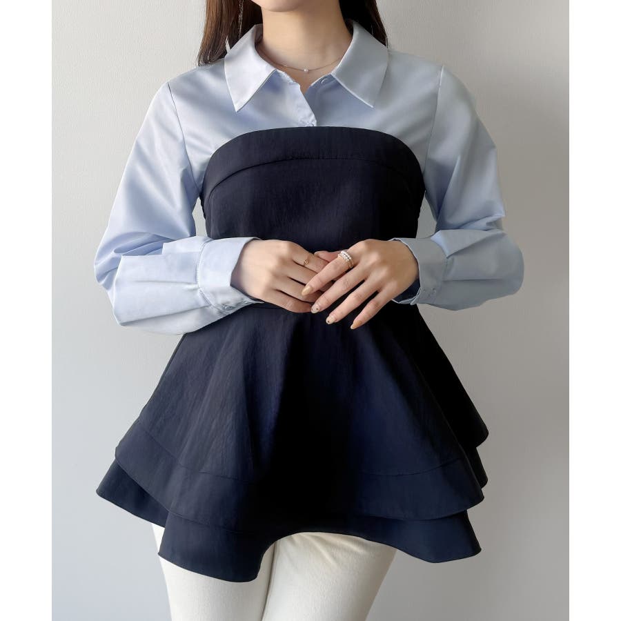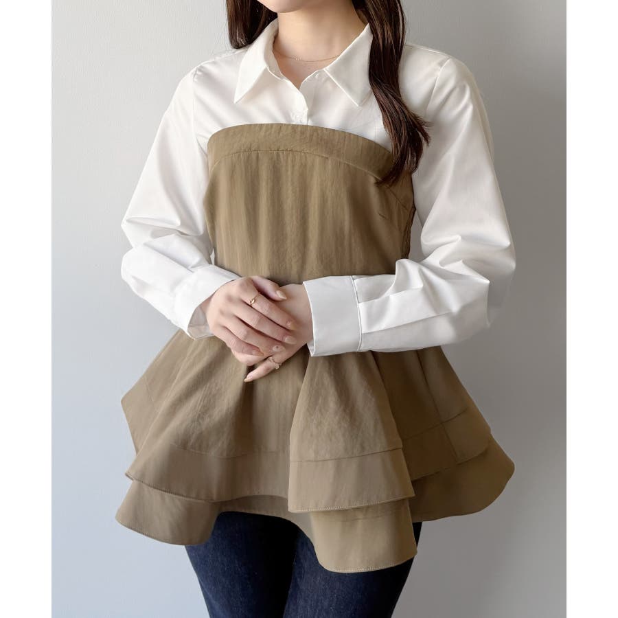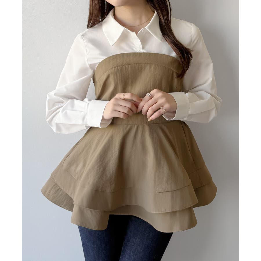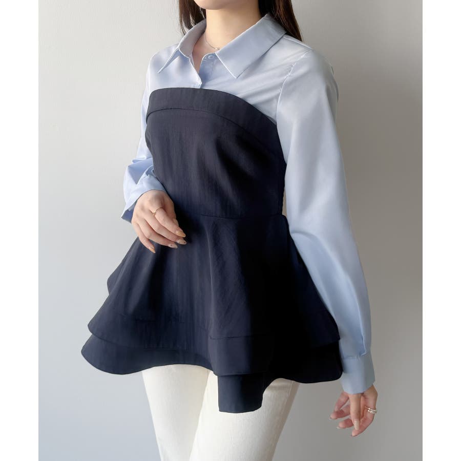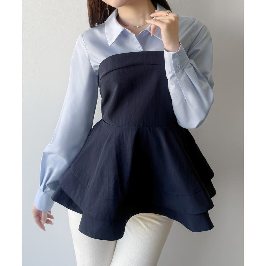 mipiarl シャツドッキングペプラムビスチェ