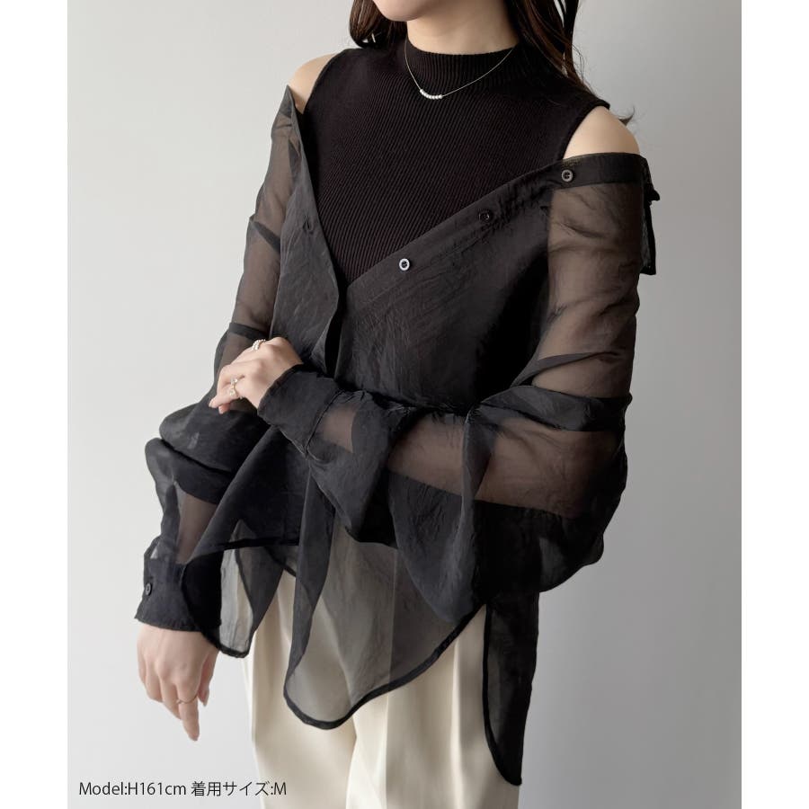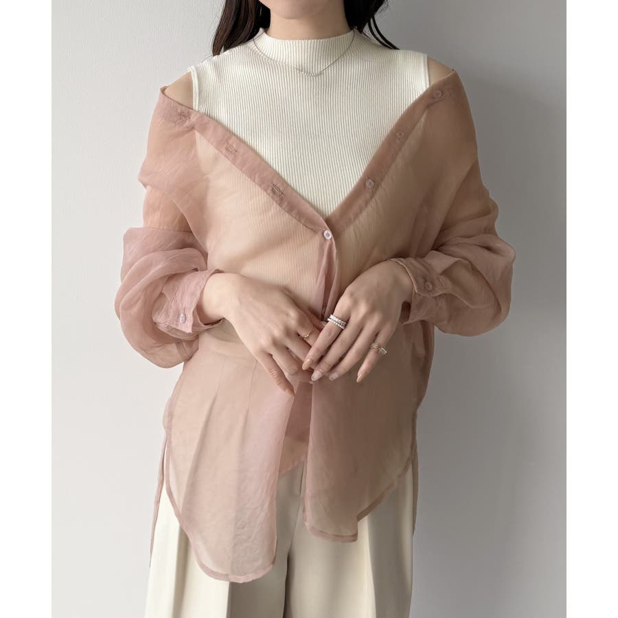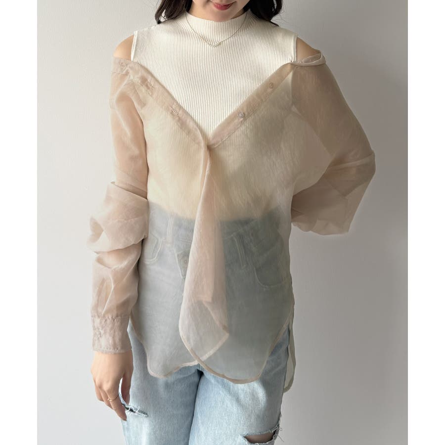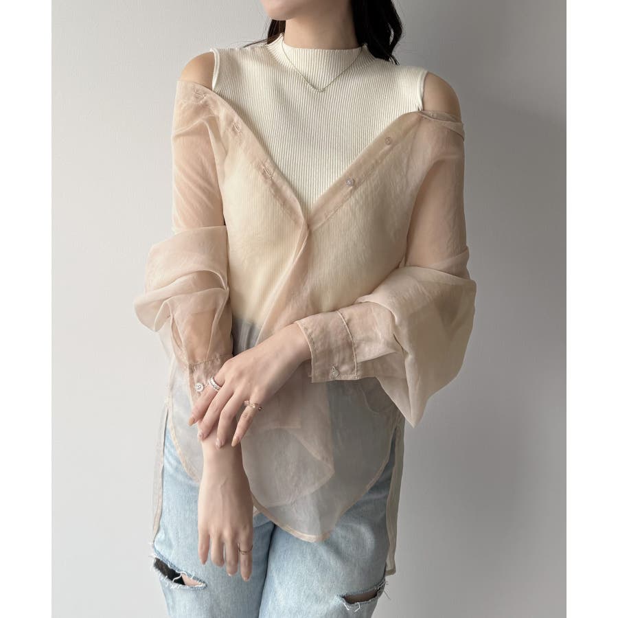 mipiarl 2WAYシャツブラウス+ノースリニットセット