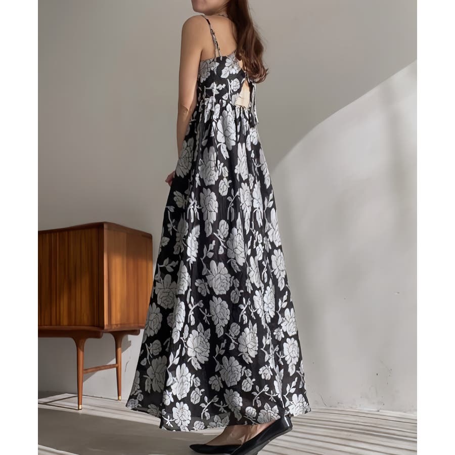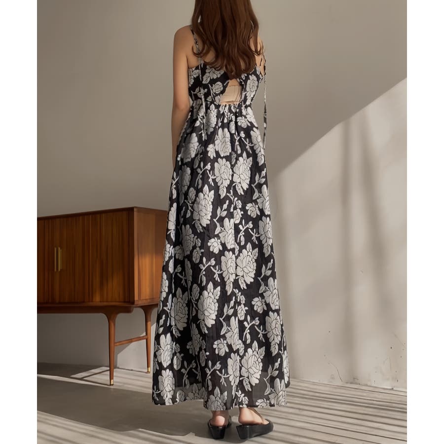 フラワー柄シアージャガードバックリボンワンピース