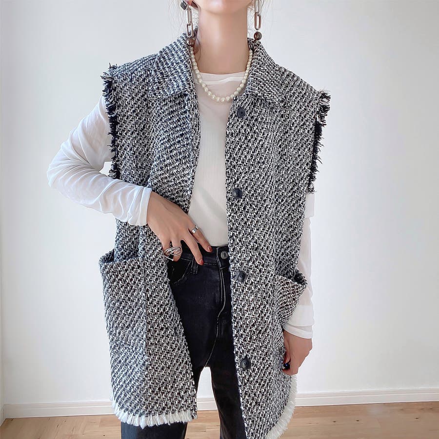 オーバーシルエットツイードベスト