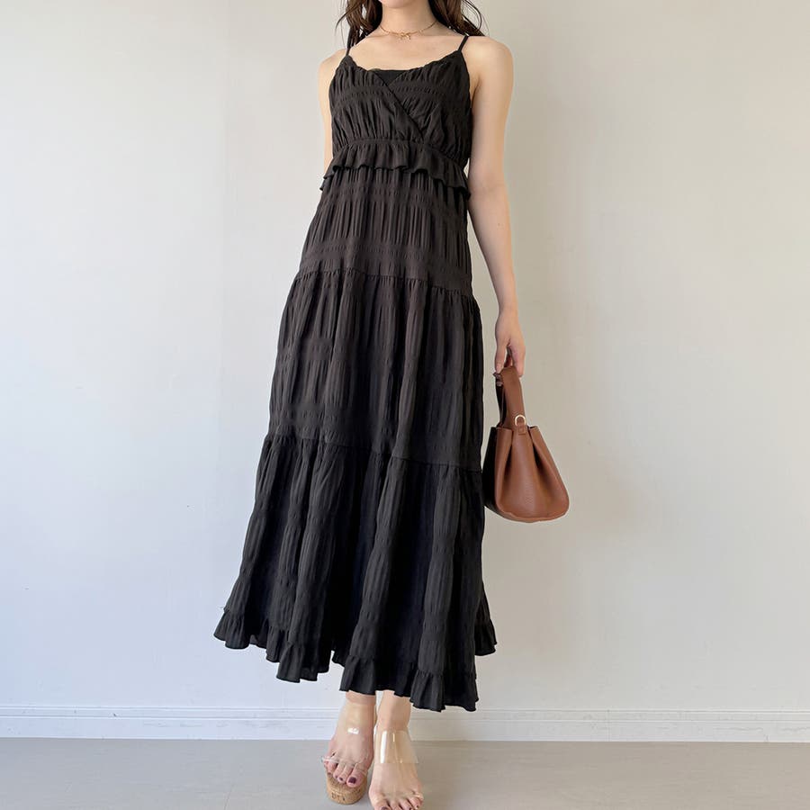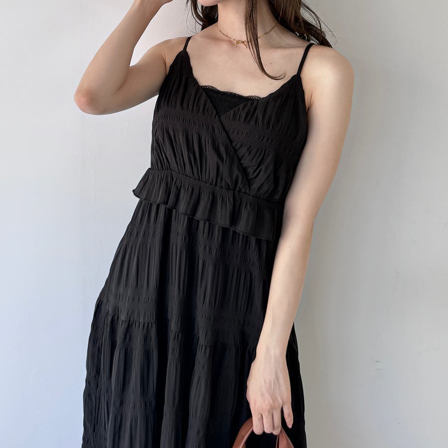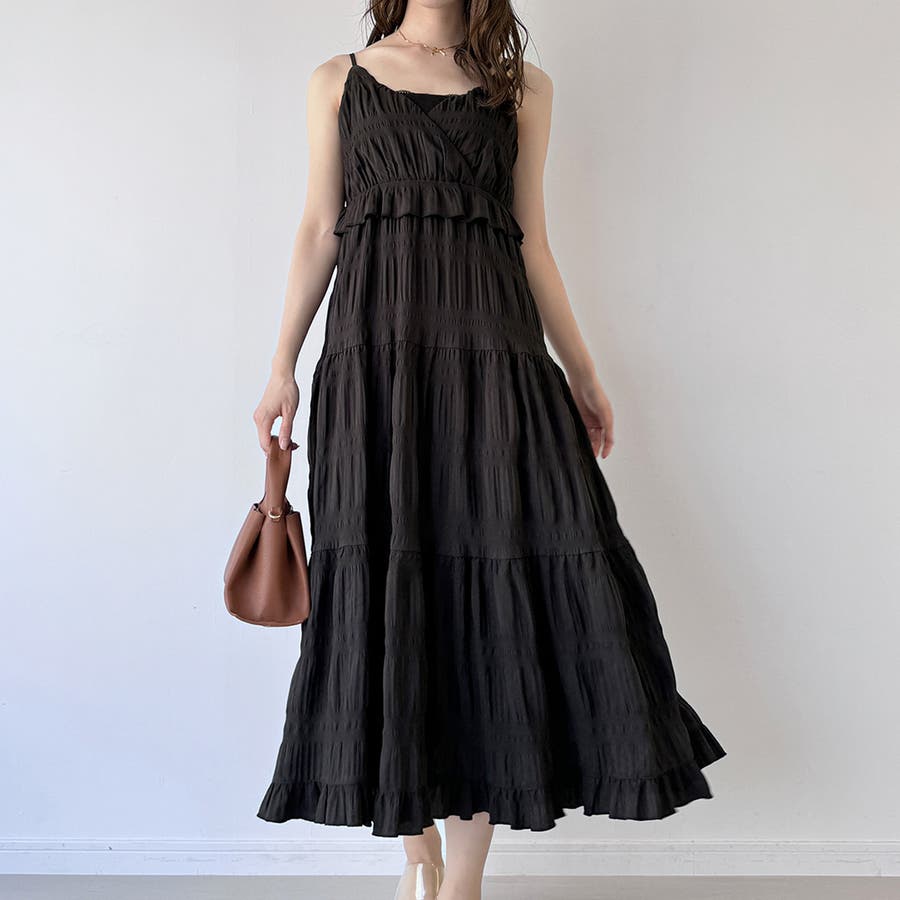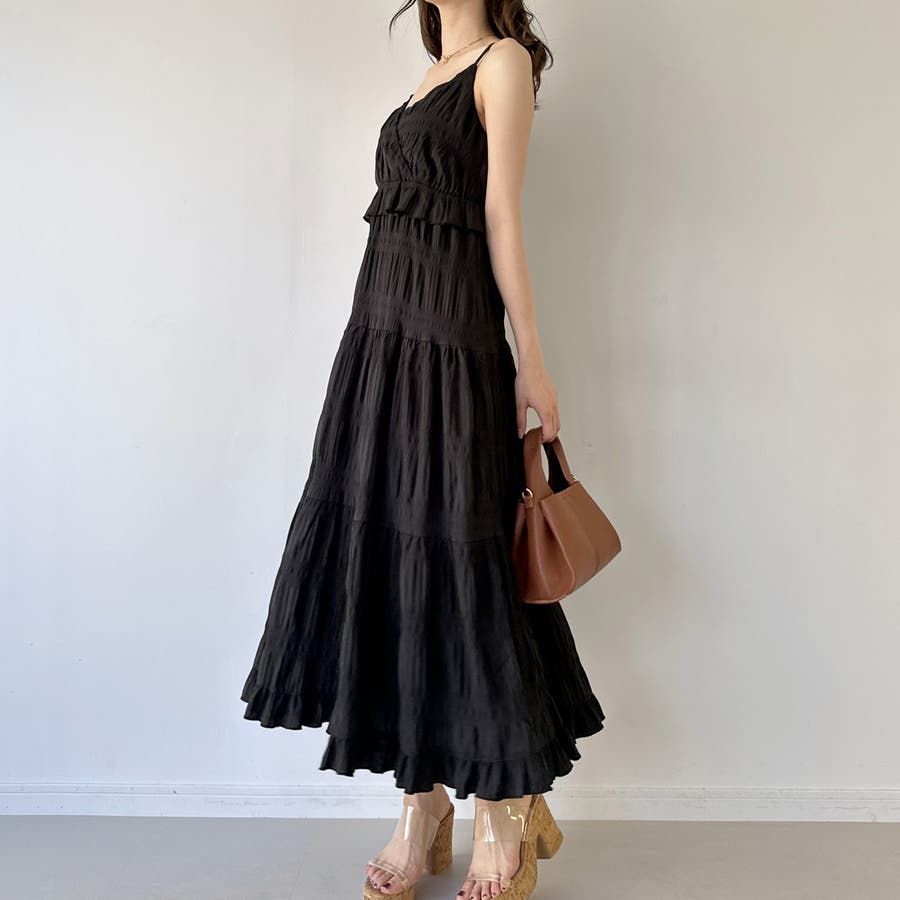 【ブラック】エアリーティアードフリルキャミワンピース
