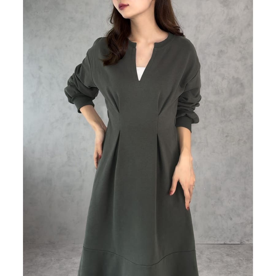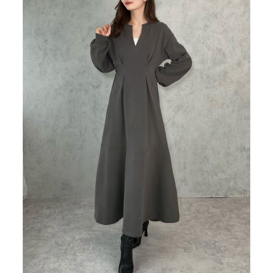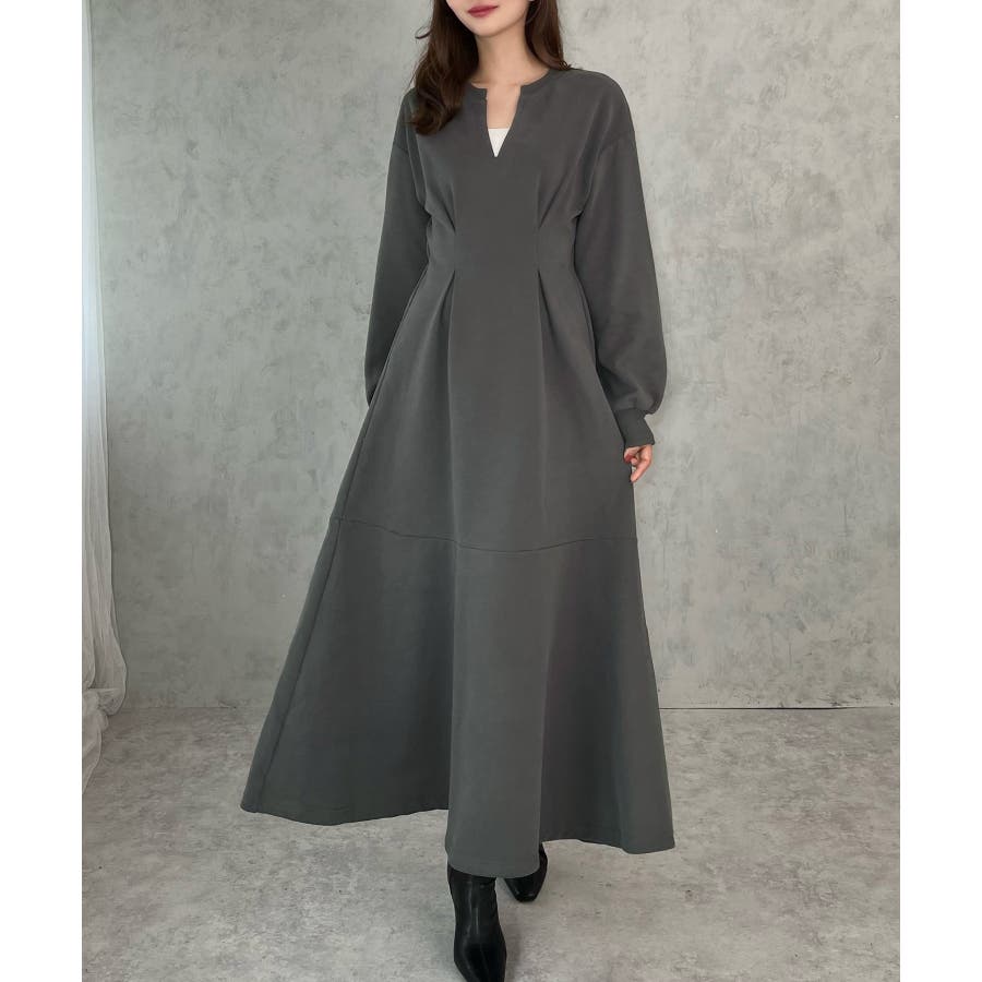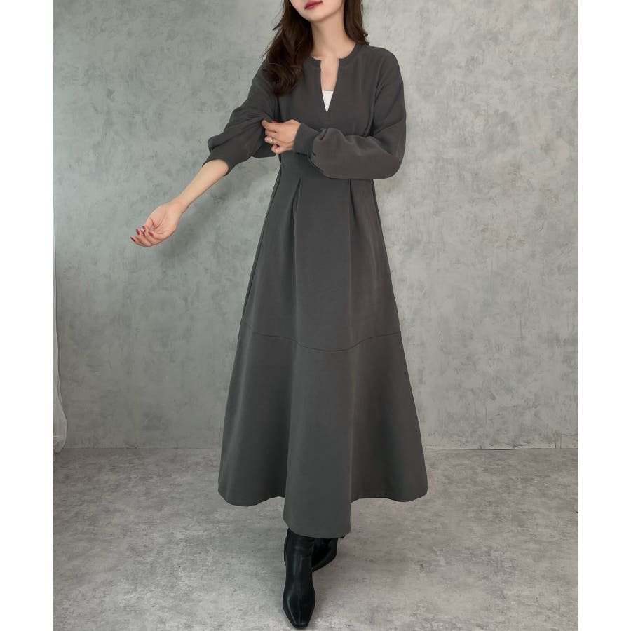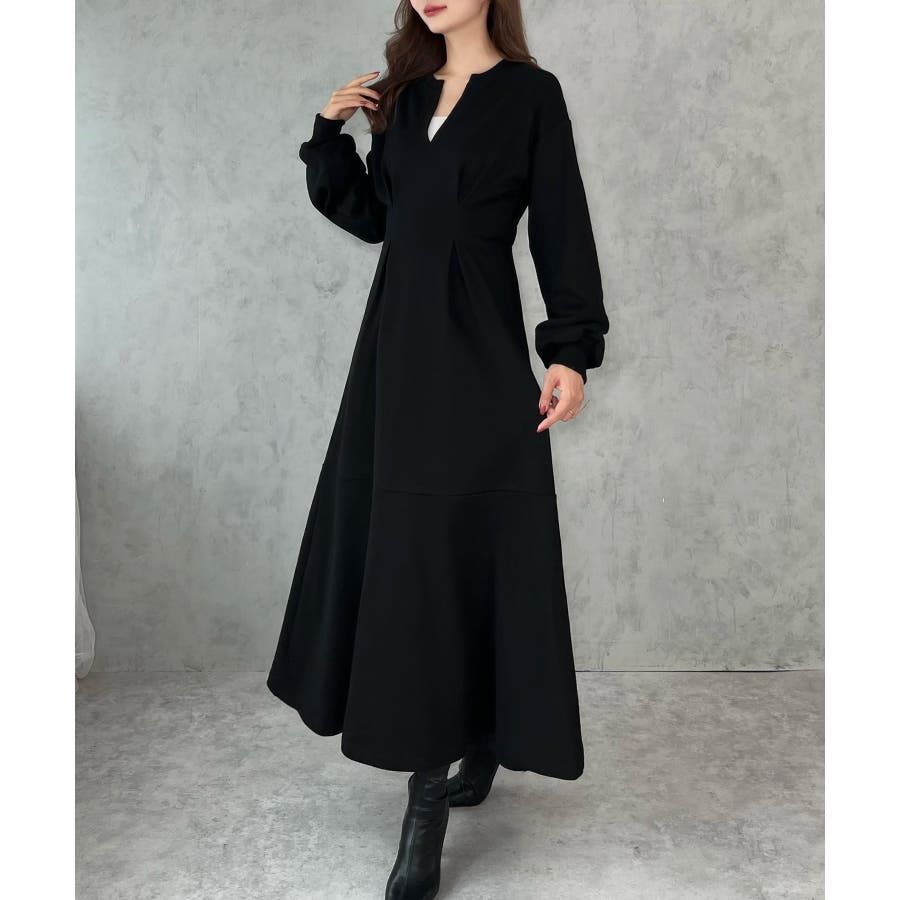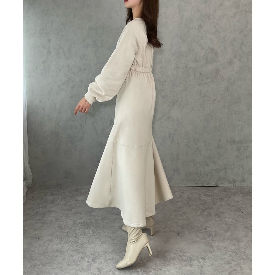 キーネック裏起毛マーメイドワンピース