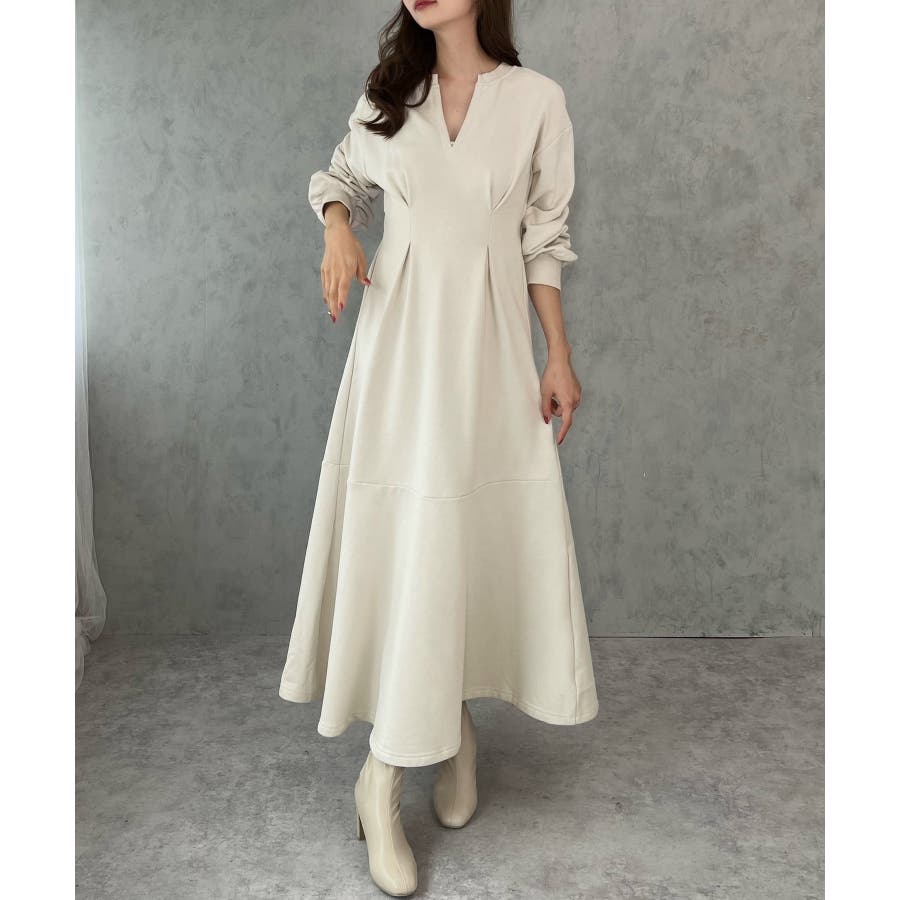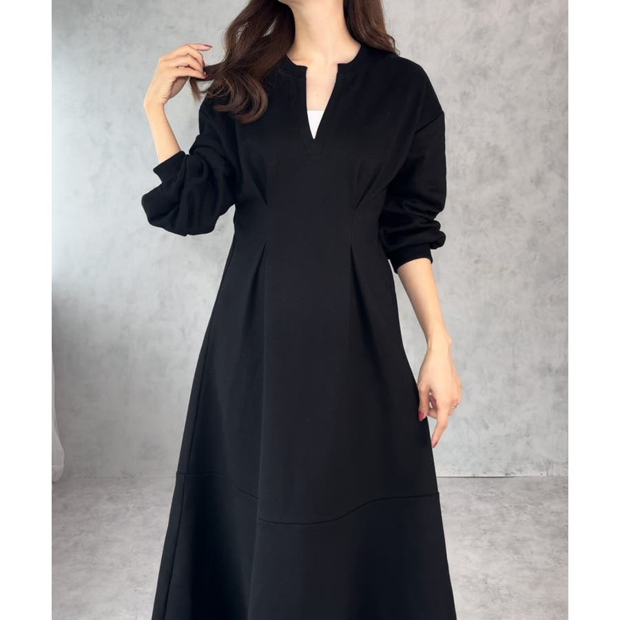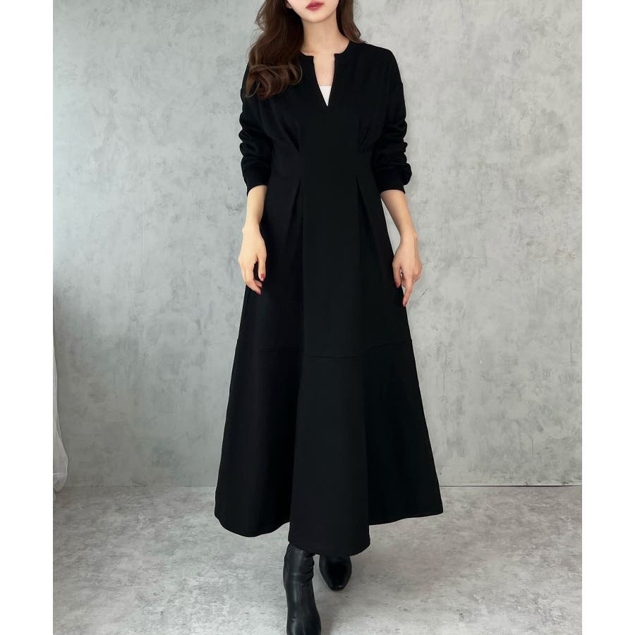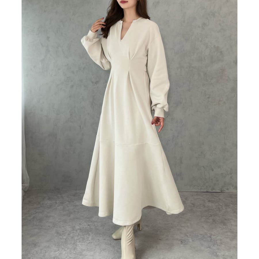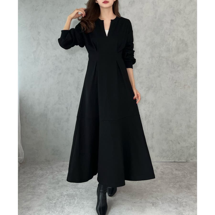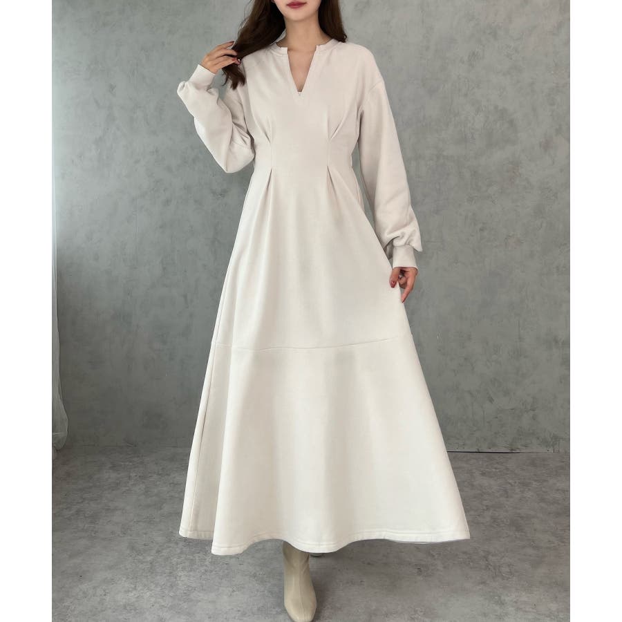 キーネック裏起毛マーメイドワンピース