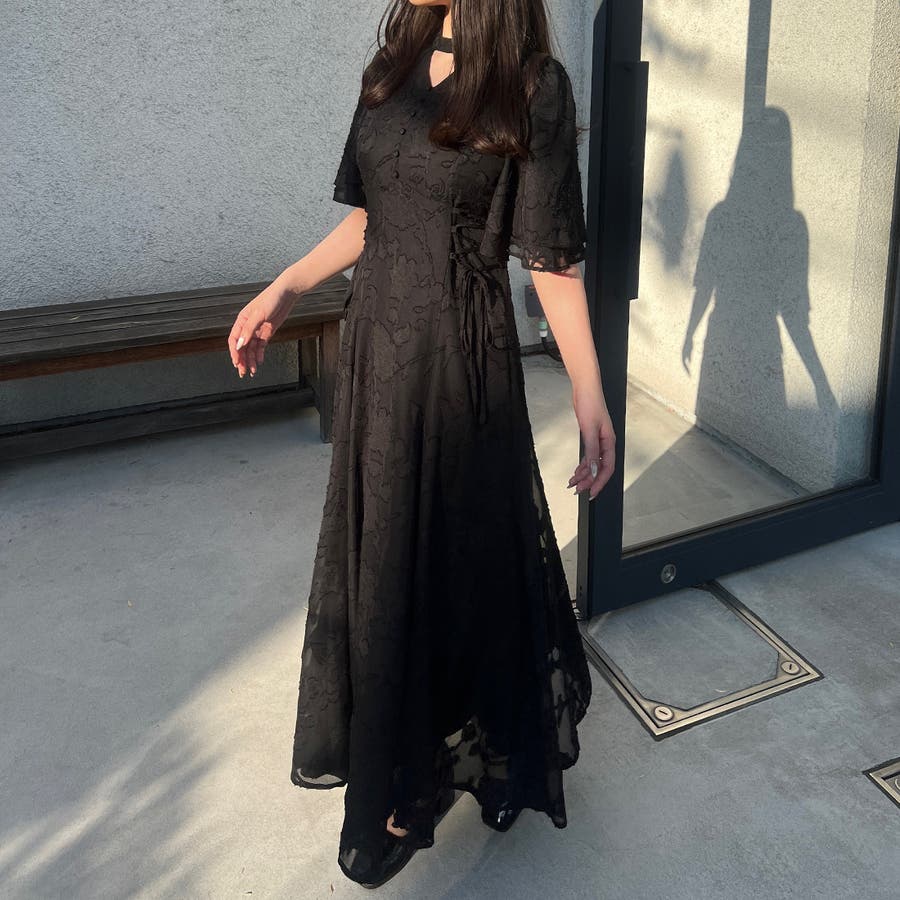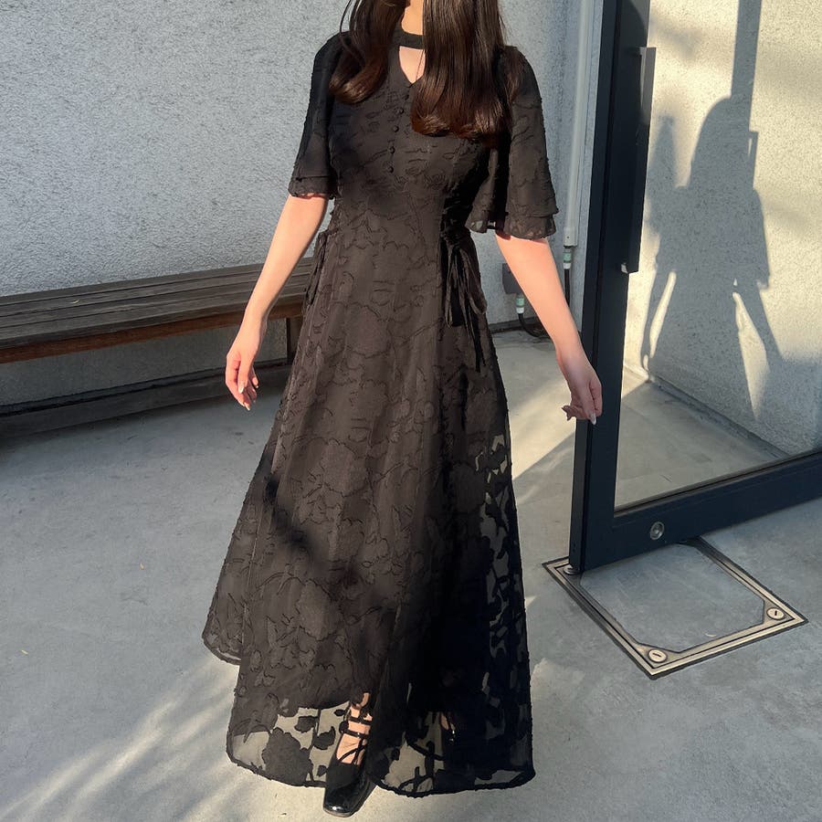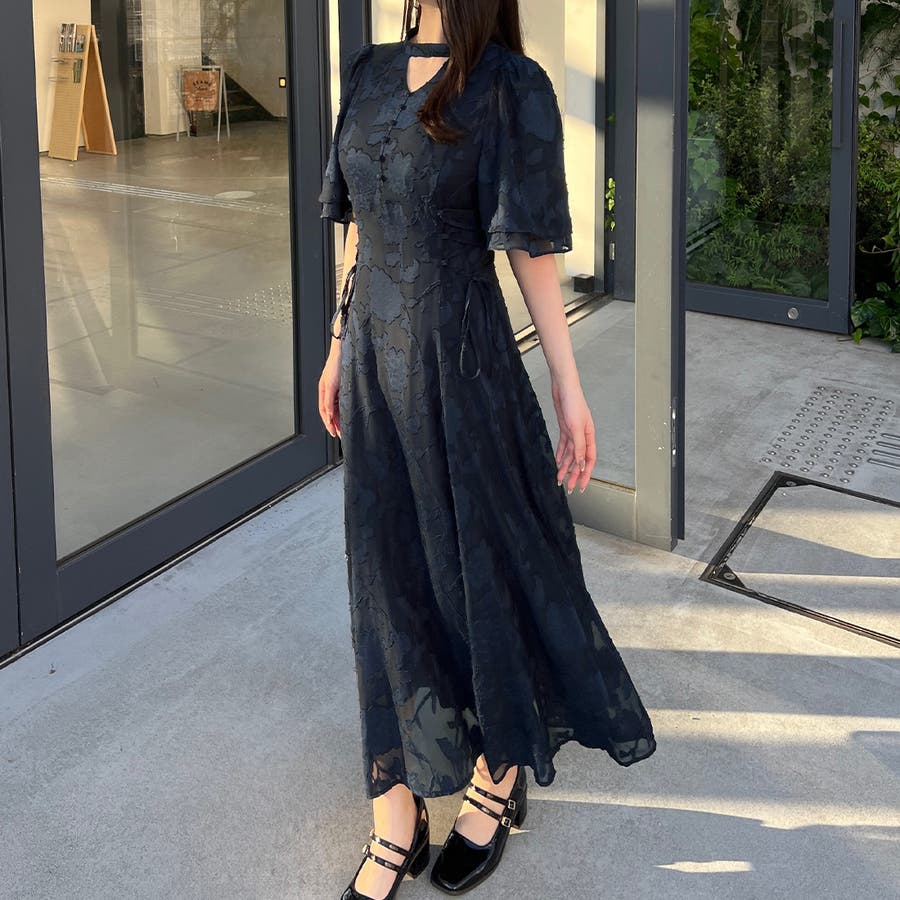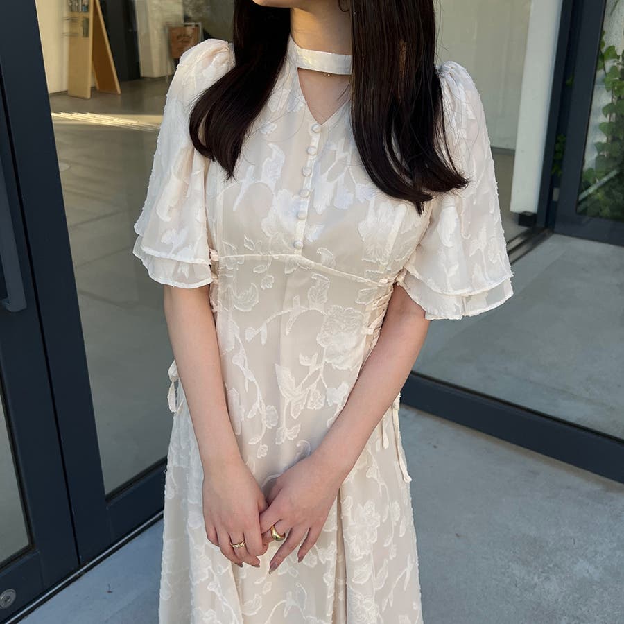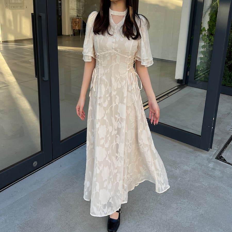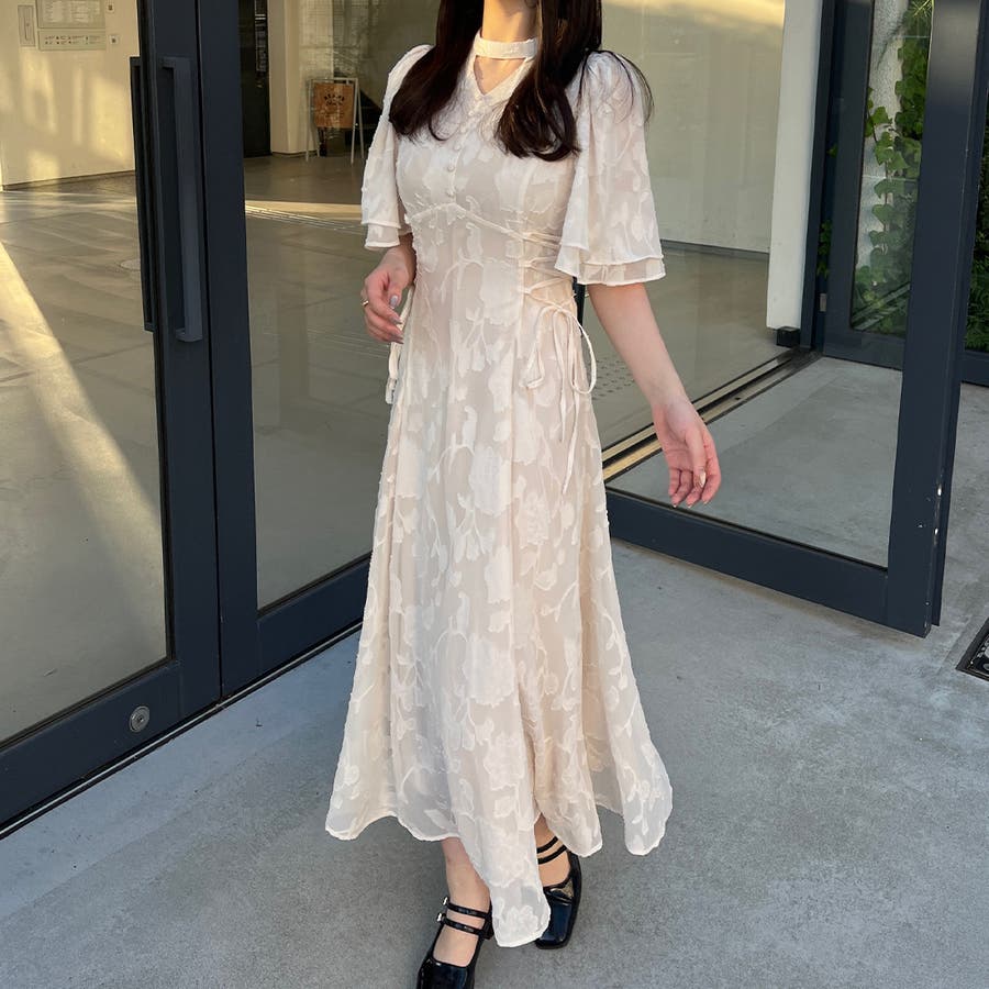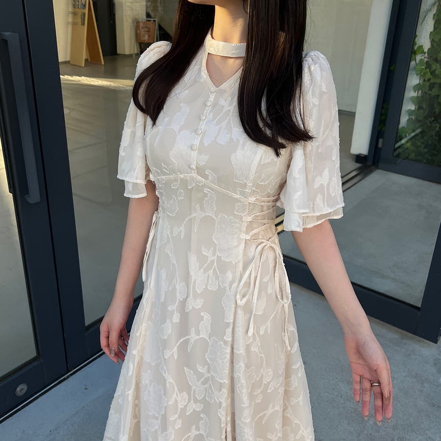 【アイボリー】シアージャガードレースアップチョーカーワンピース【一部ペチスカートセット】