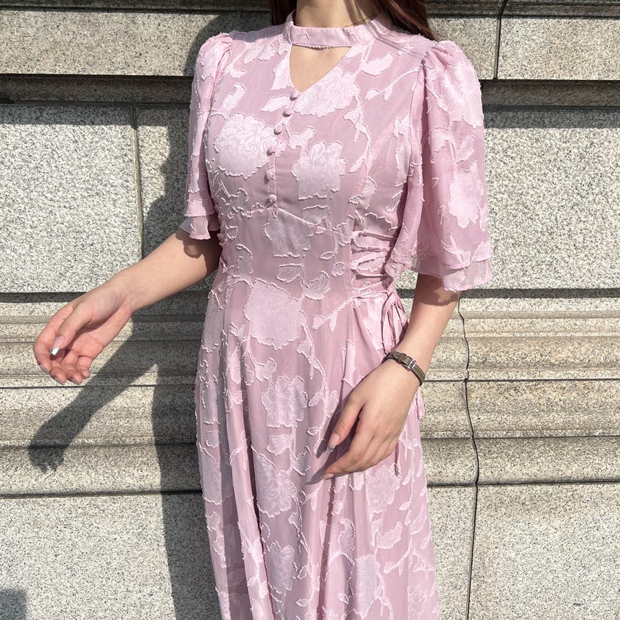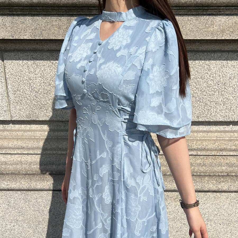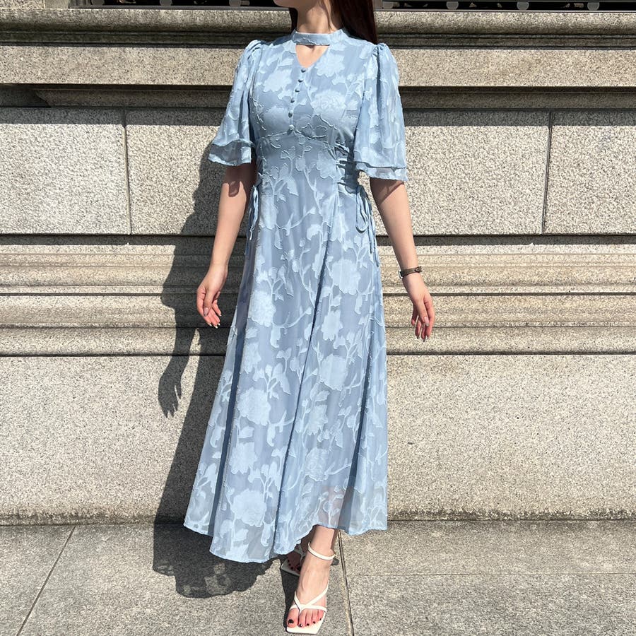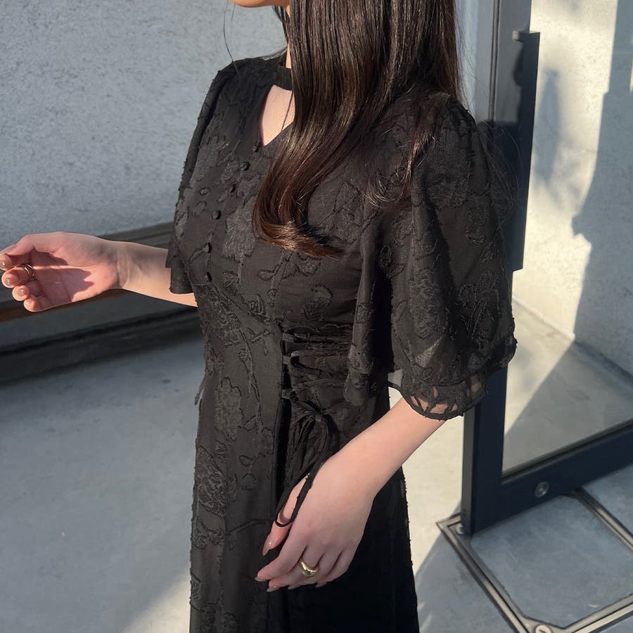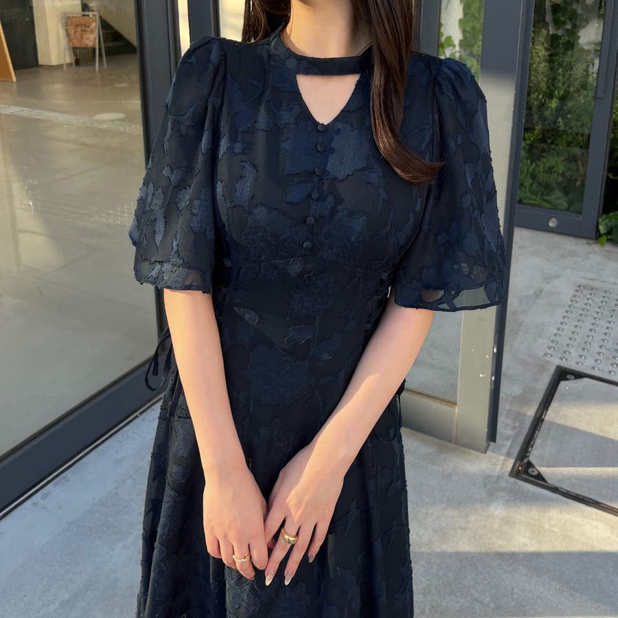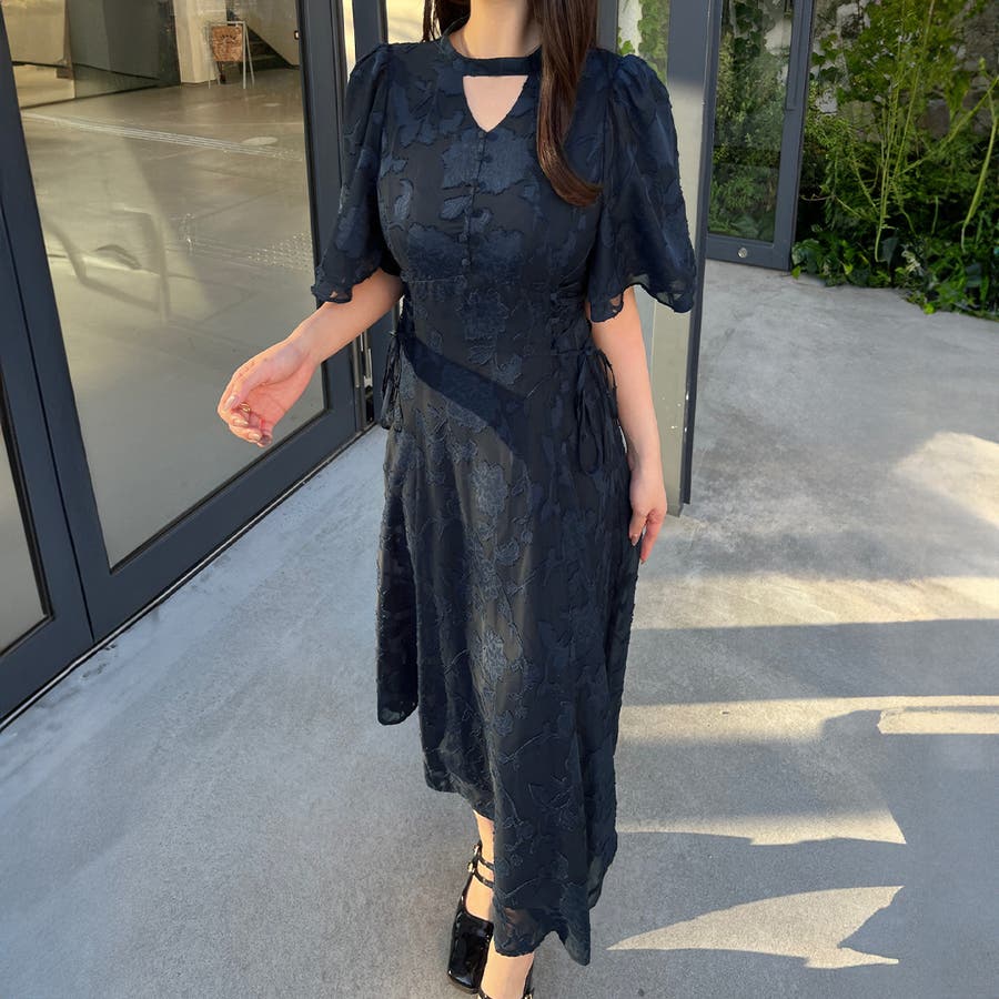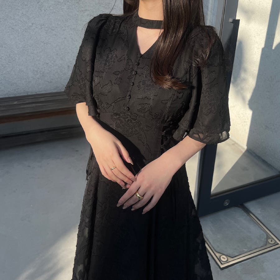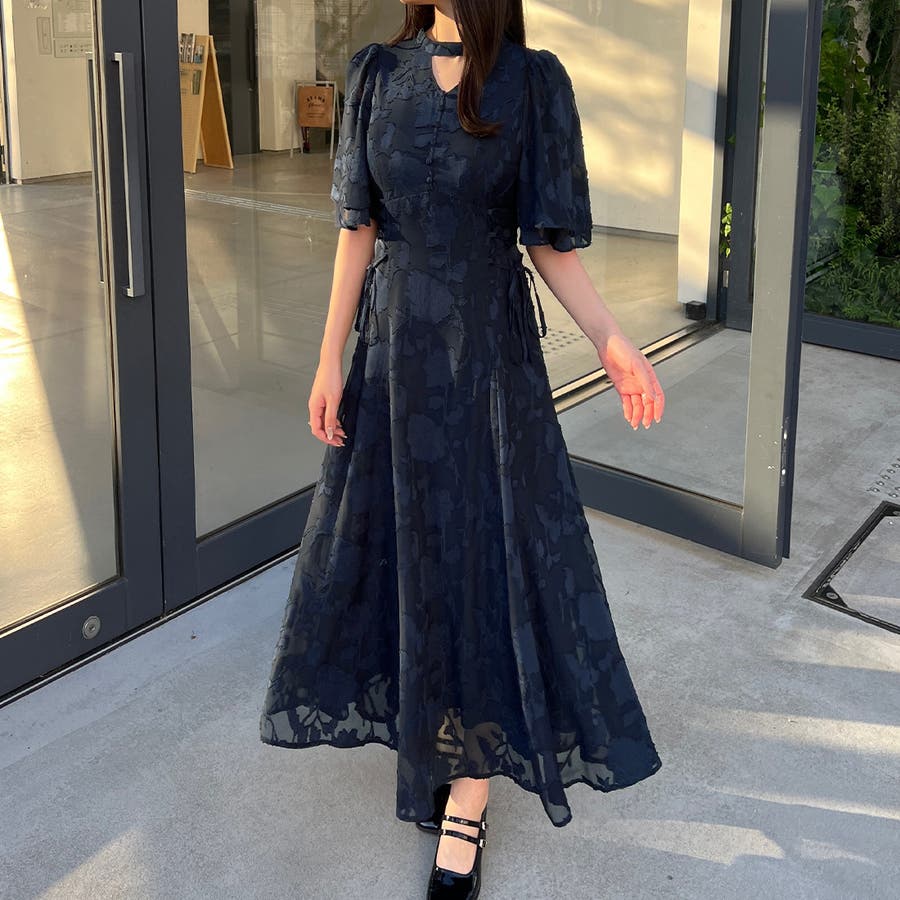 【アイボリー】シアージャガードレースアップチョーカーワンピース【一部ペチスカートセット】