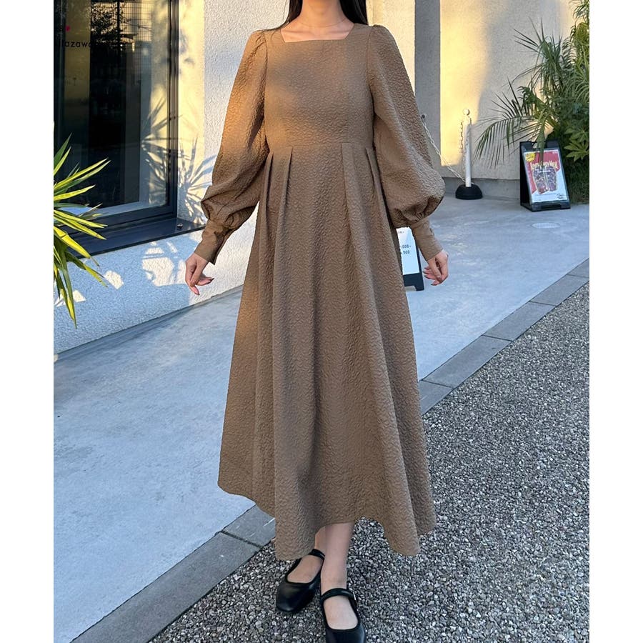 ボリュームスリーブふくれジャガードワンピース