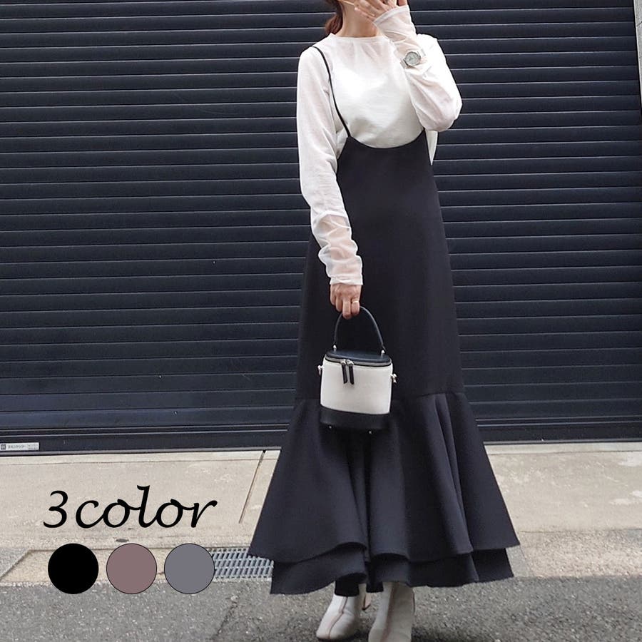 裾ティアードサスペンダースカート