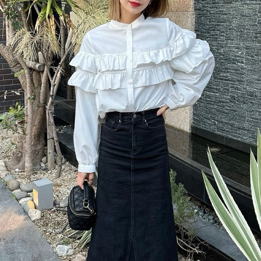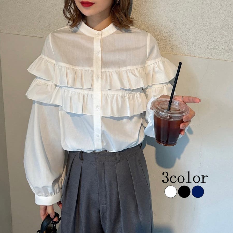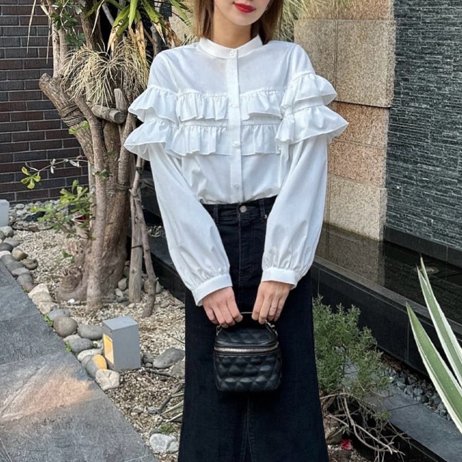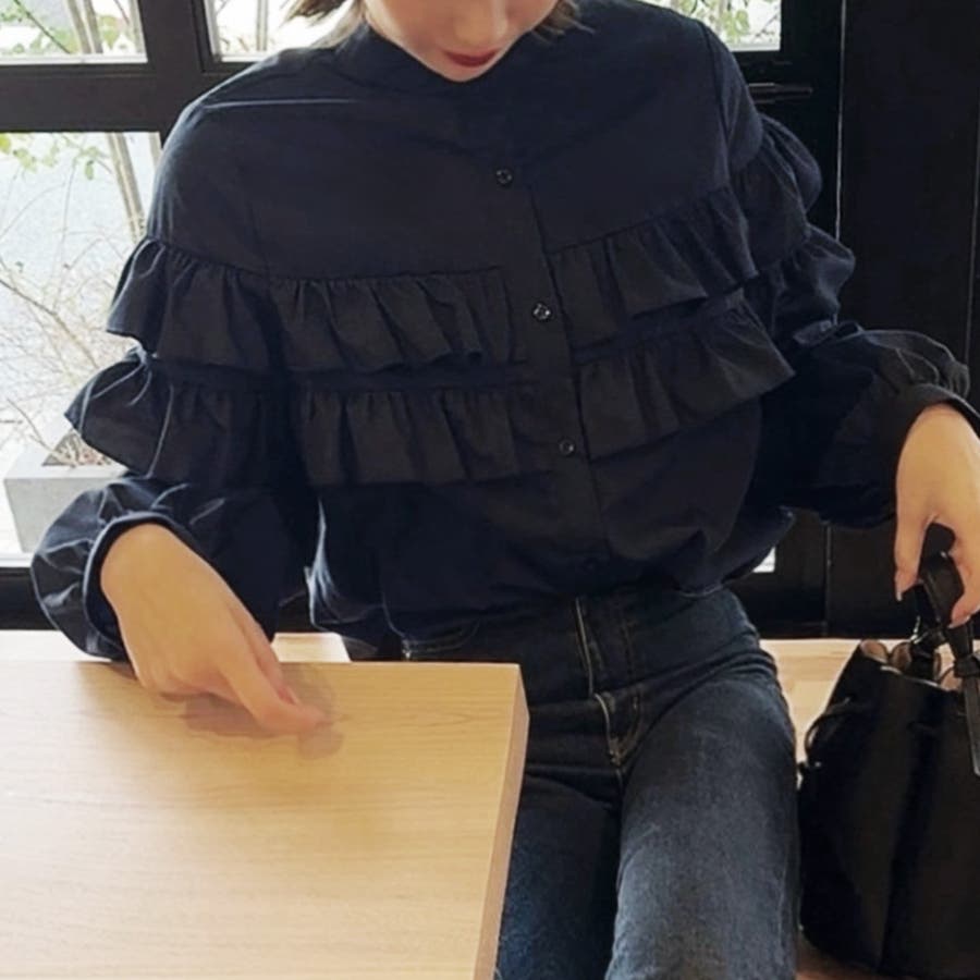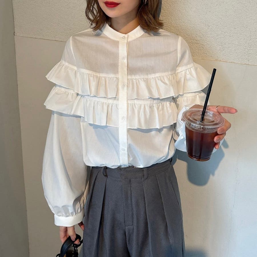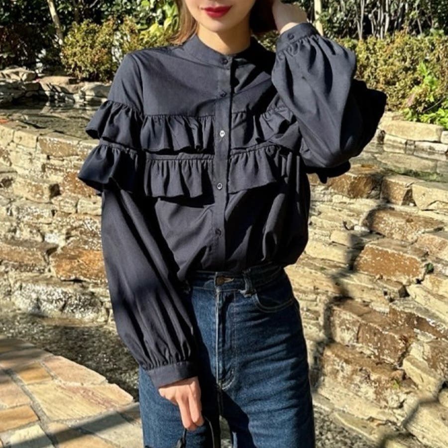 スタンドカラーフリルブラウス