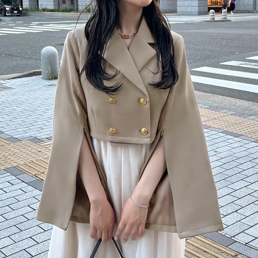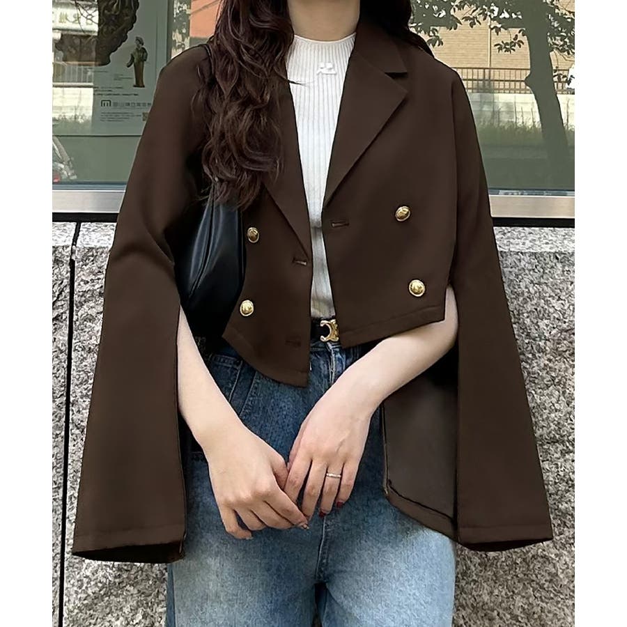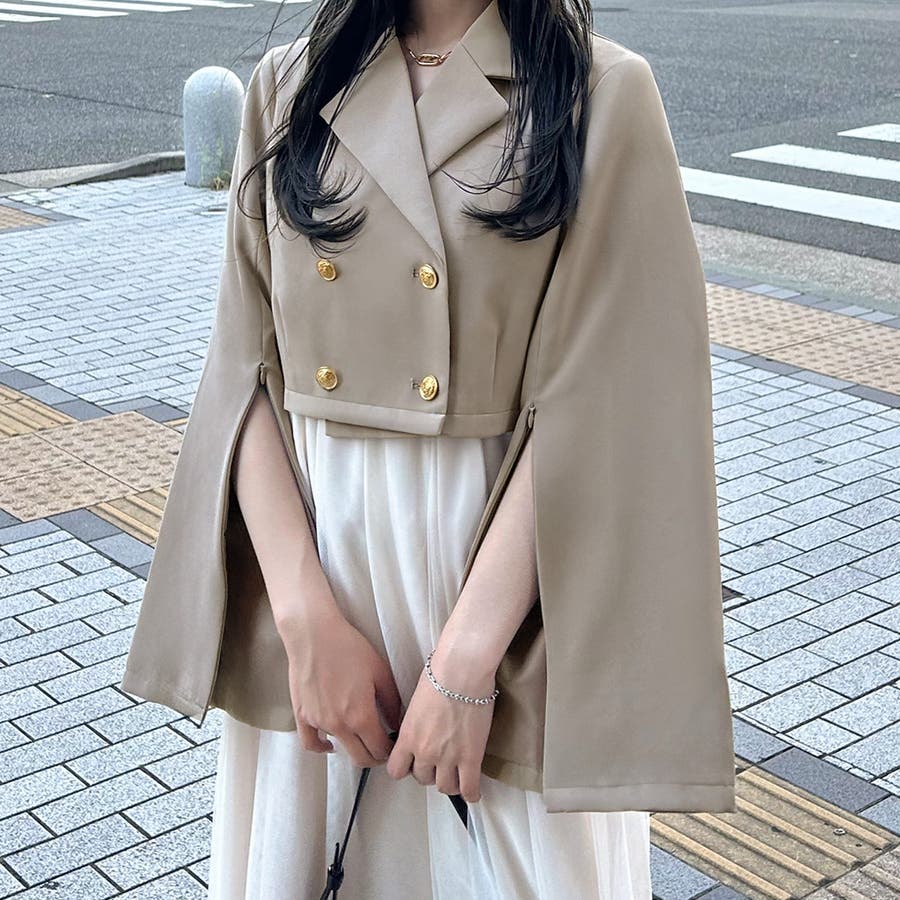 ゴールド釦2wayスリットスリーブショートジャケット
