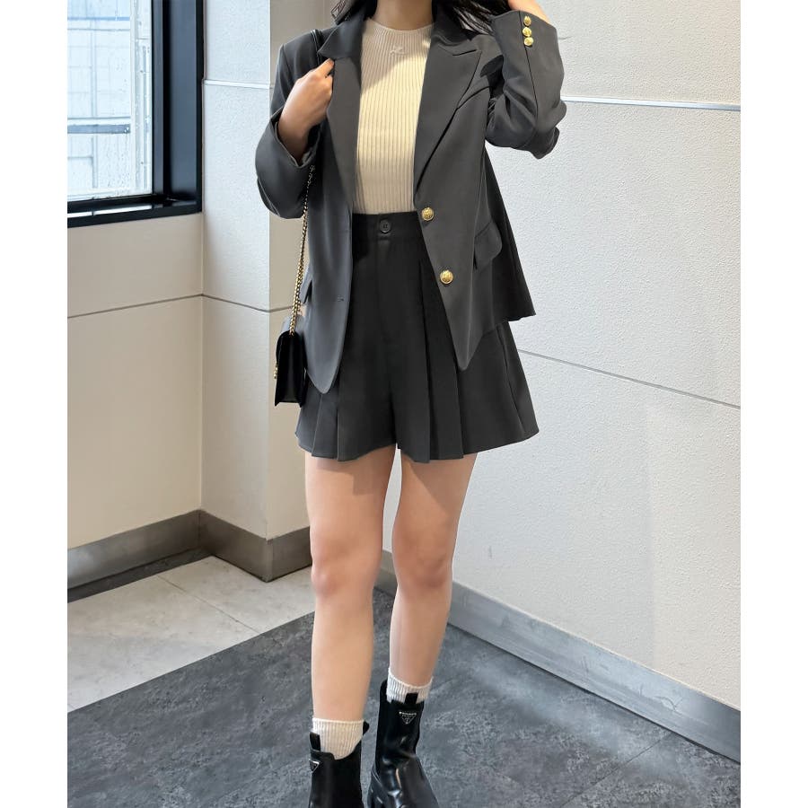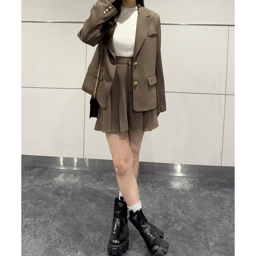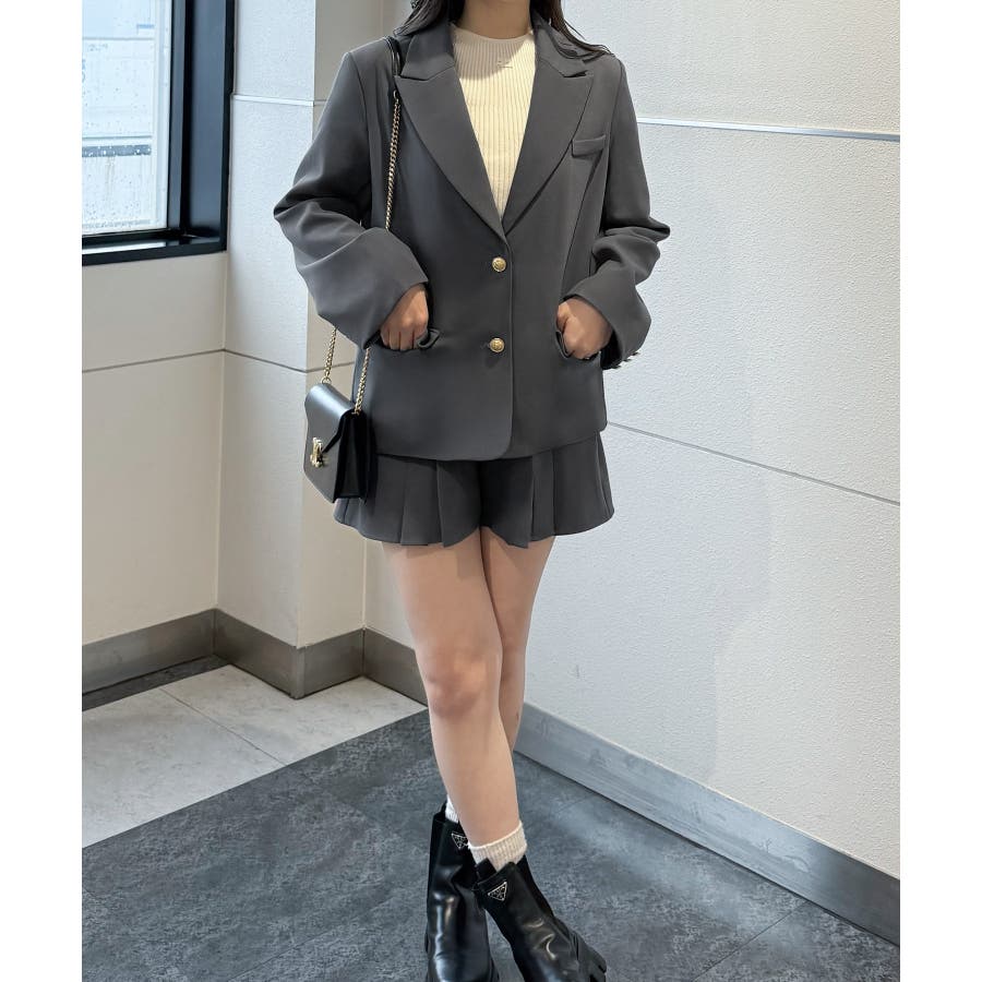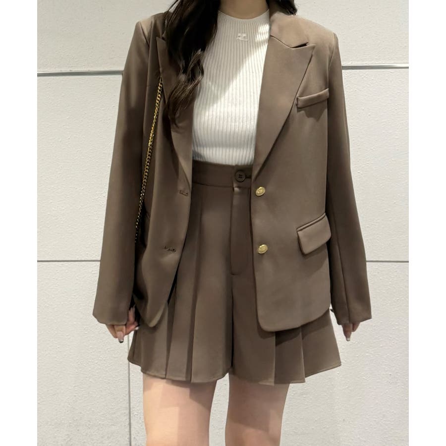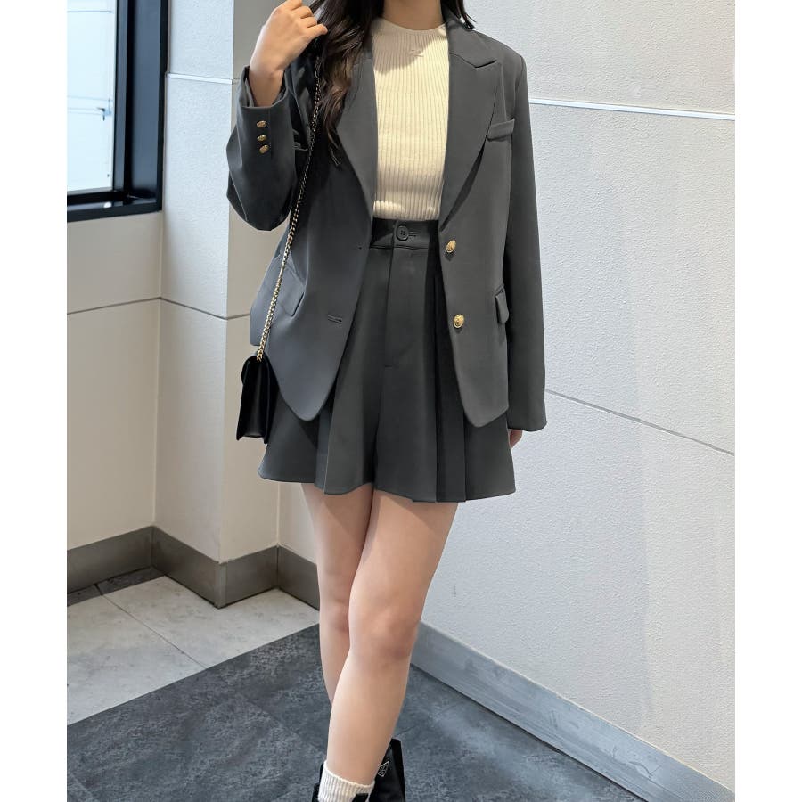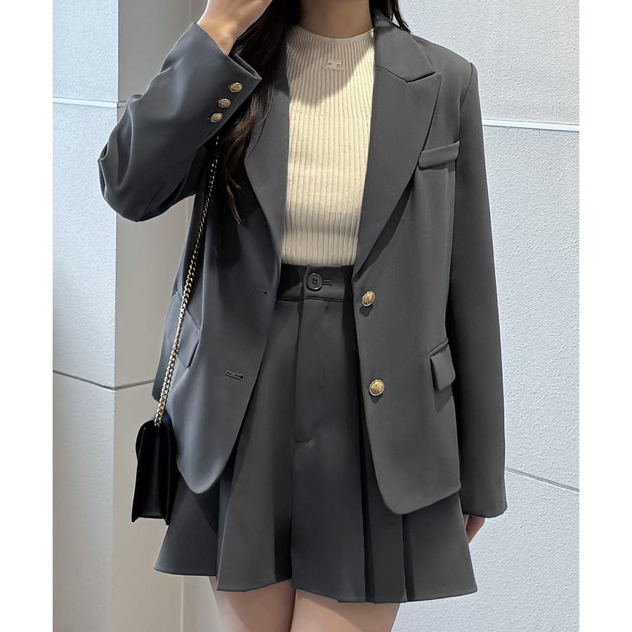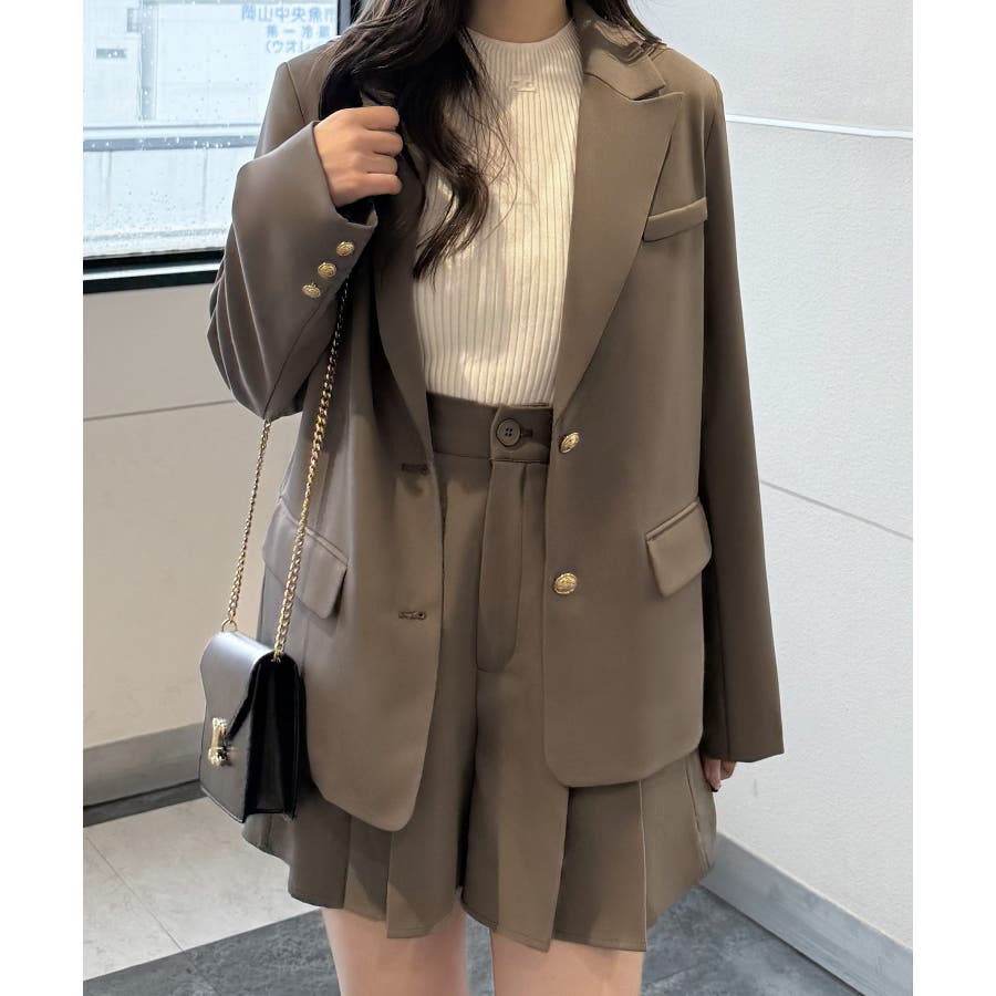 【肩パッド入り】金ボタンテーラードジャケット+プリーツショートパンツset
