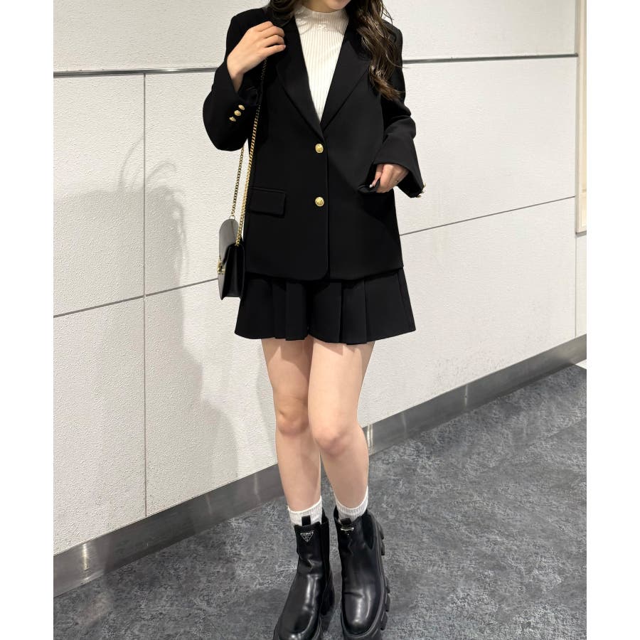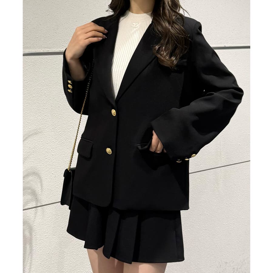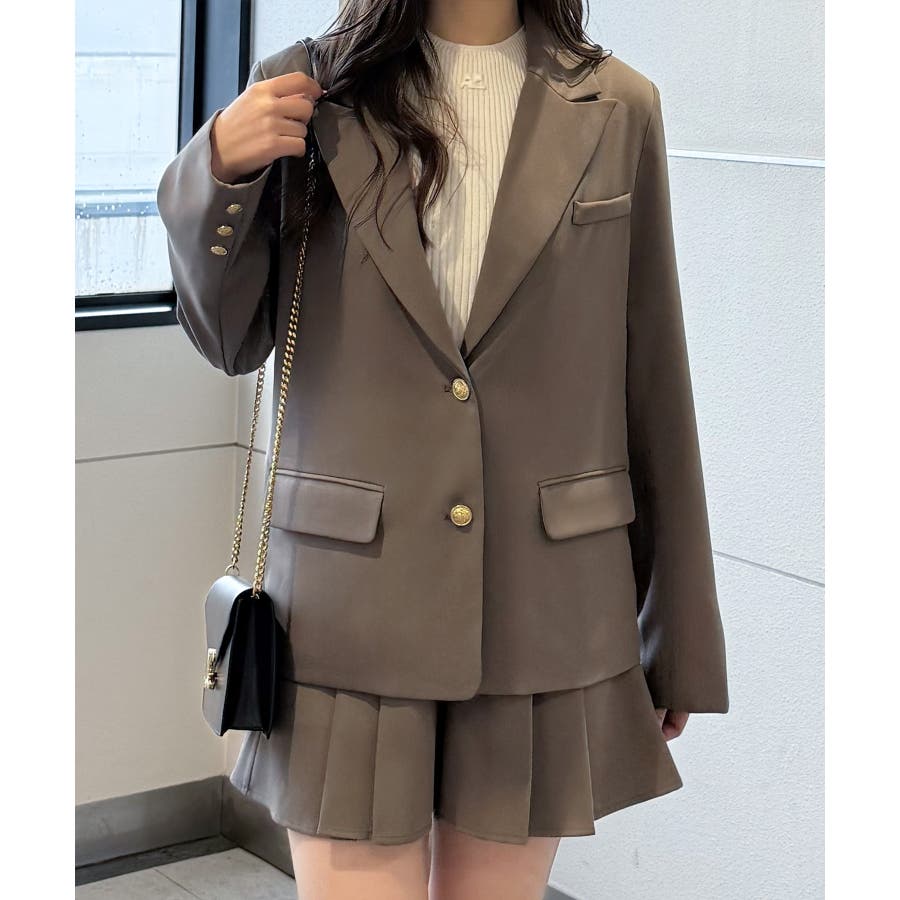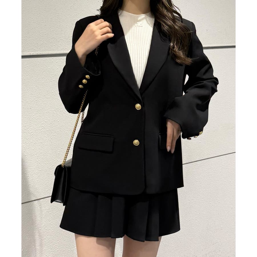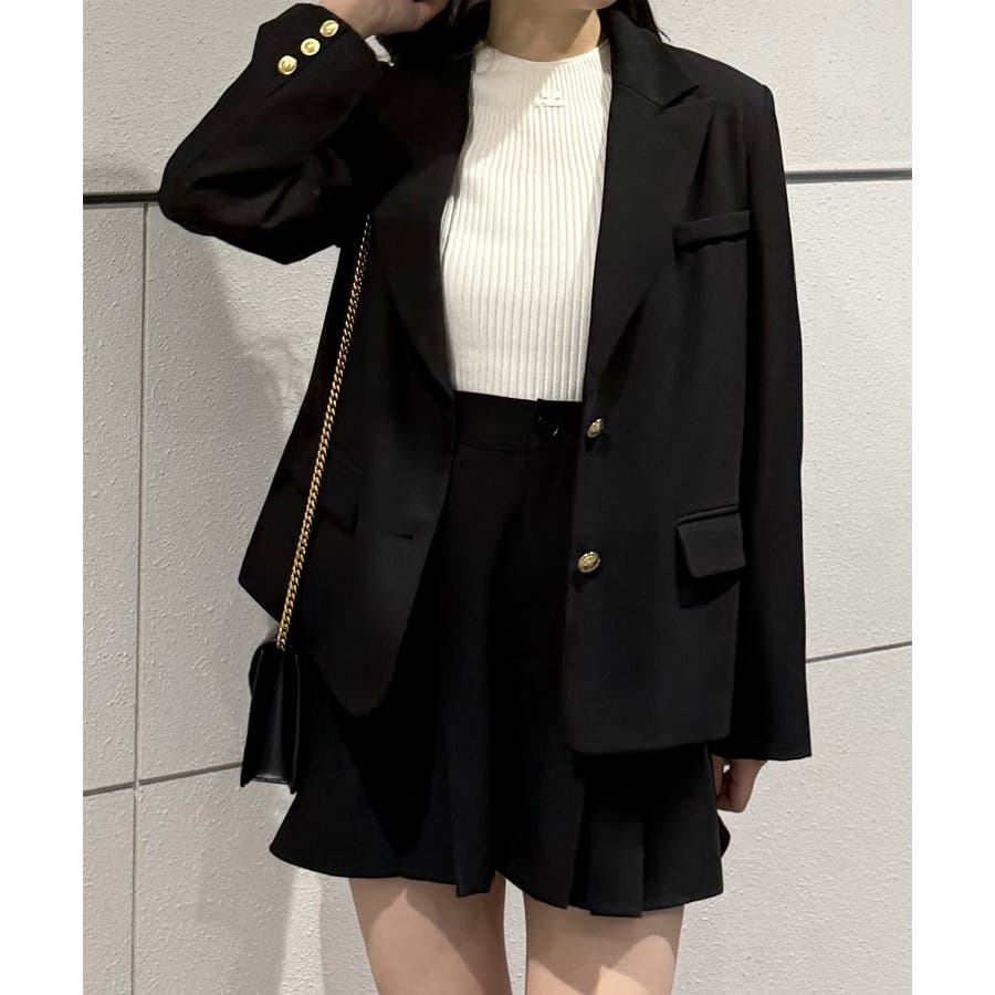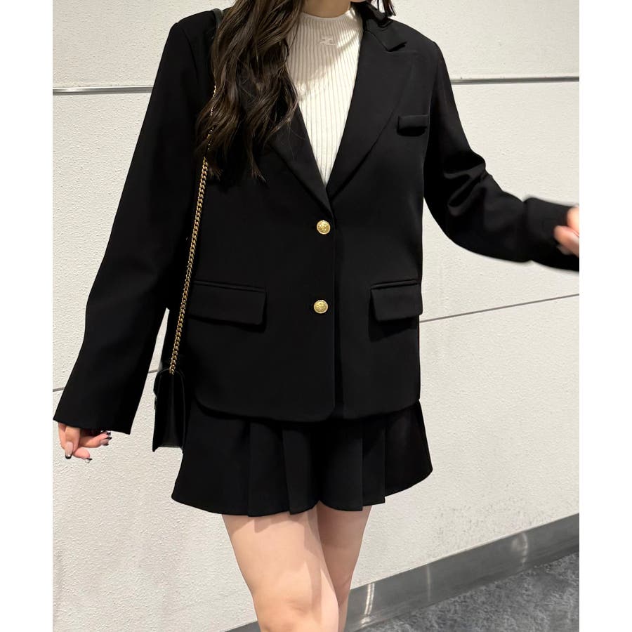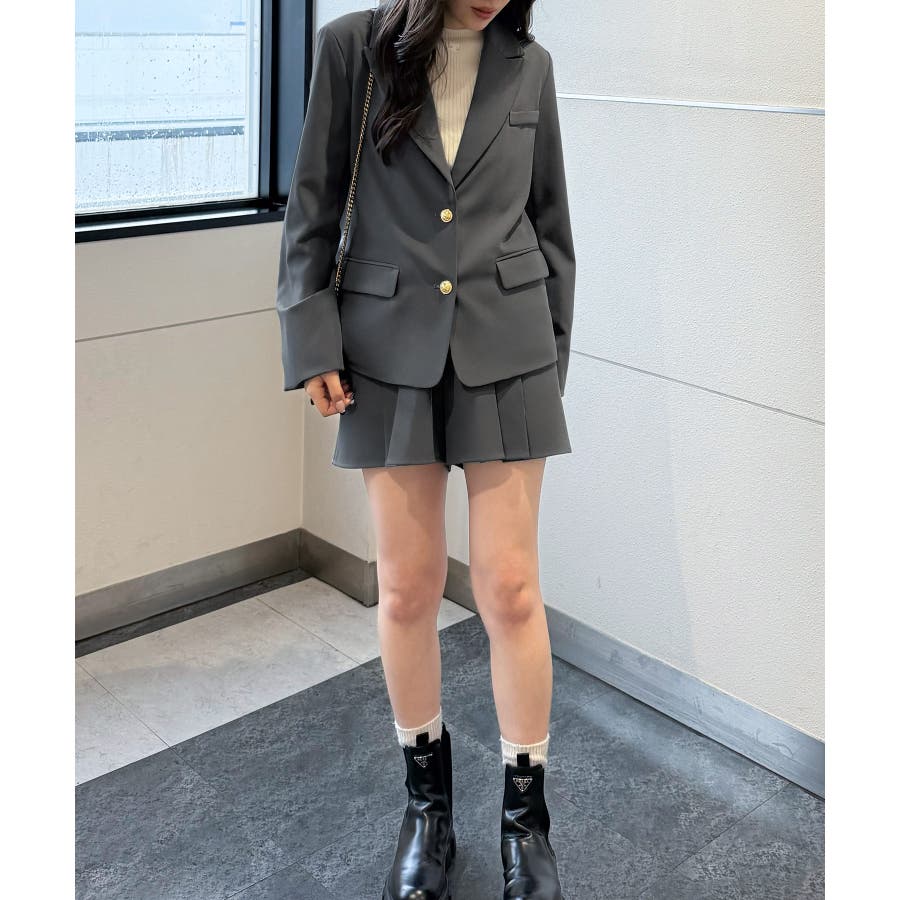 【肩パッド入り】金ボタンテーラードジャケット+プリーツショートパンツset