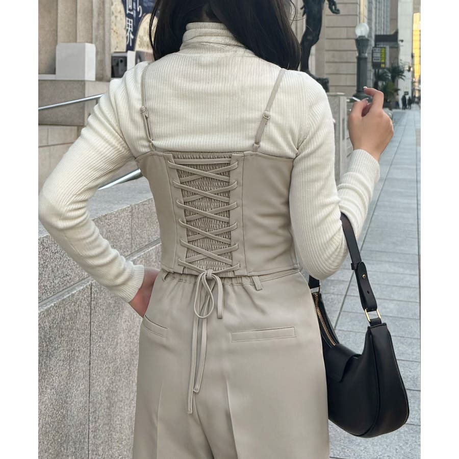 バックレースアップビスチェ+スラックスパンツ set