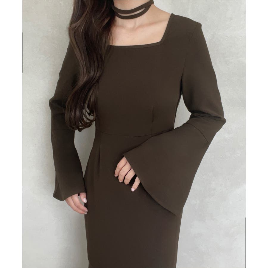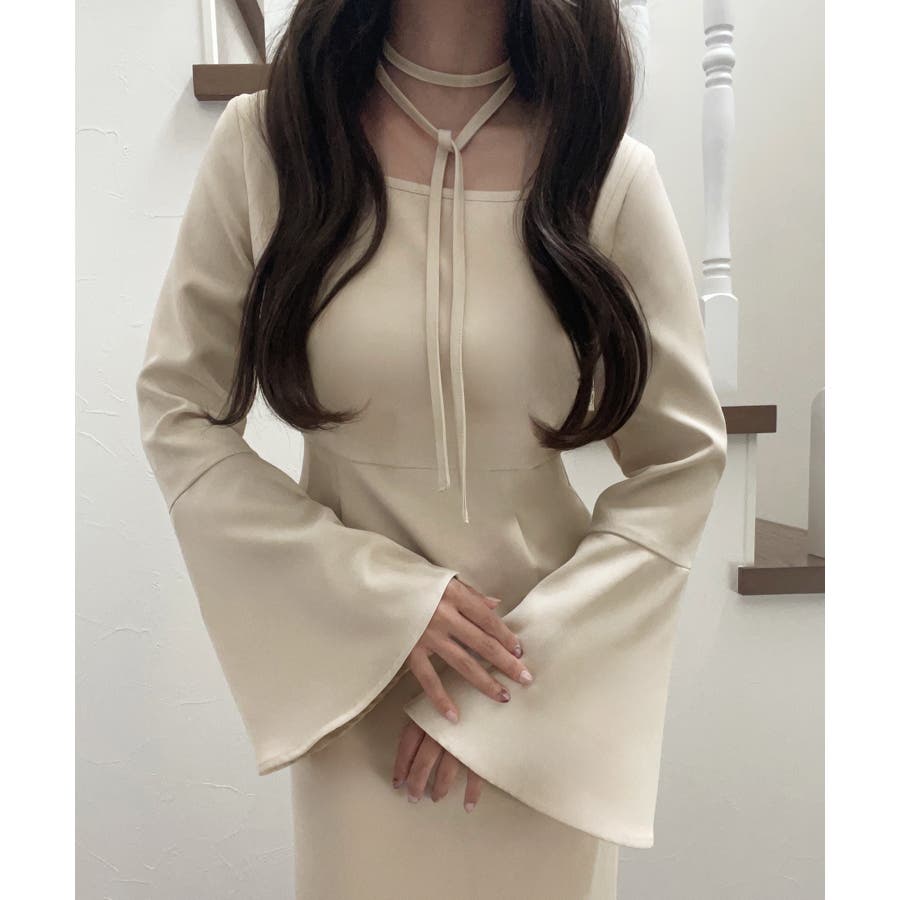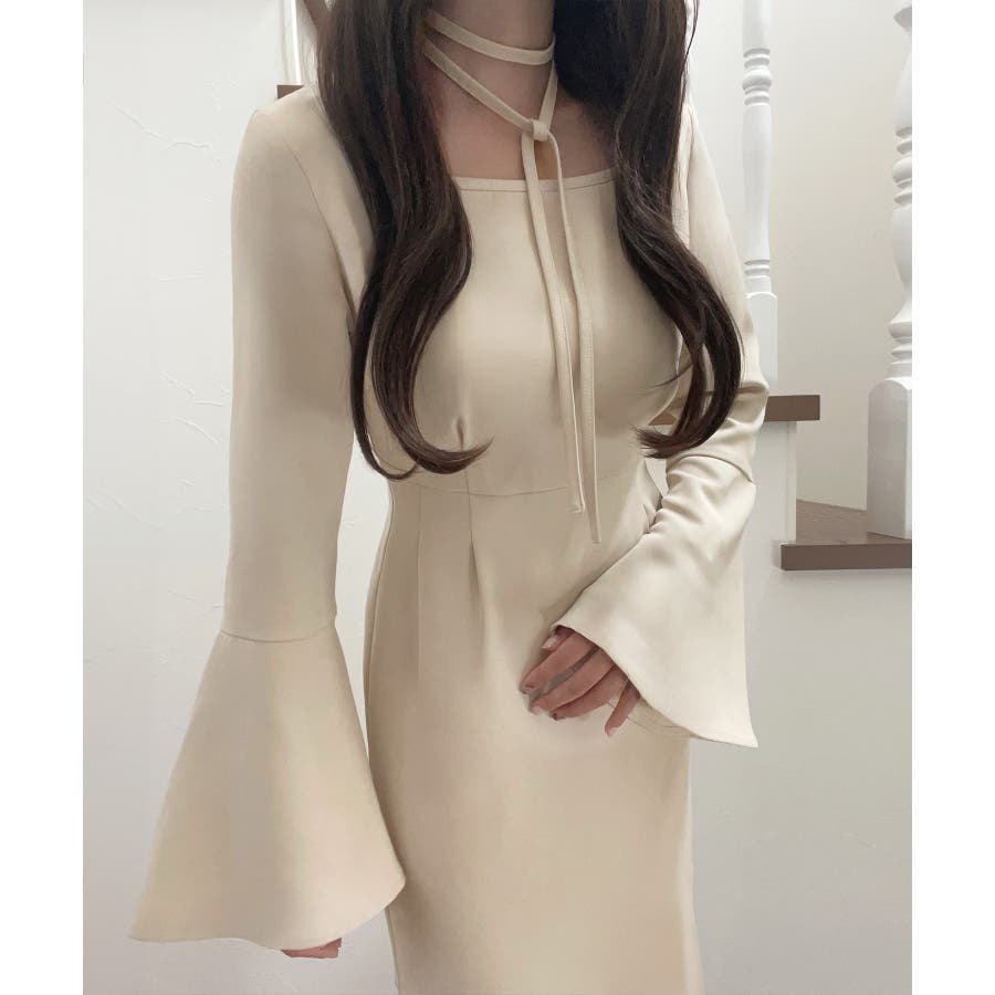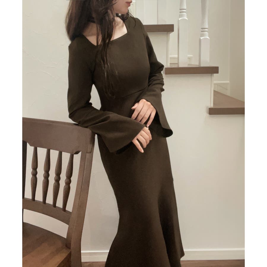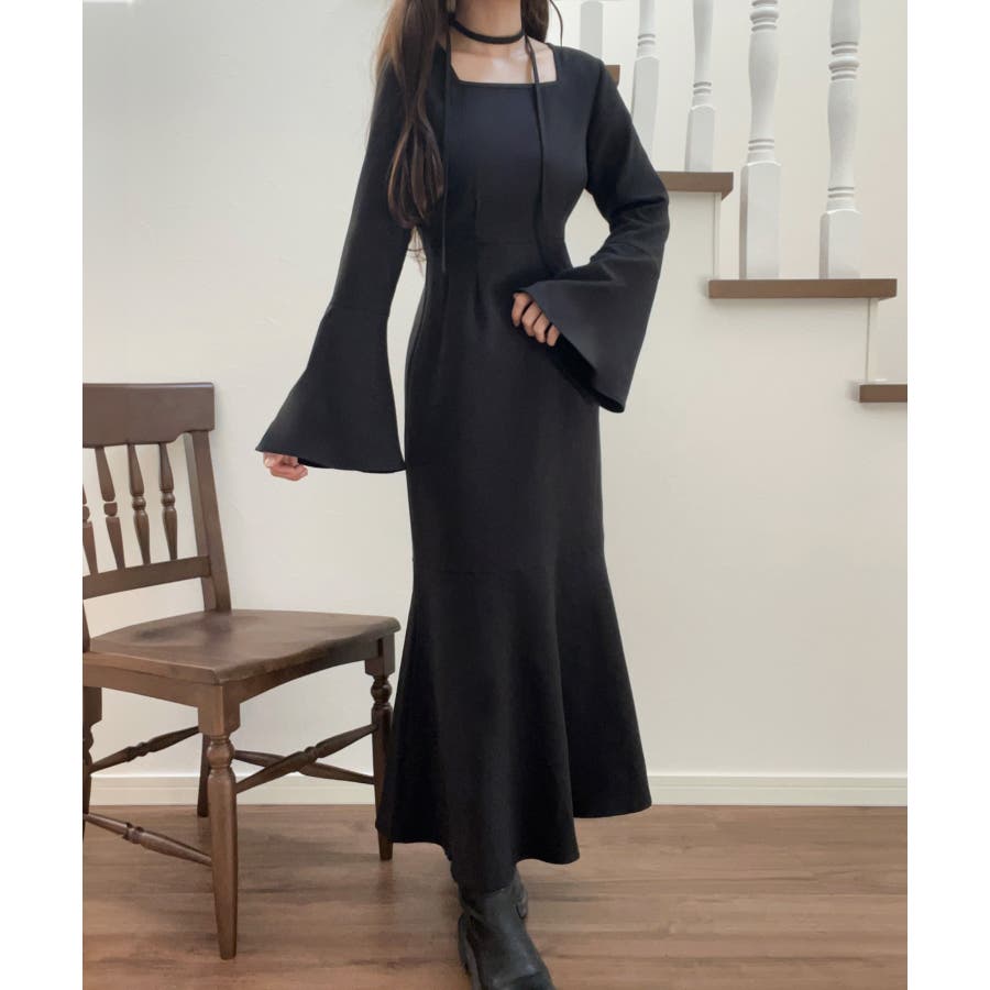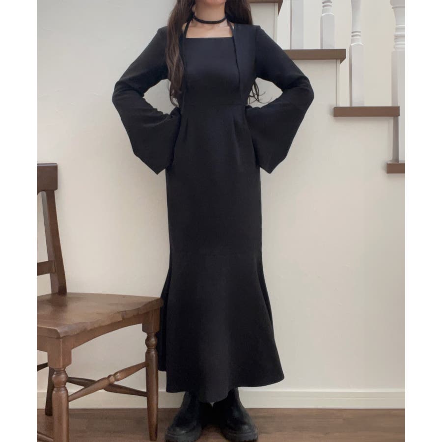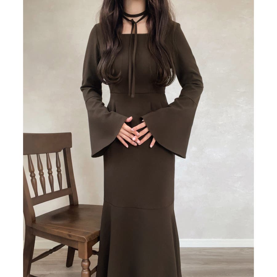 チョーカー付きウエストタックマーメイドワンピース