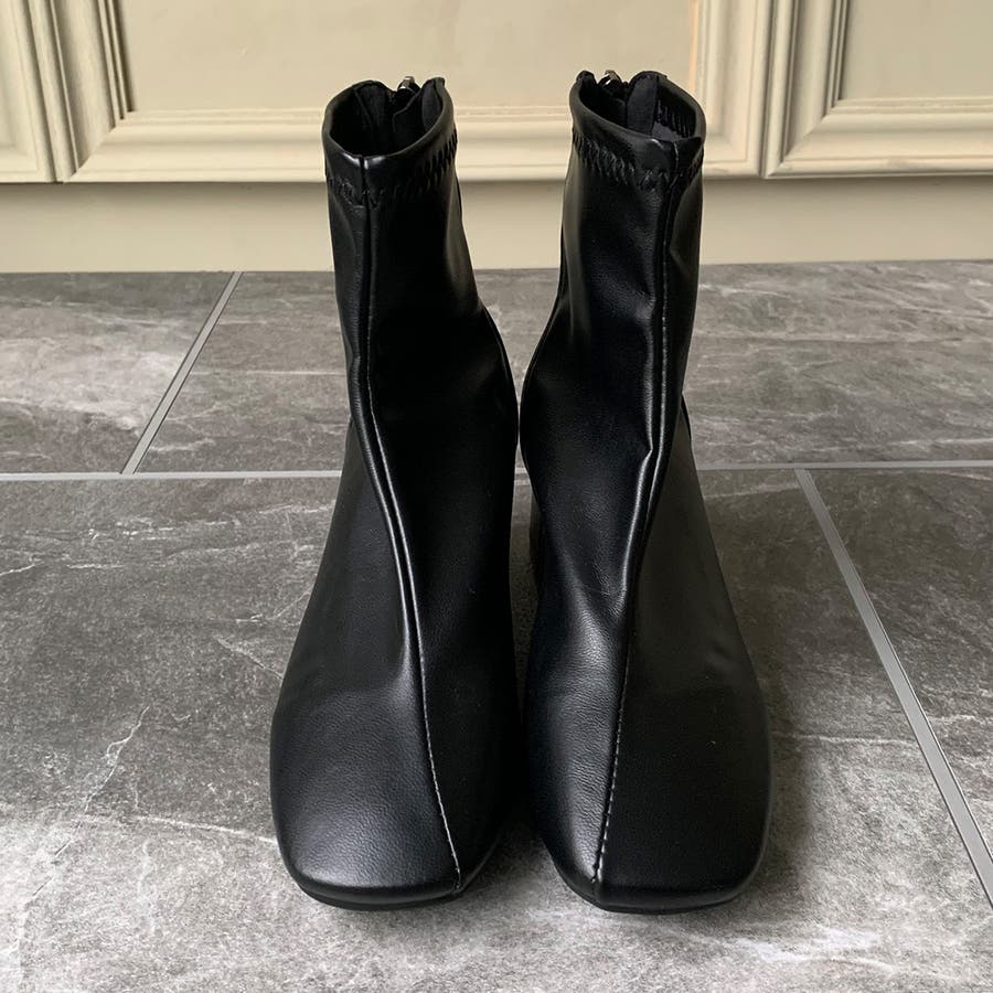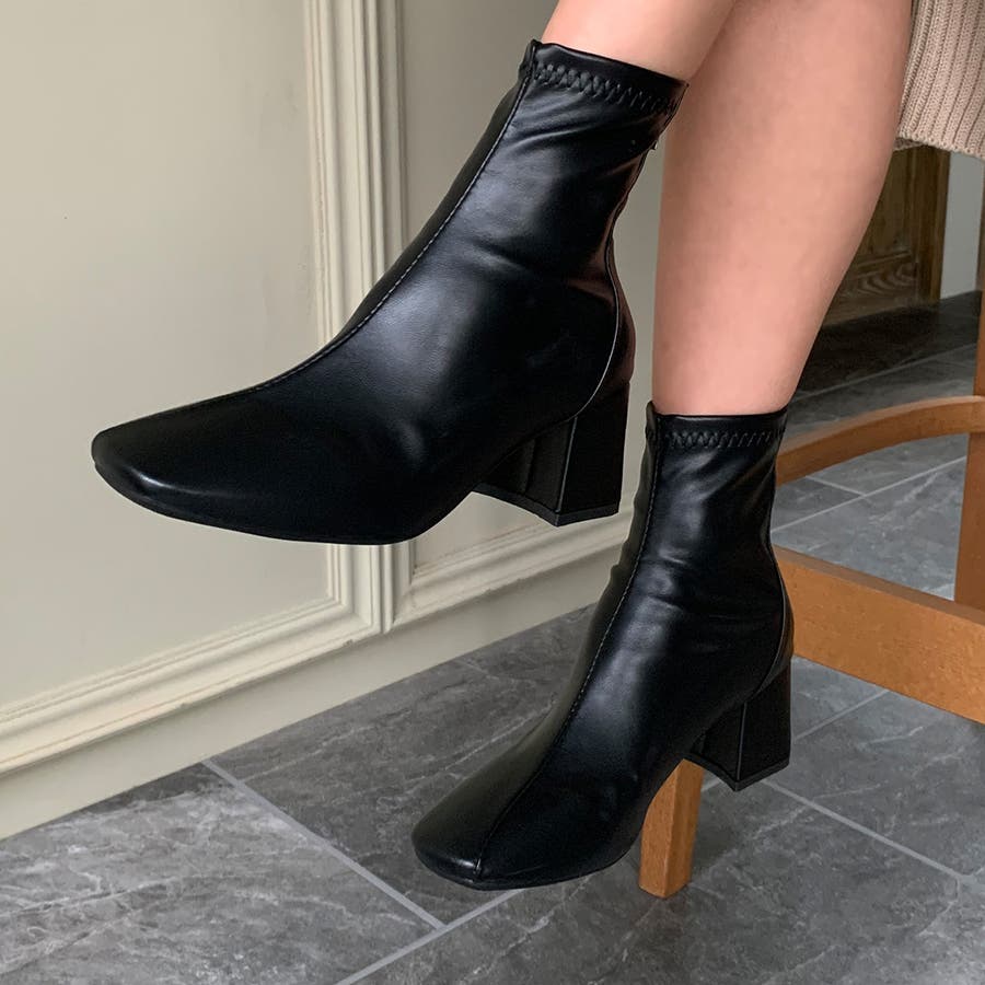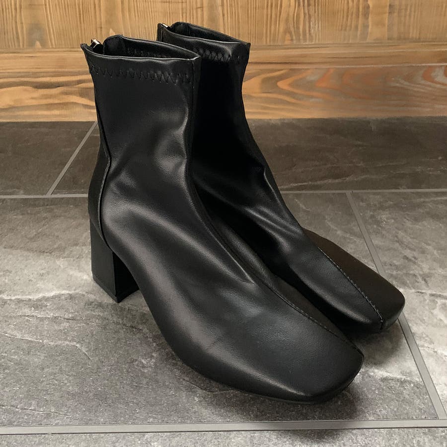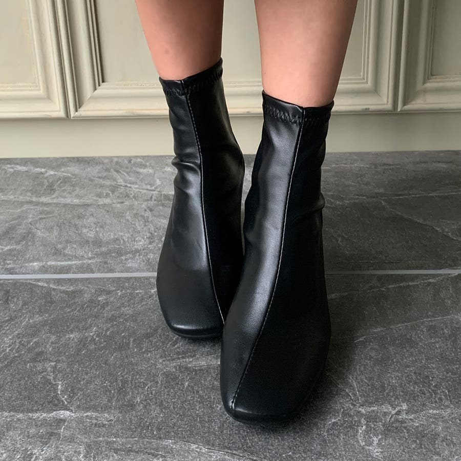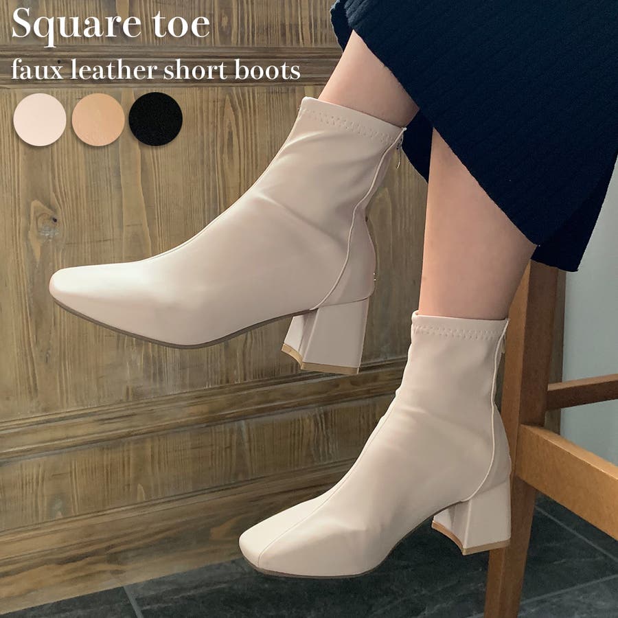スクエアトゥPUレザーショートブーツ