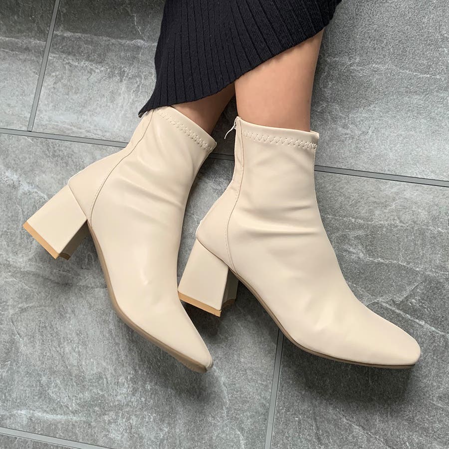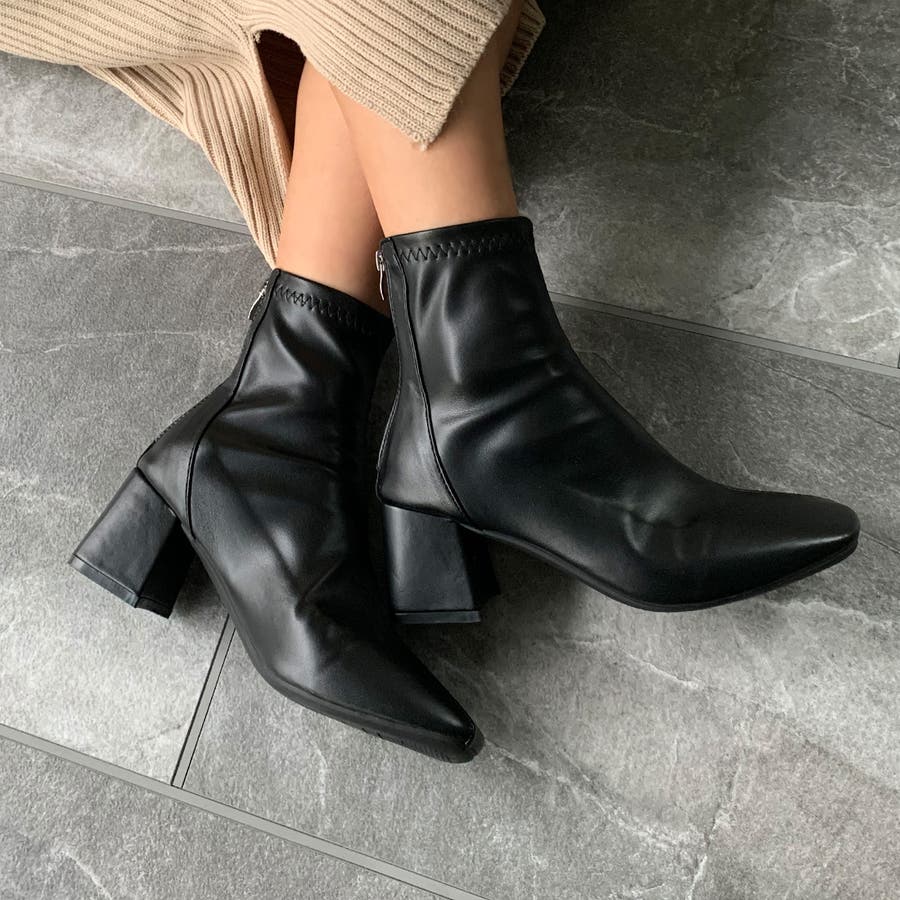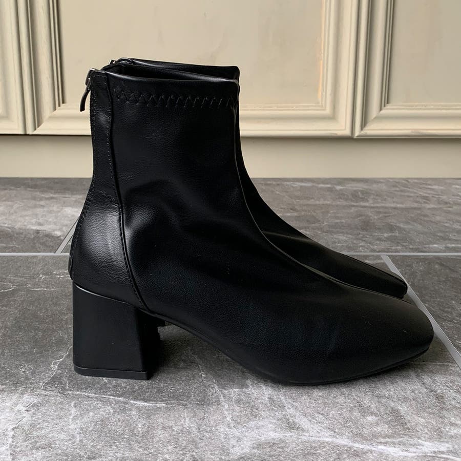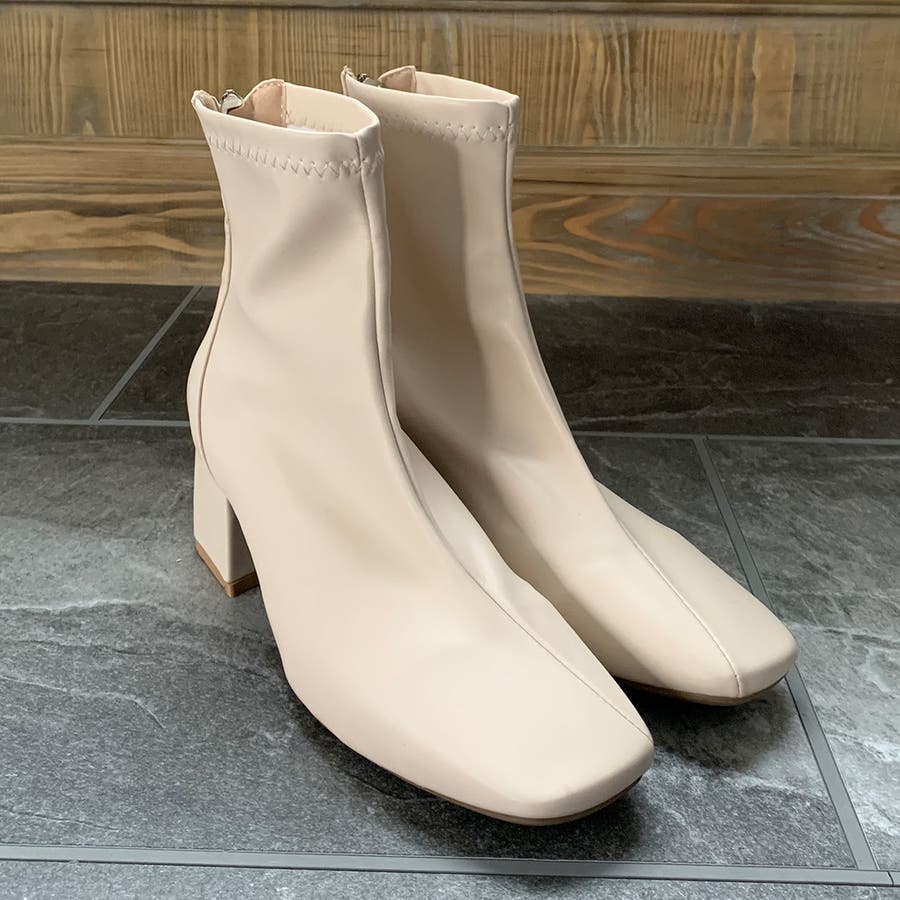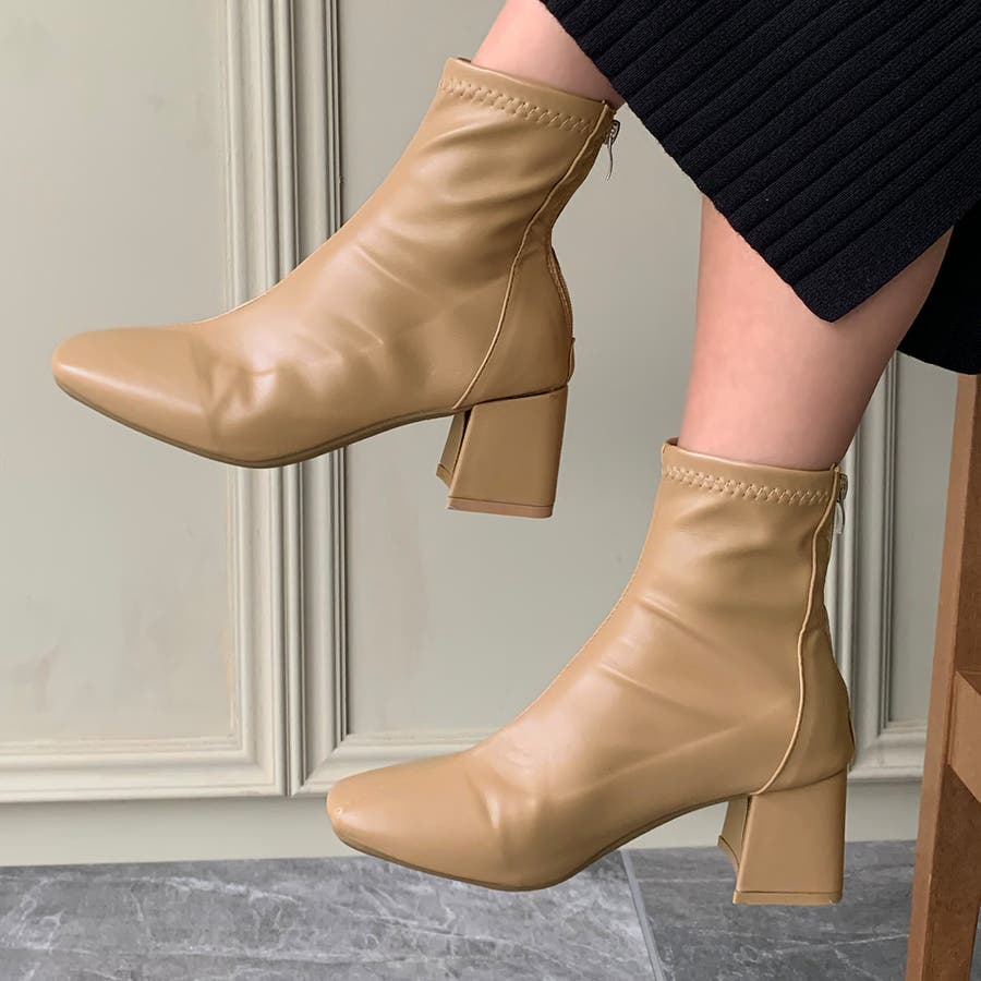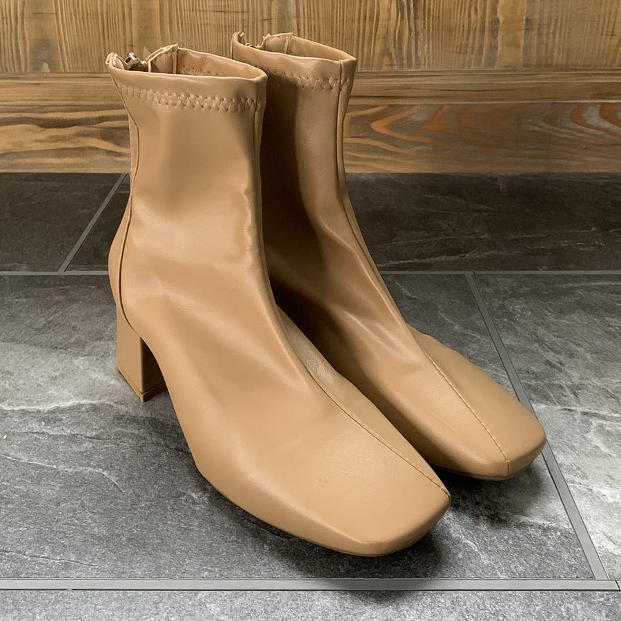 スクエアトゥPUレザーショートブーツ