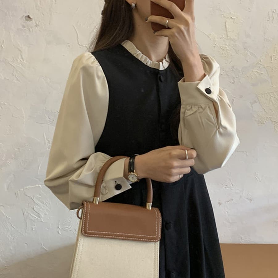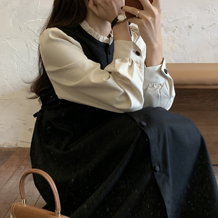 袖の部分がもう少し薄い生地かと思ったらしっかりしていて厚めだった。クラシカルな感じでとってもかわいい。