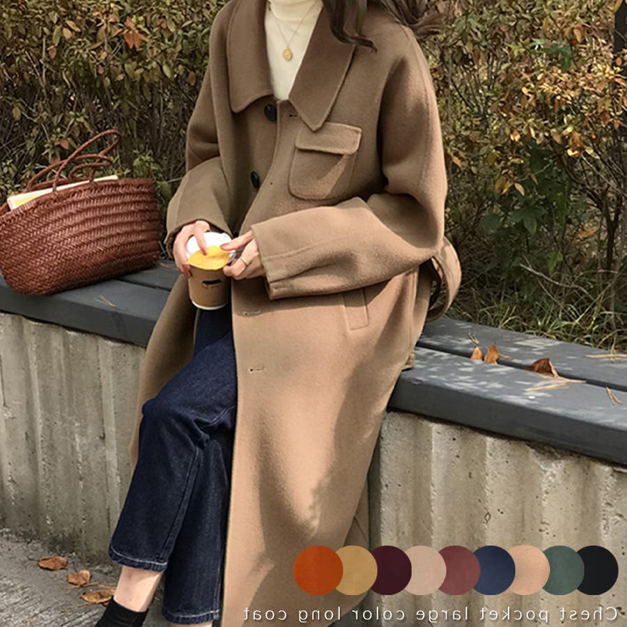 胸ポケットラージカラーロングコート