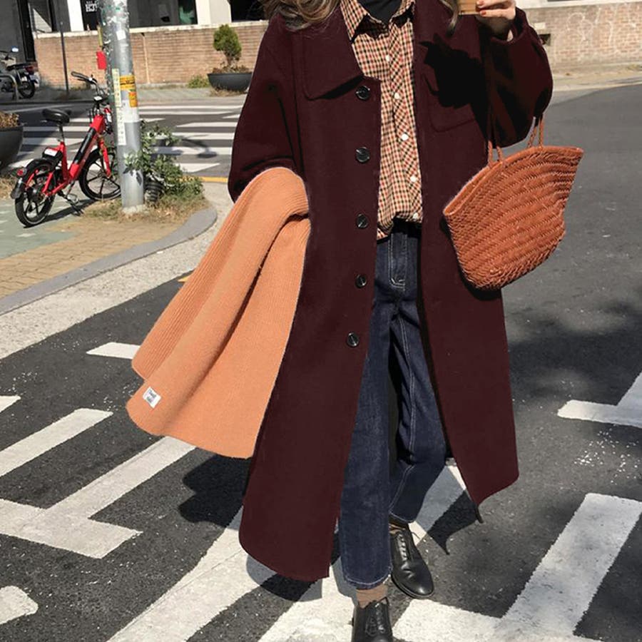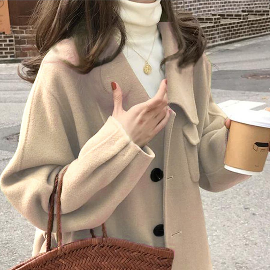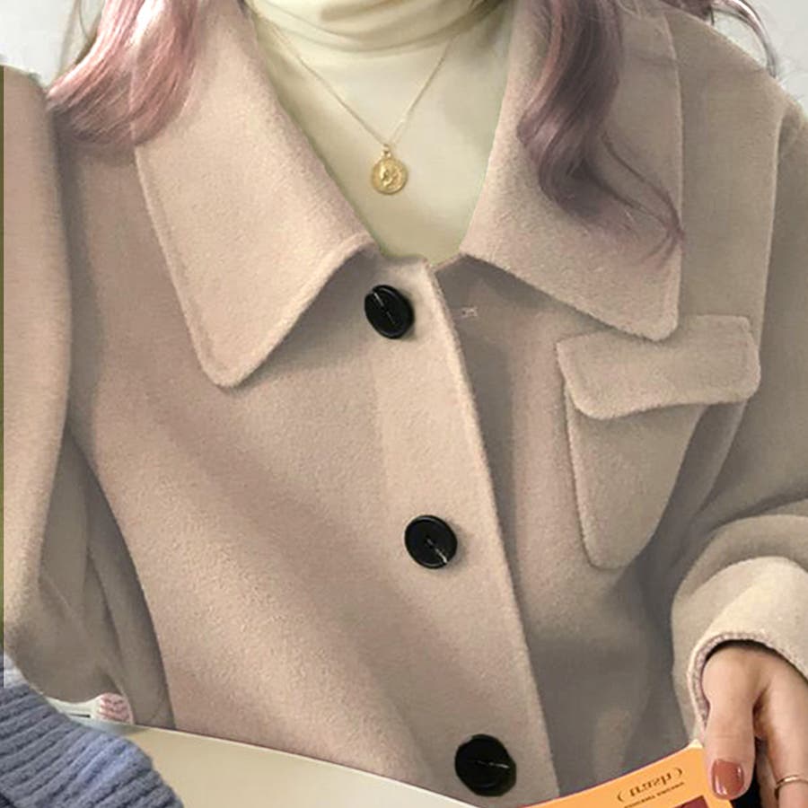 襟元が珍しいデザインで、大きな襟があるのに首元が開いているのでタートルネックなどととても相性がよく気に入りました。ただ毛羽立ちやすいのでコートブラシを使用しても1シーズンで終わりかなとという素材。安いし可愛いから色物にチャレンジするなら良いと思います