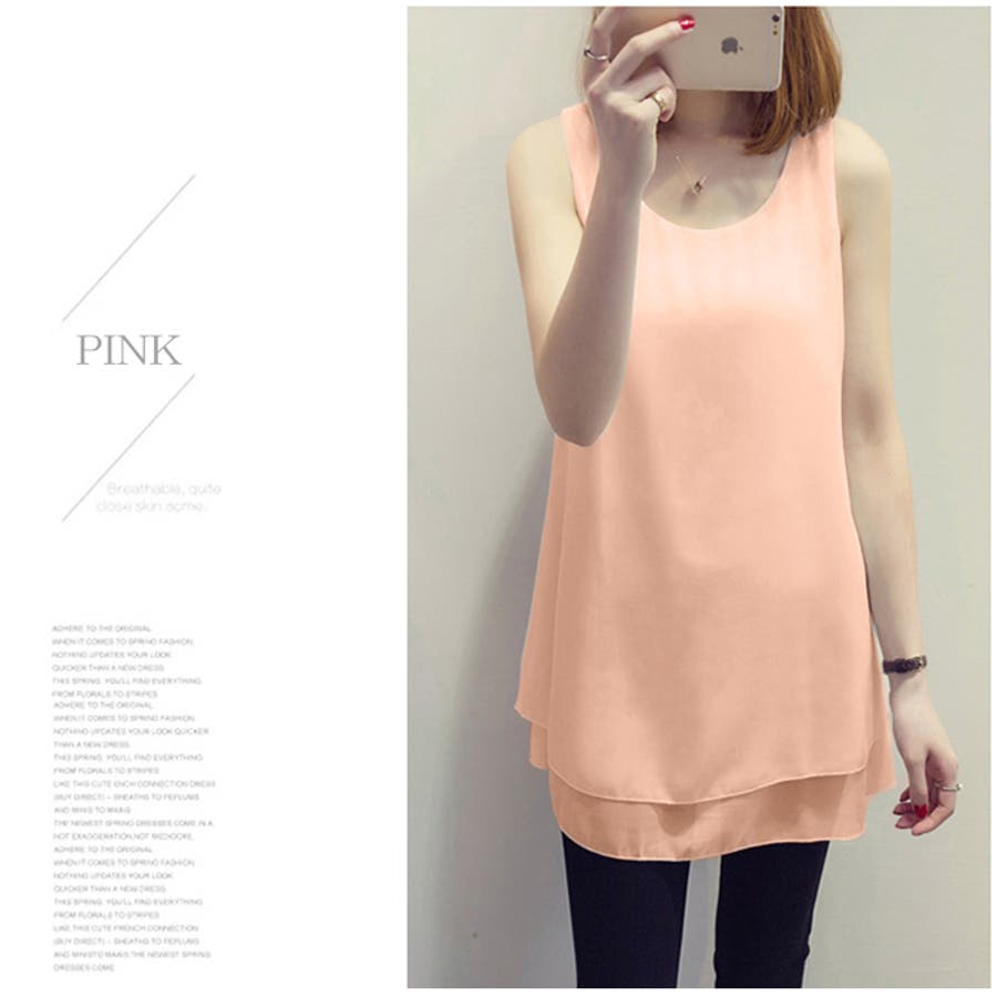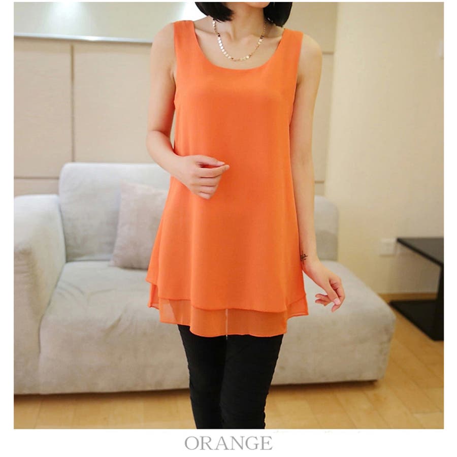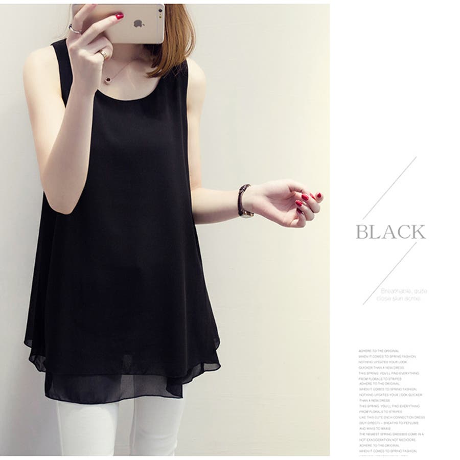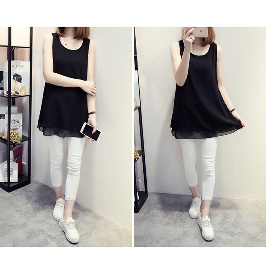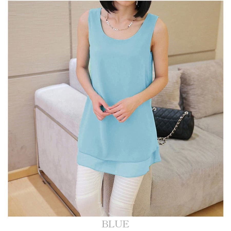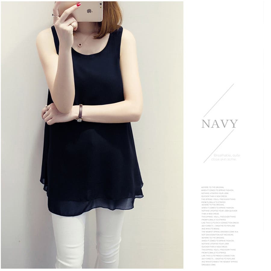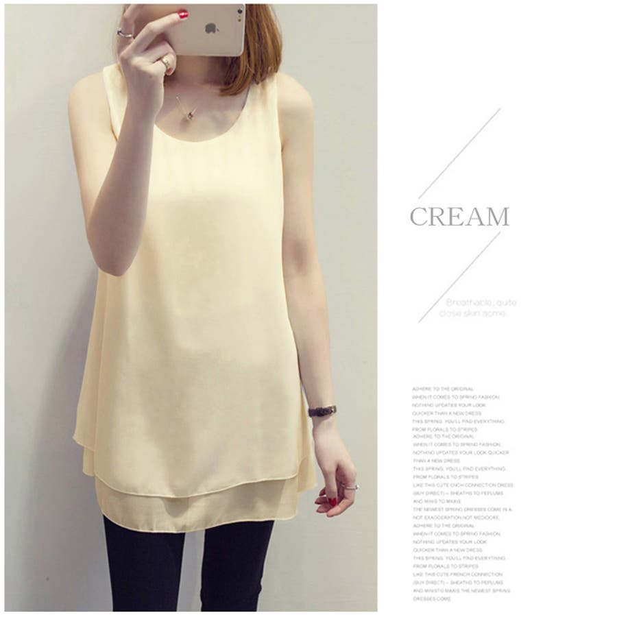 透けない厚手シフォンの二重レイヤード ふんわりシフォンレイヤードタンクトップ