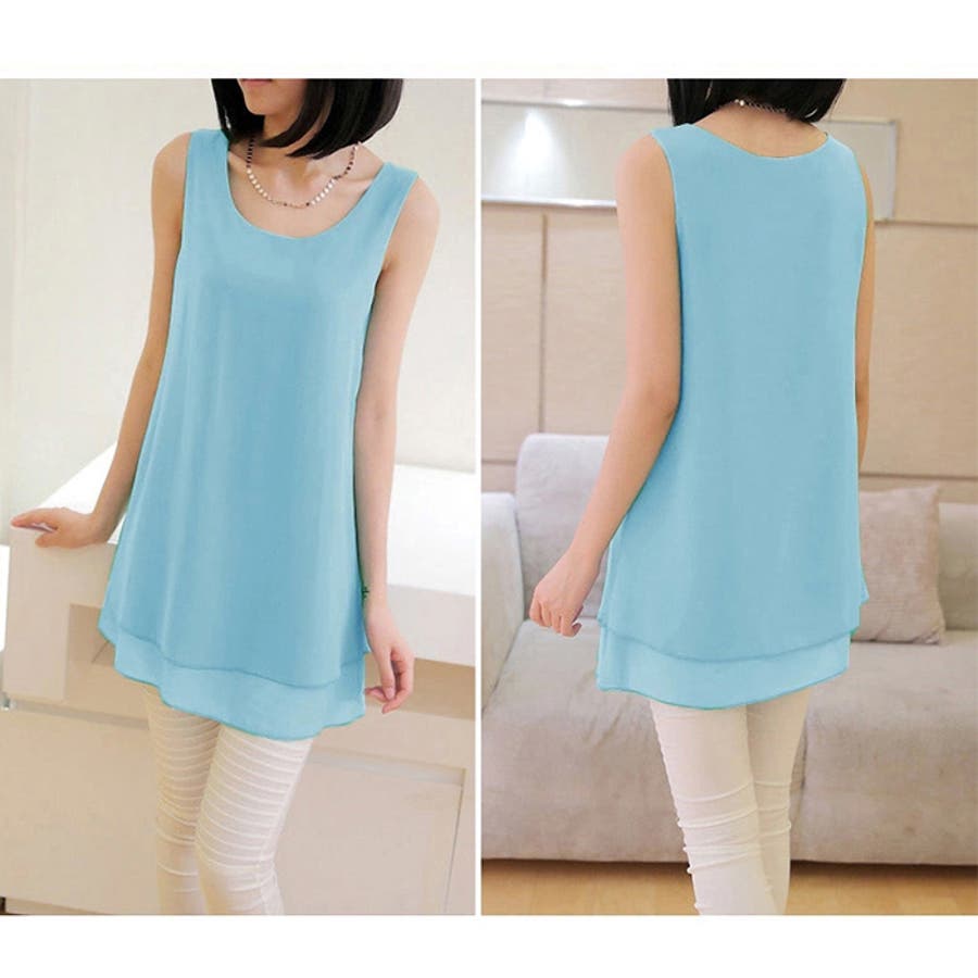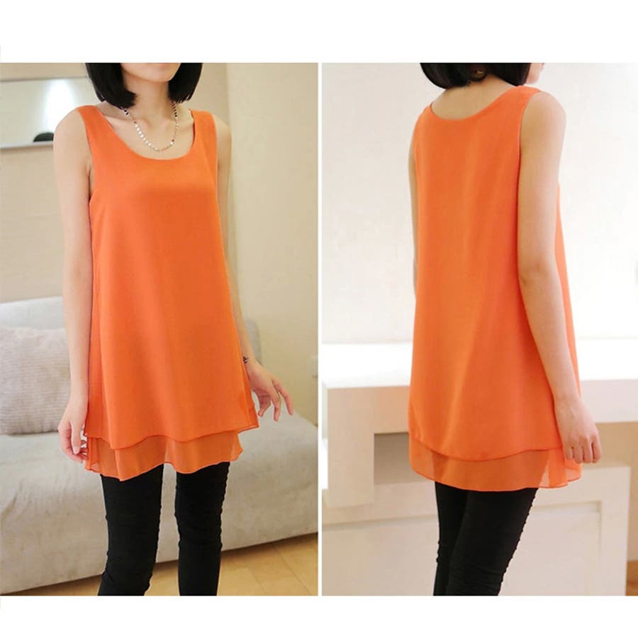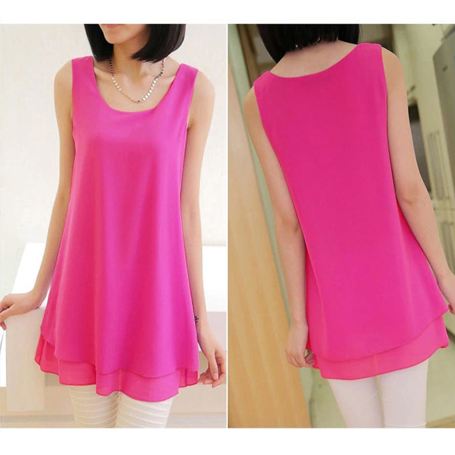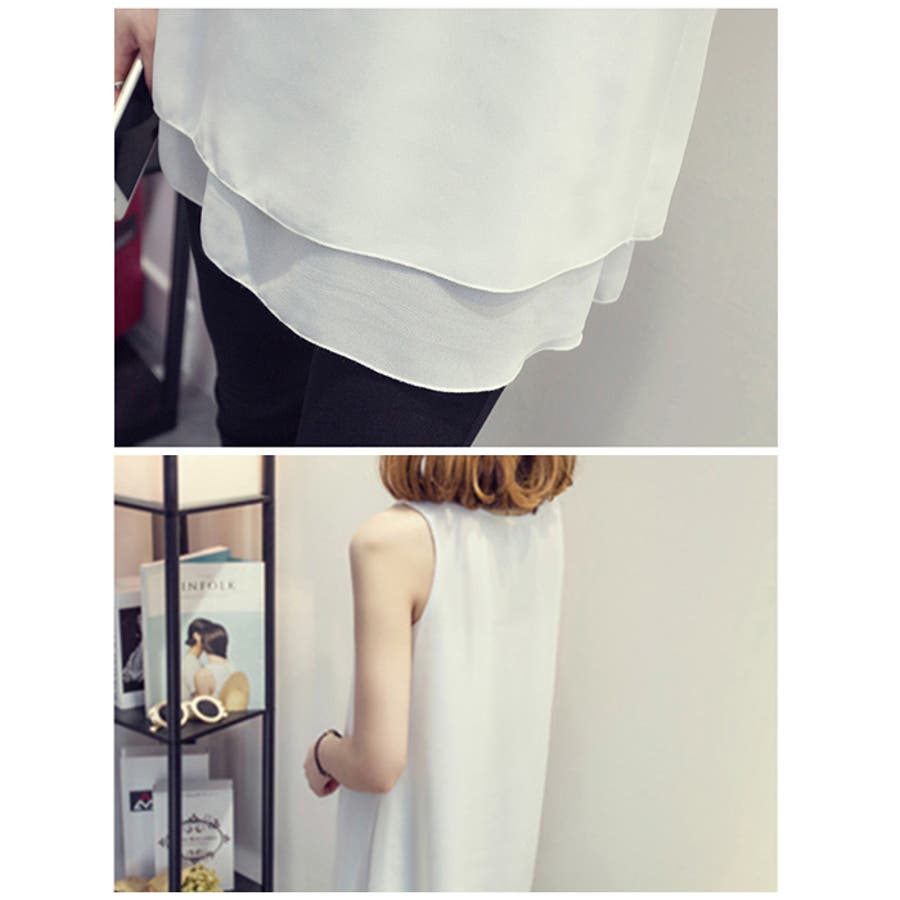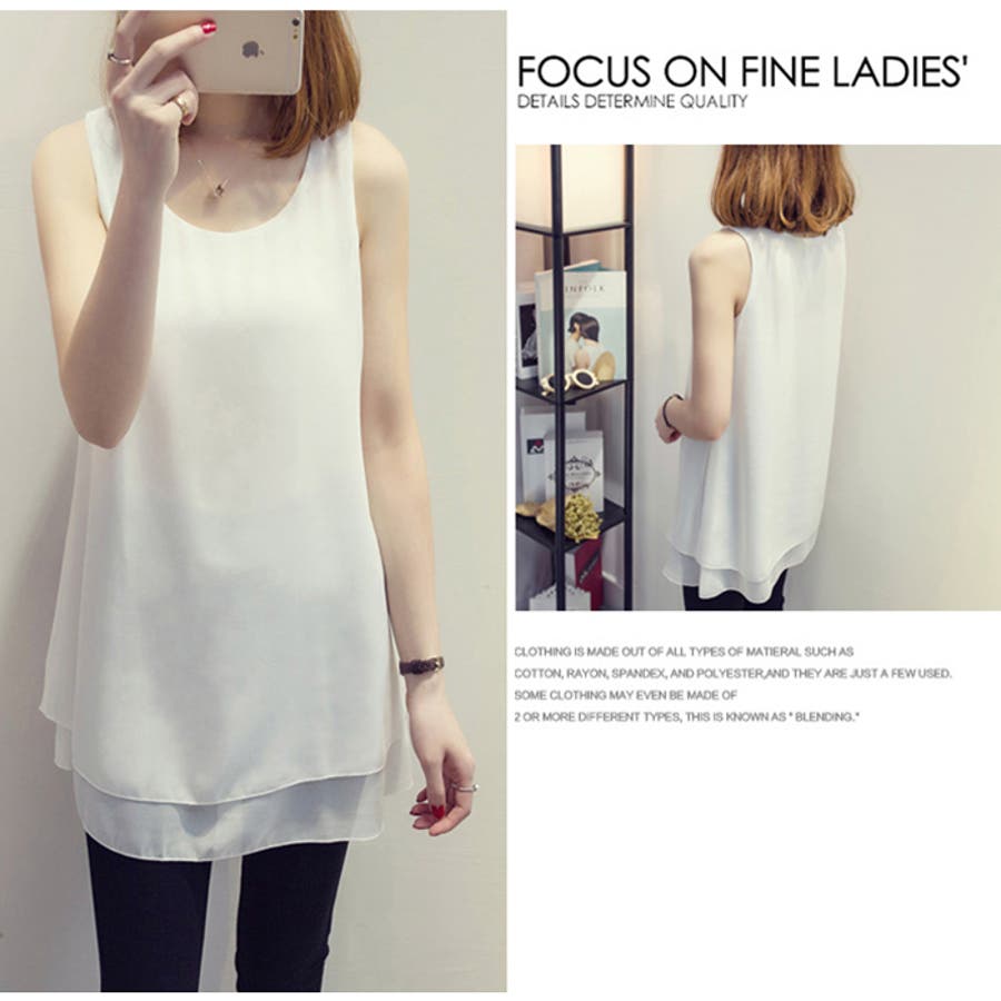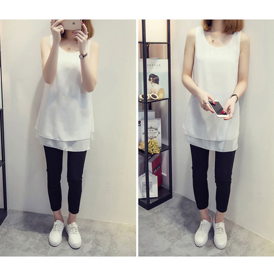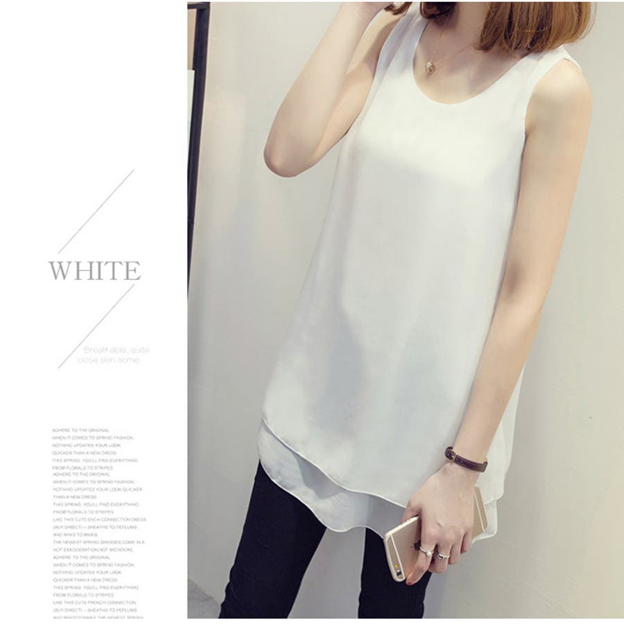透けない厚手シフォンの二重レイヤード ふんわりシフォンレイヤードタンクトップ
