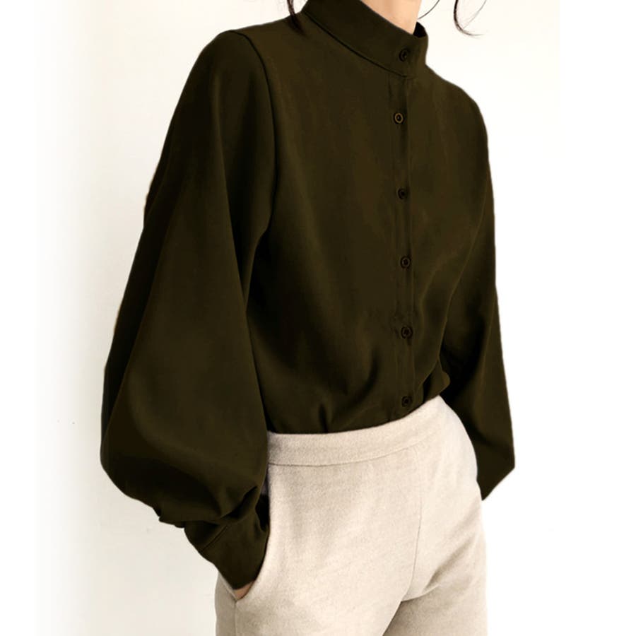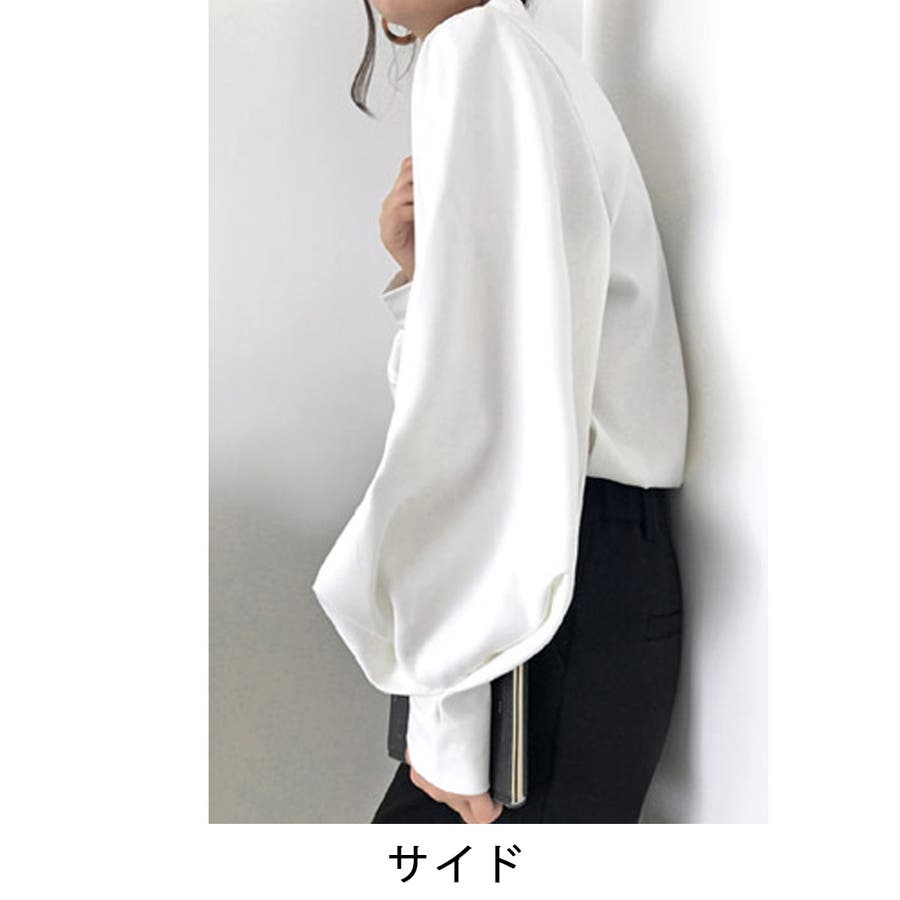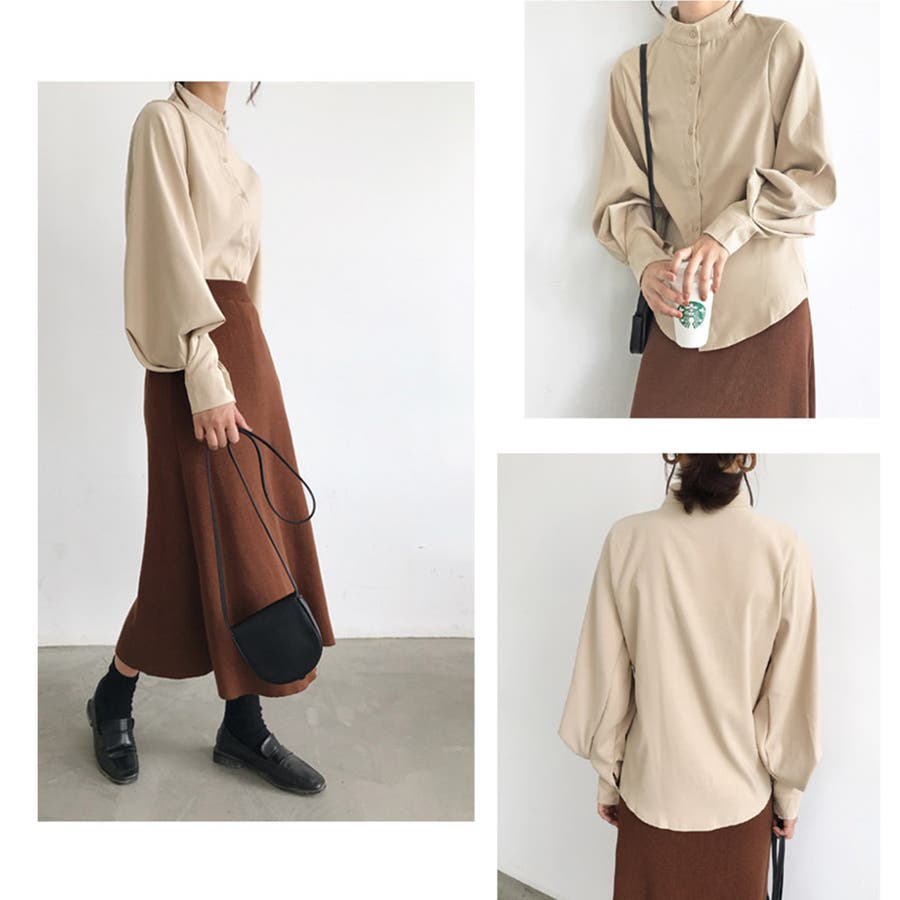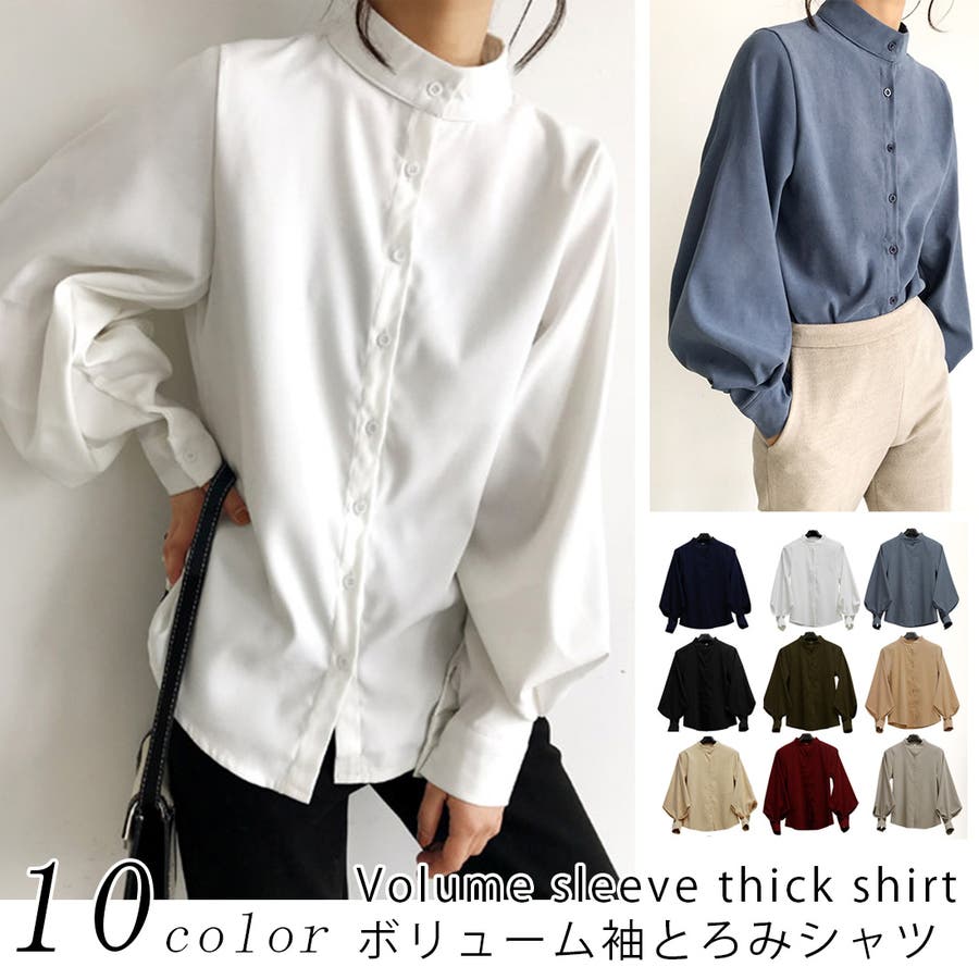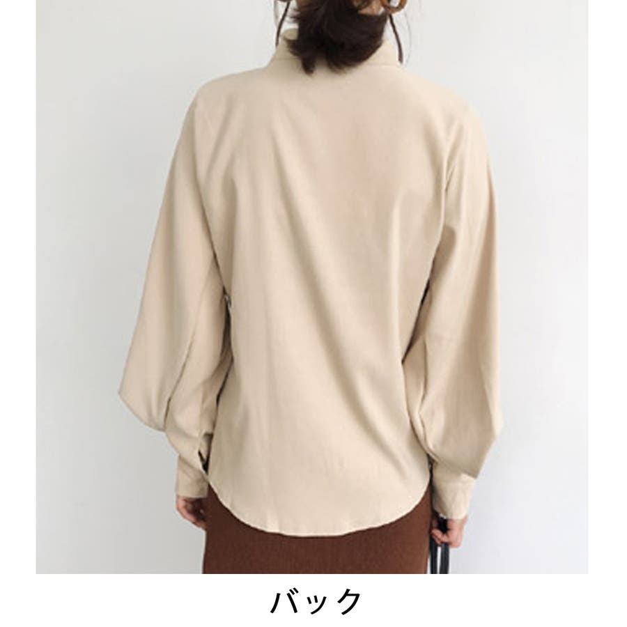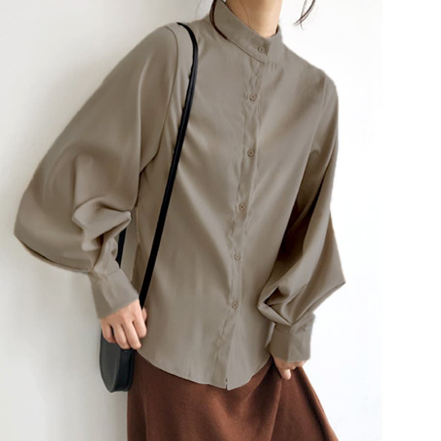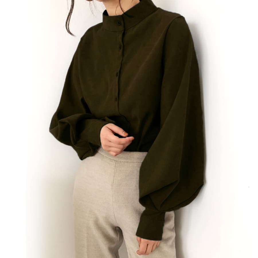 とろみシャツ ボリュームスリーブ スキッパーシャツ