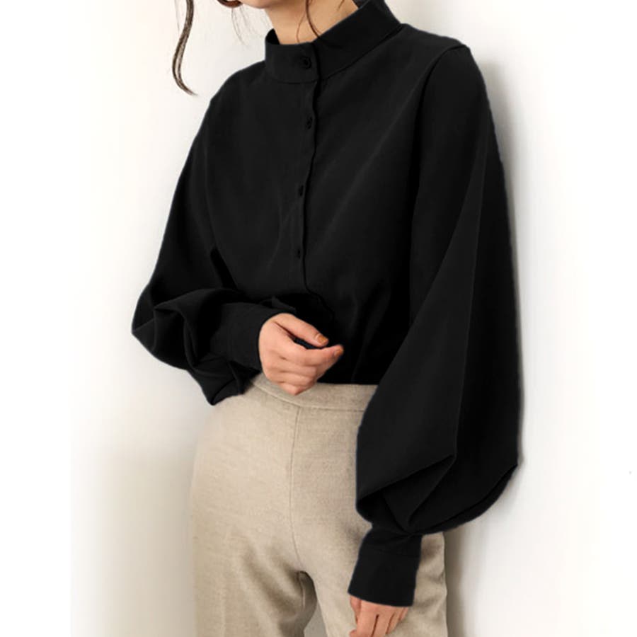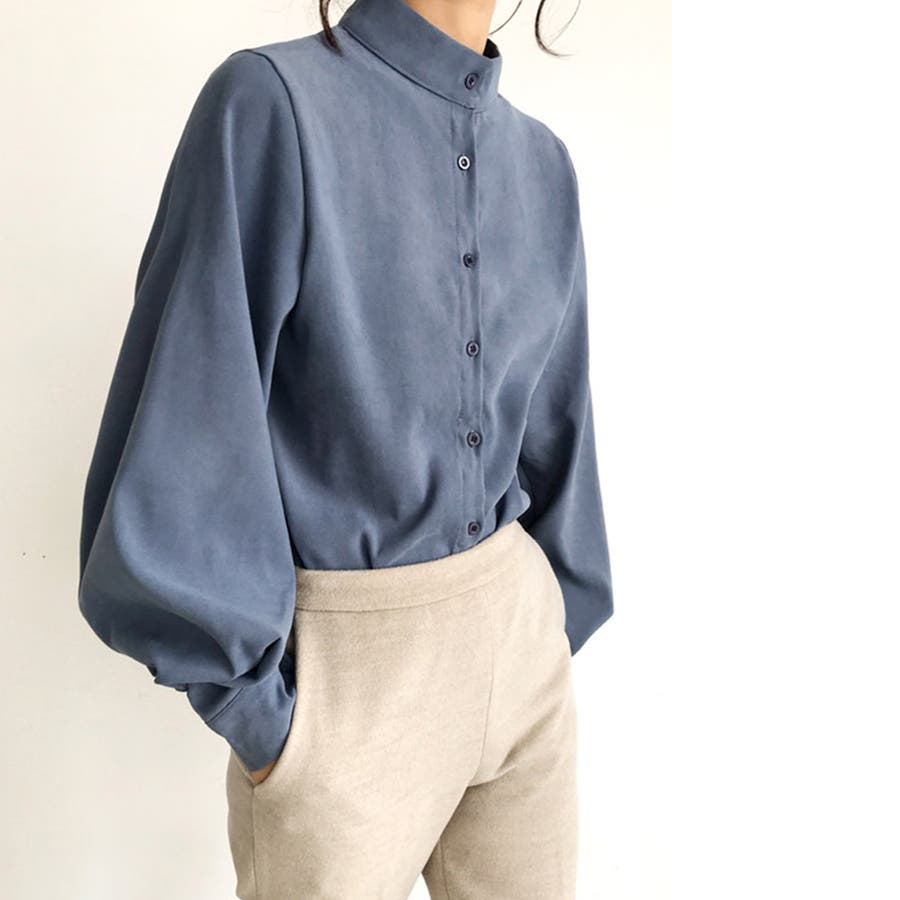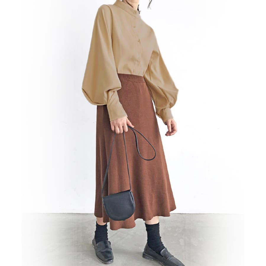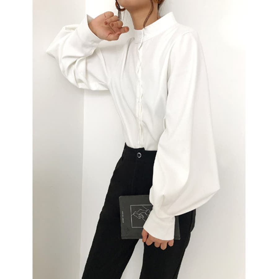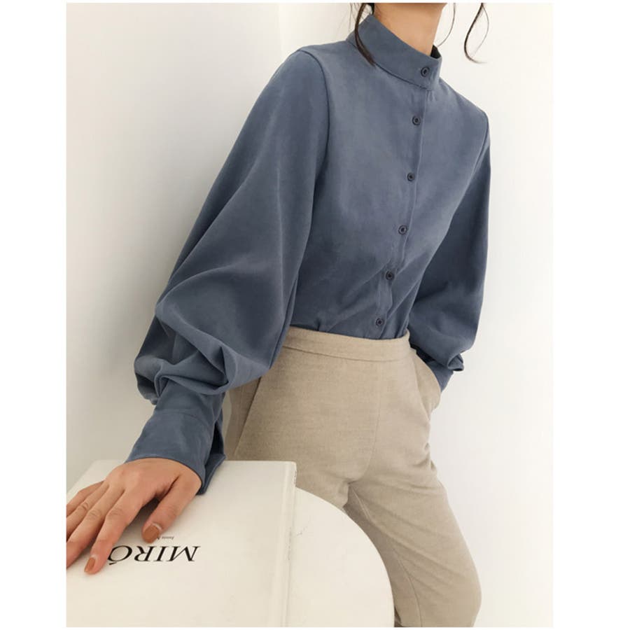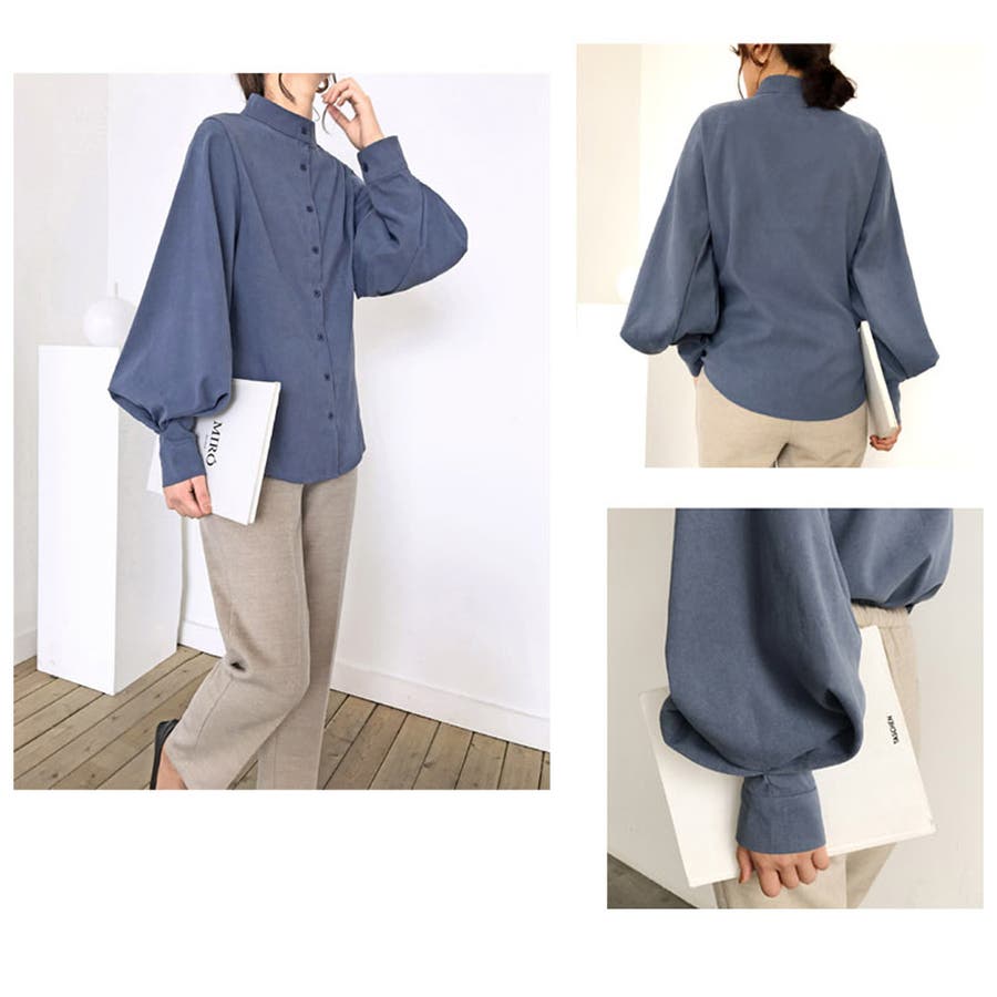 とろみシャツ ボリュームスリーブ スキッパーシャツ