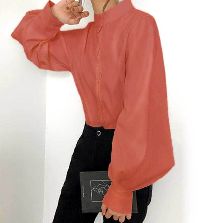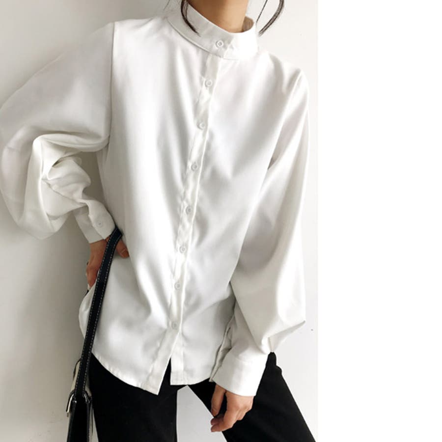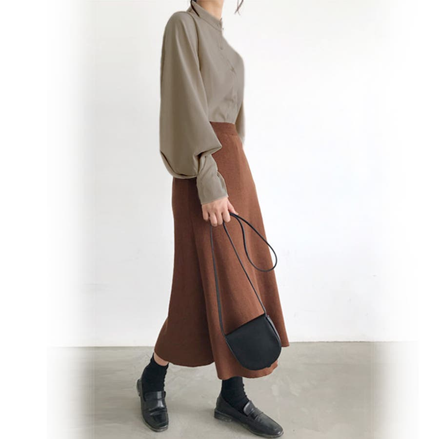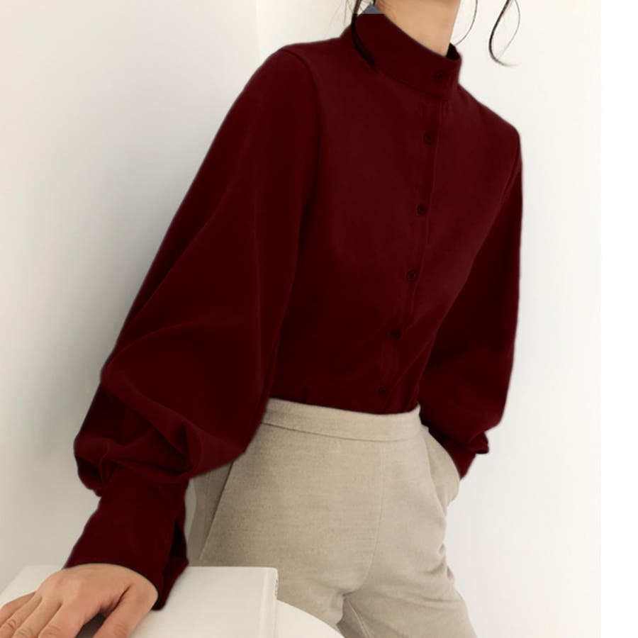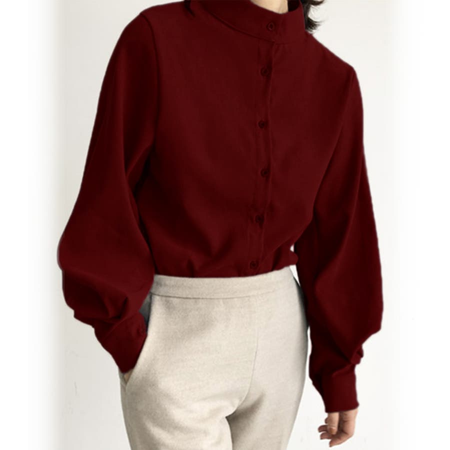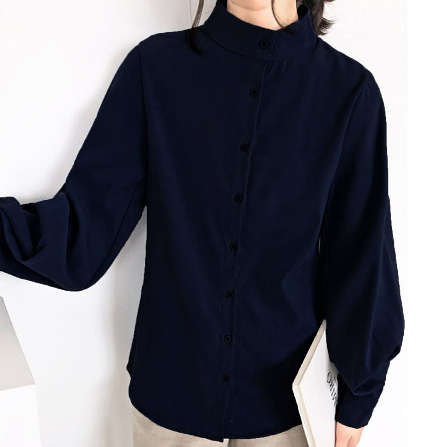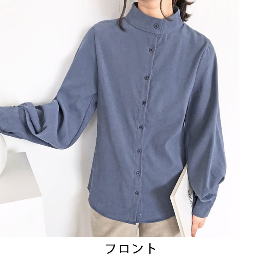 とろみシャツ ボリュームスリーブ スキッパーシャツ