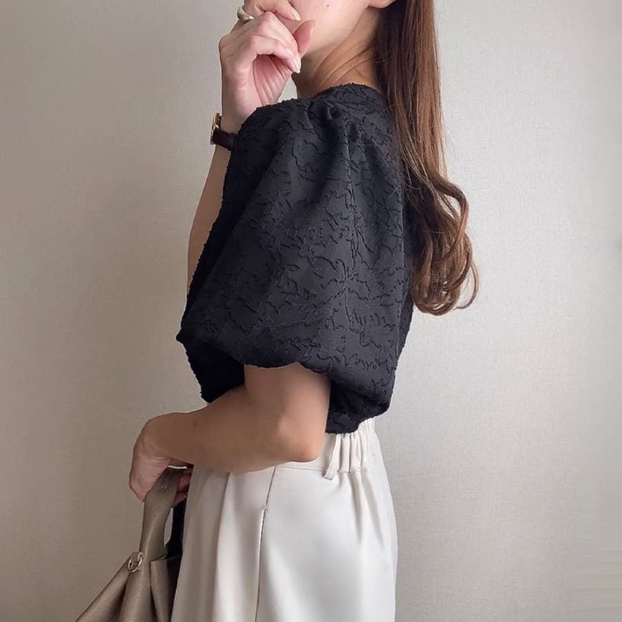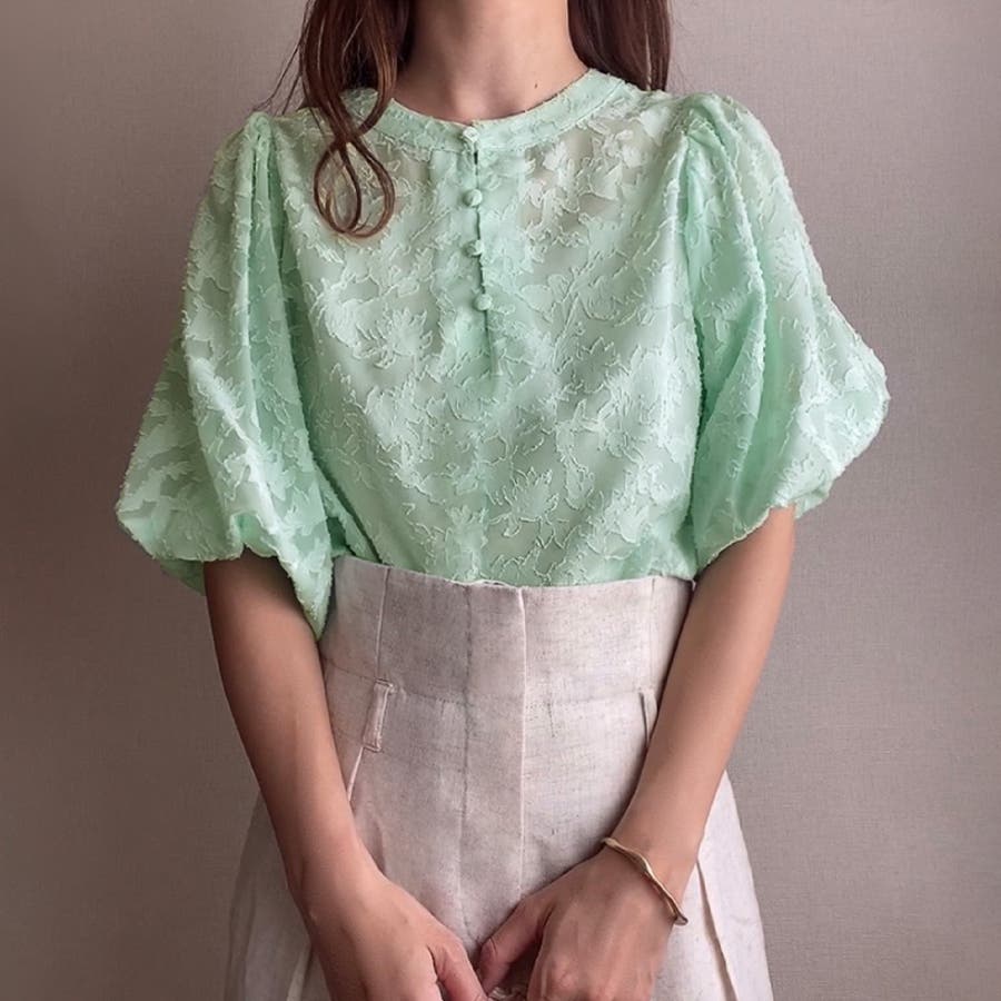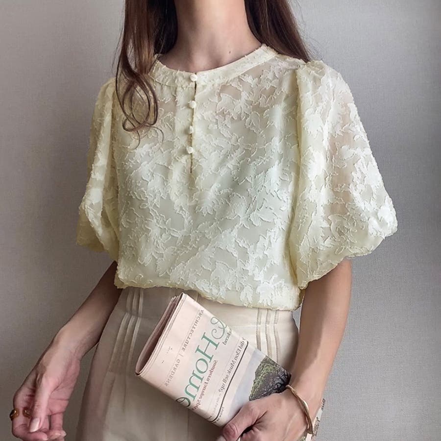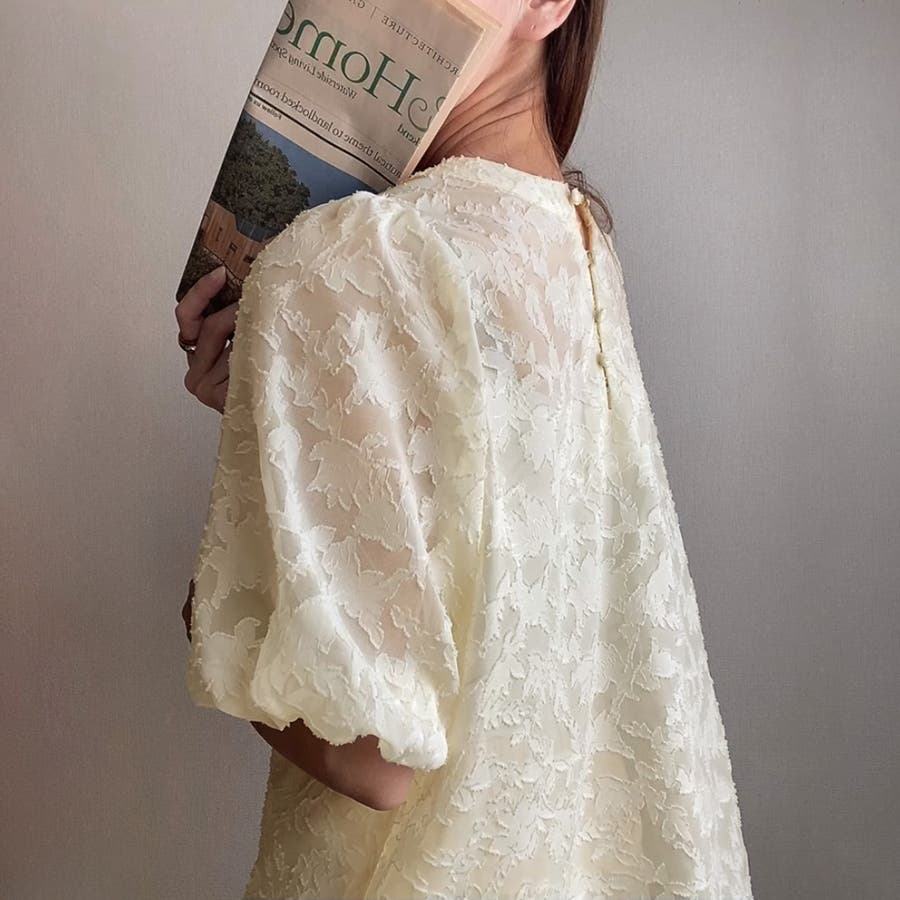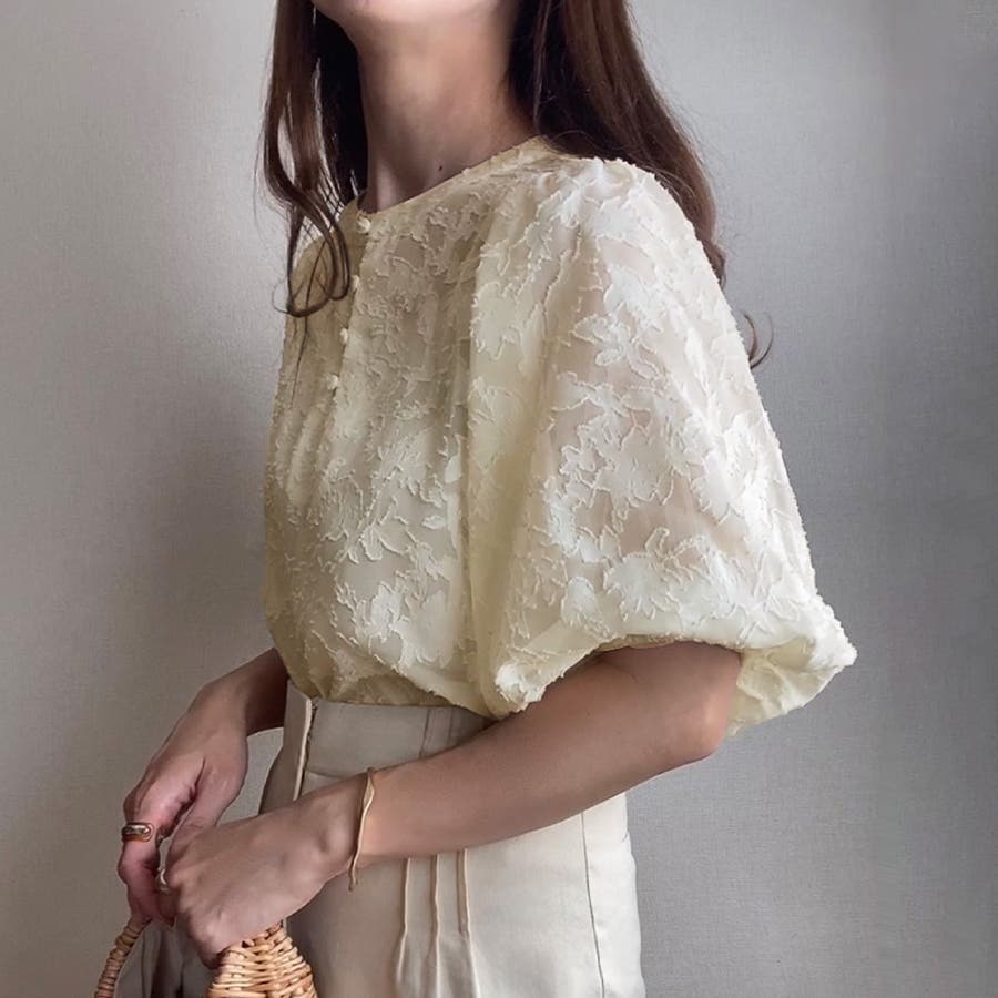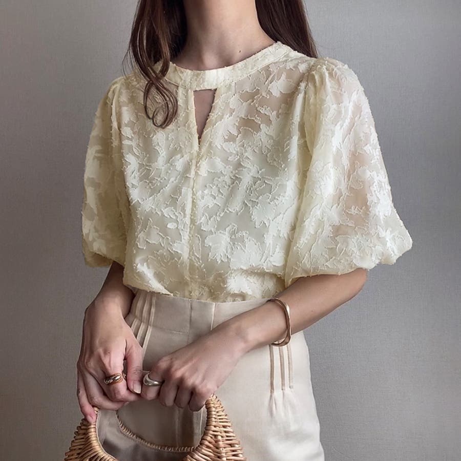 【クリーム】FILLOU 2wayシアーフラワージャガードボリュームスリーブブラウス