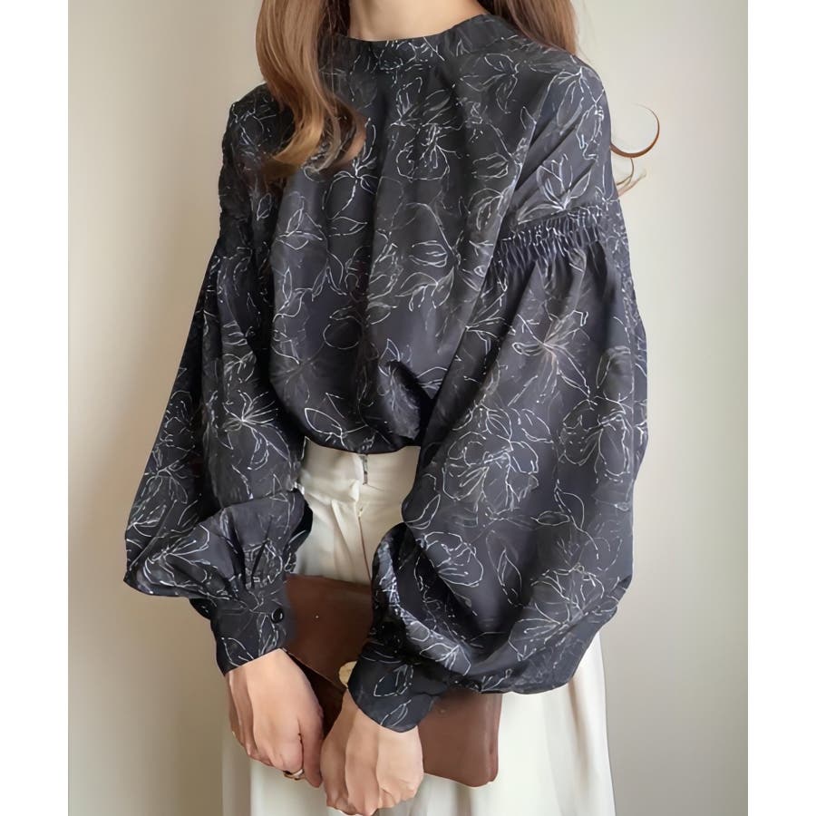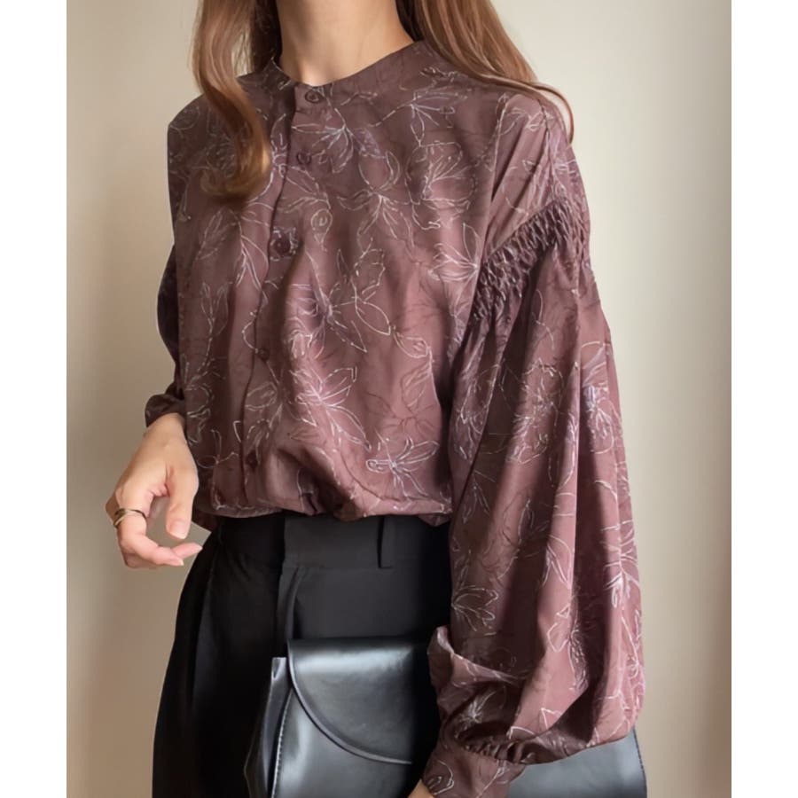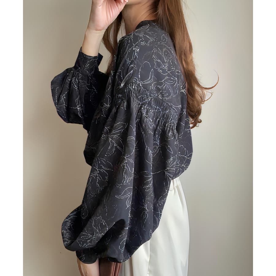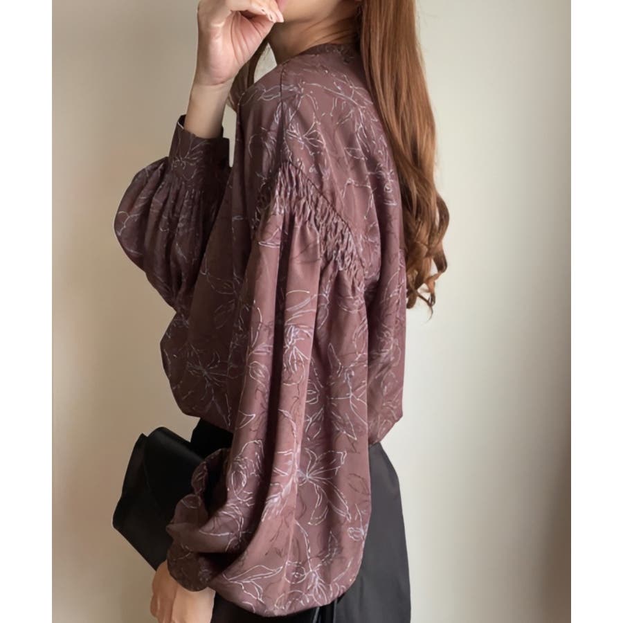 FILLOU フラワープリントギャザーブラウス