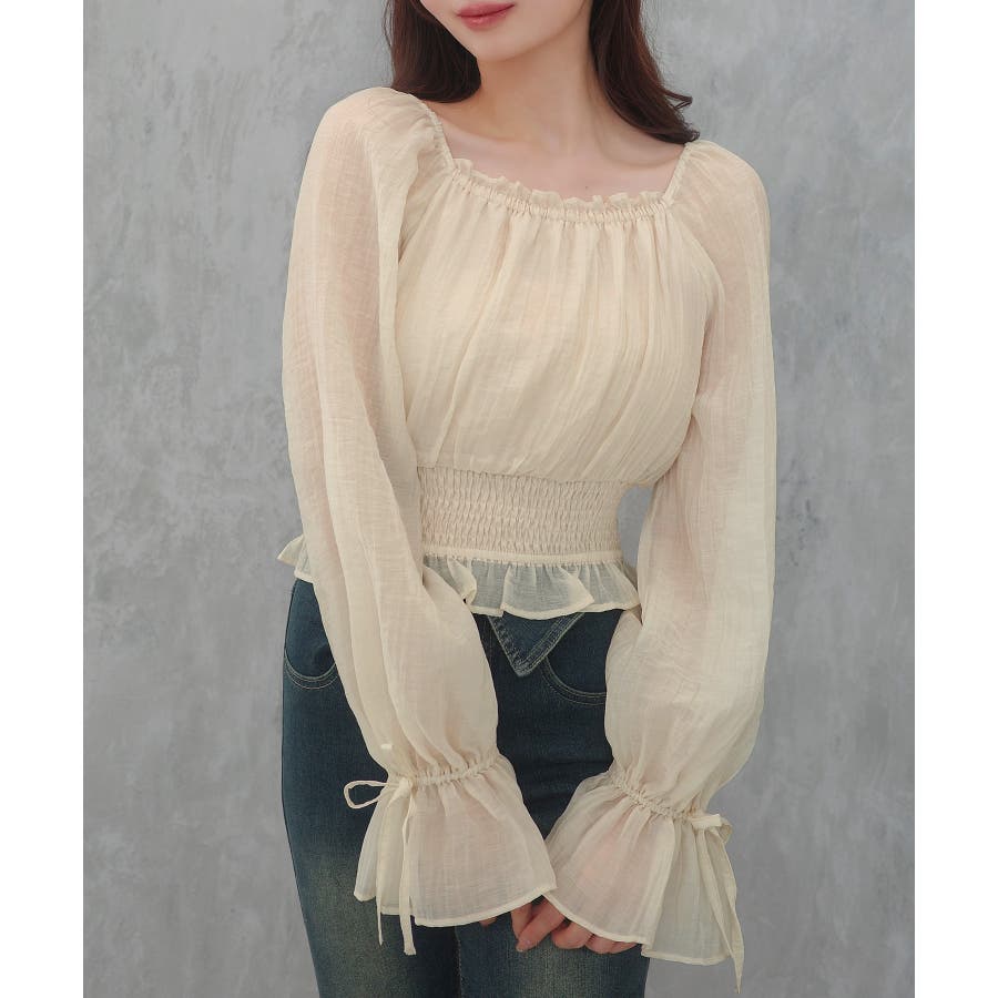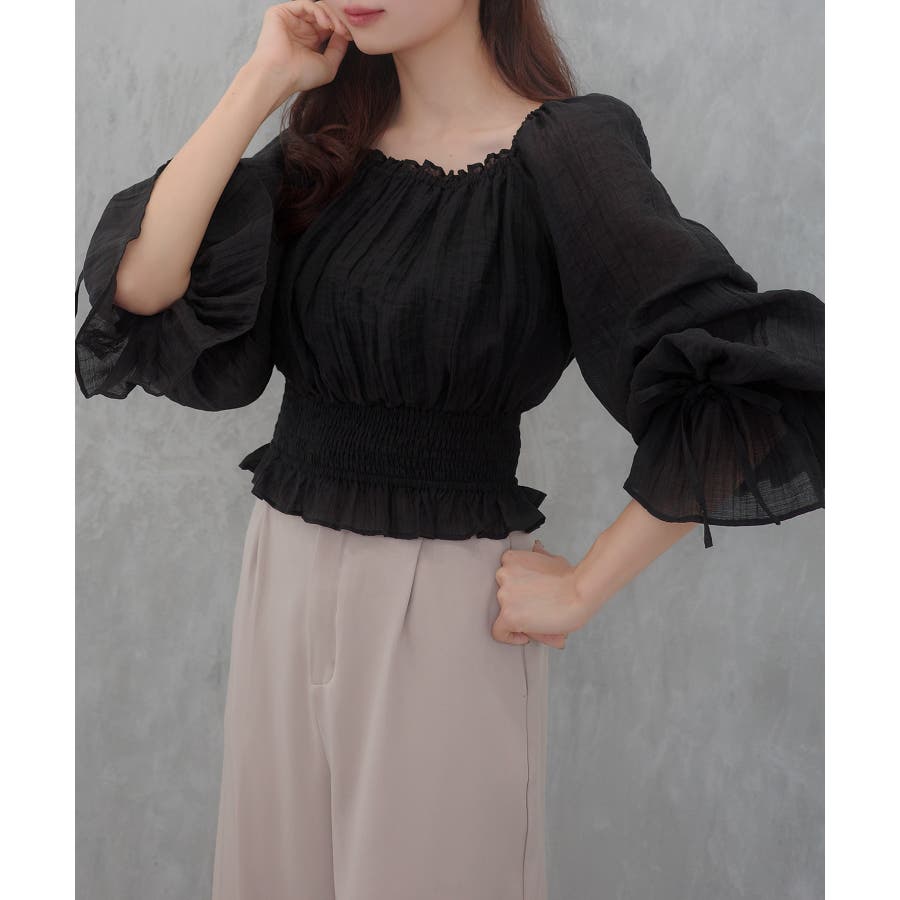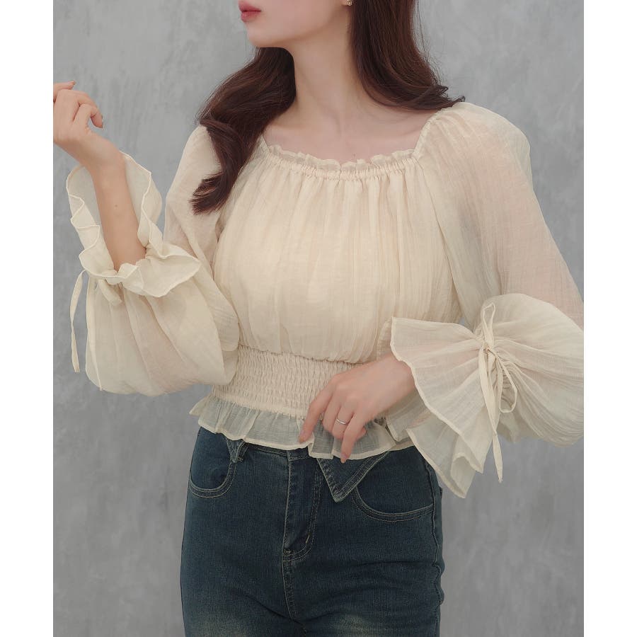 CENEA 2way袖リボンスクエアネックブラウス