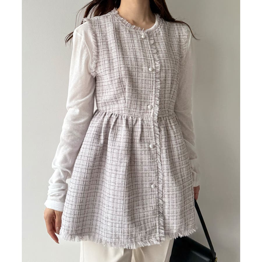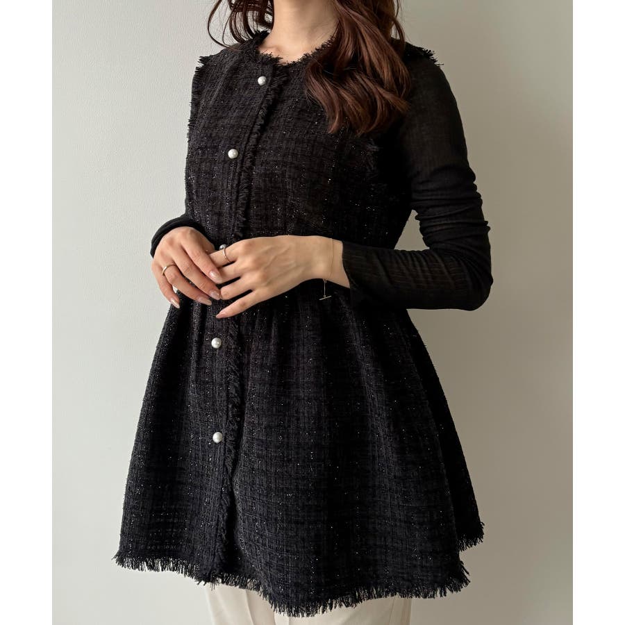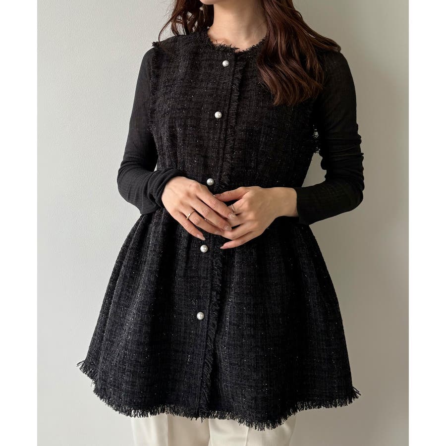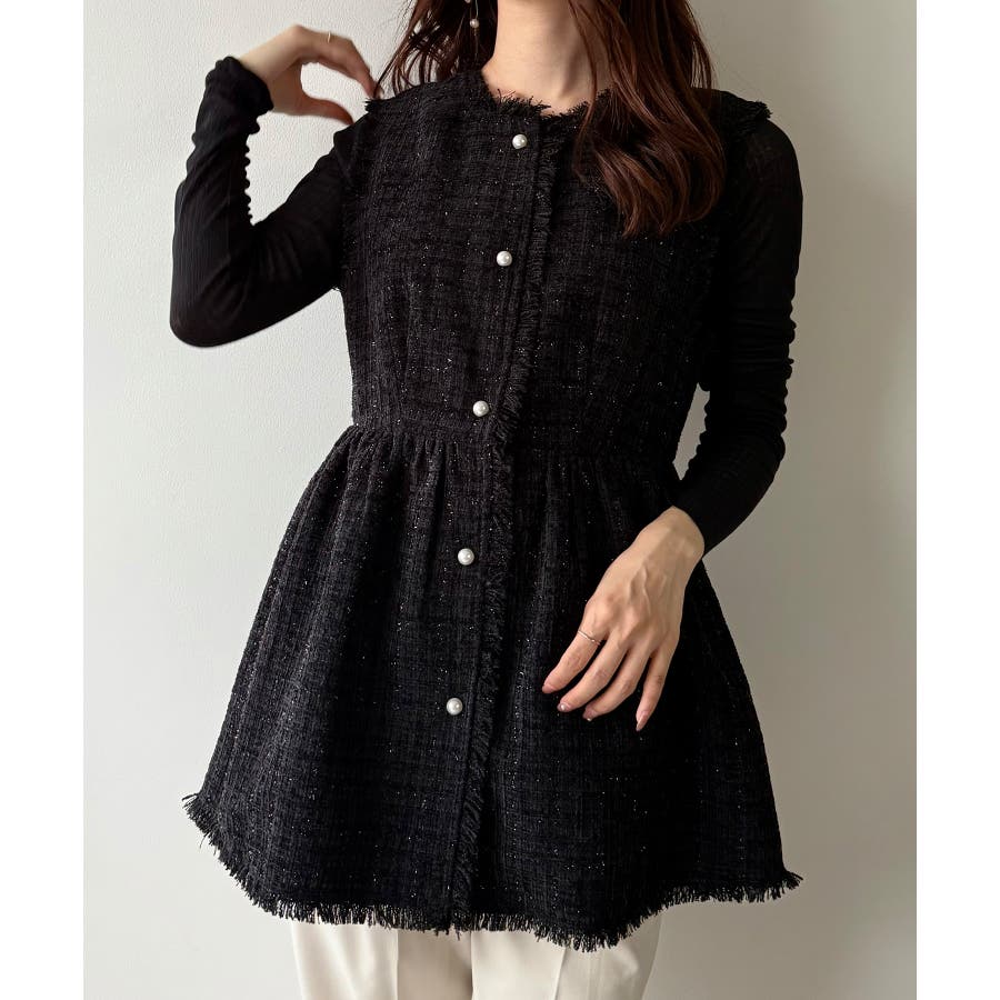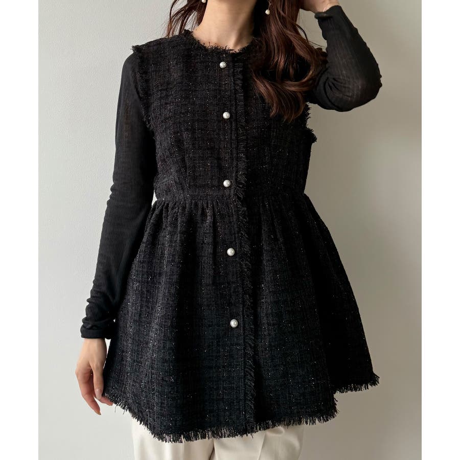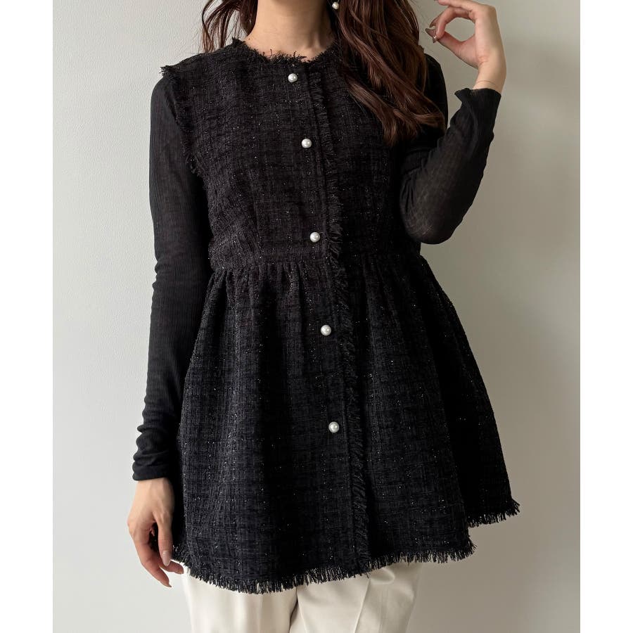 mipiarl ラメツイードパールボタンペプラムトップス(薄手)