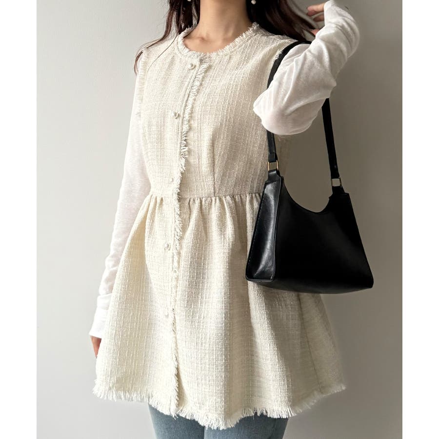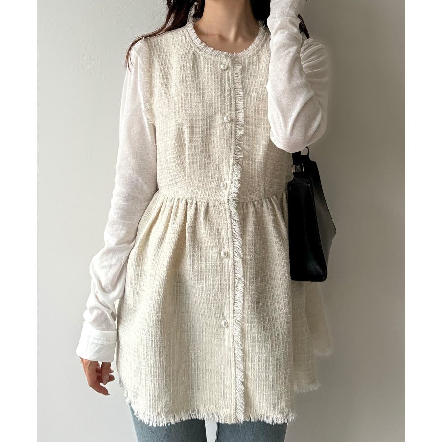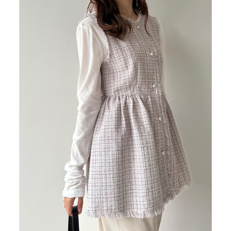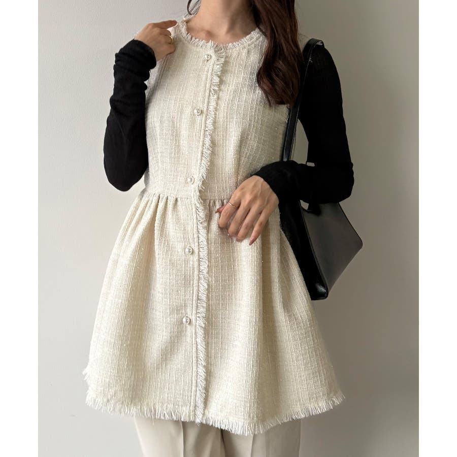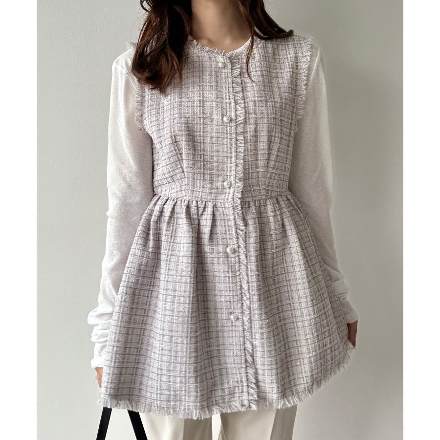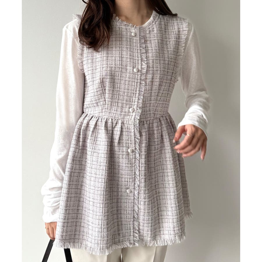 mipiarl ラメツイードパールボタンペプラムトップス(薄手)