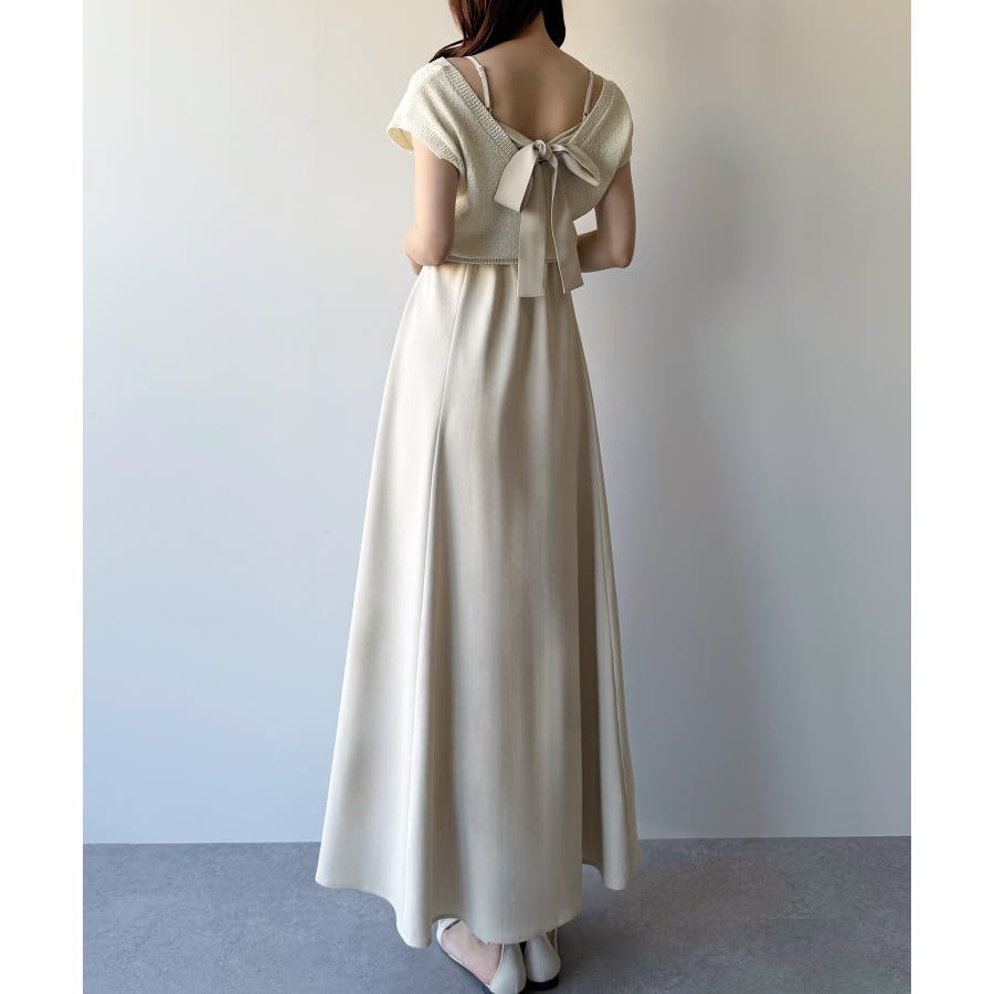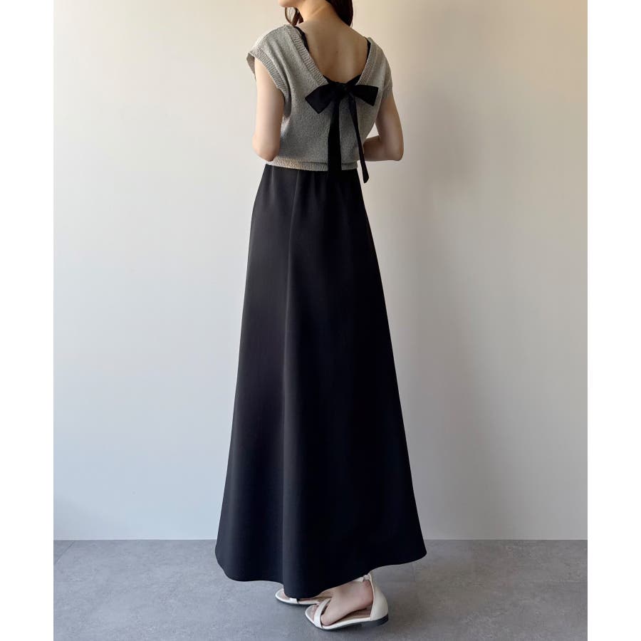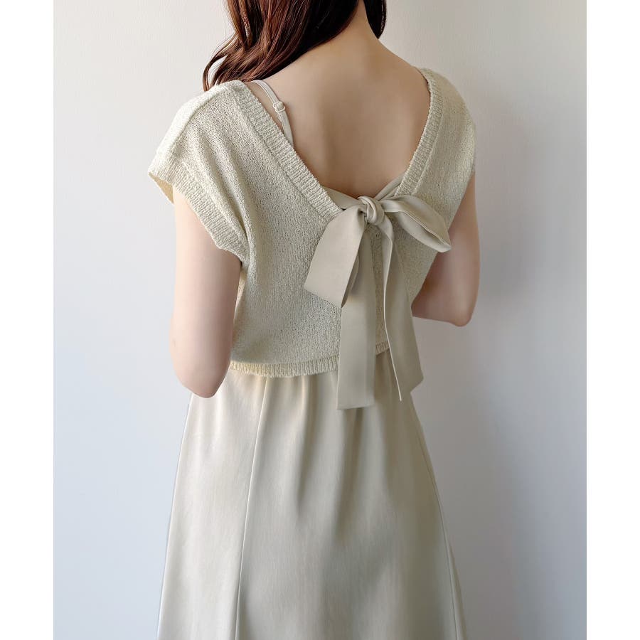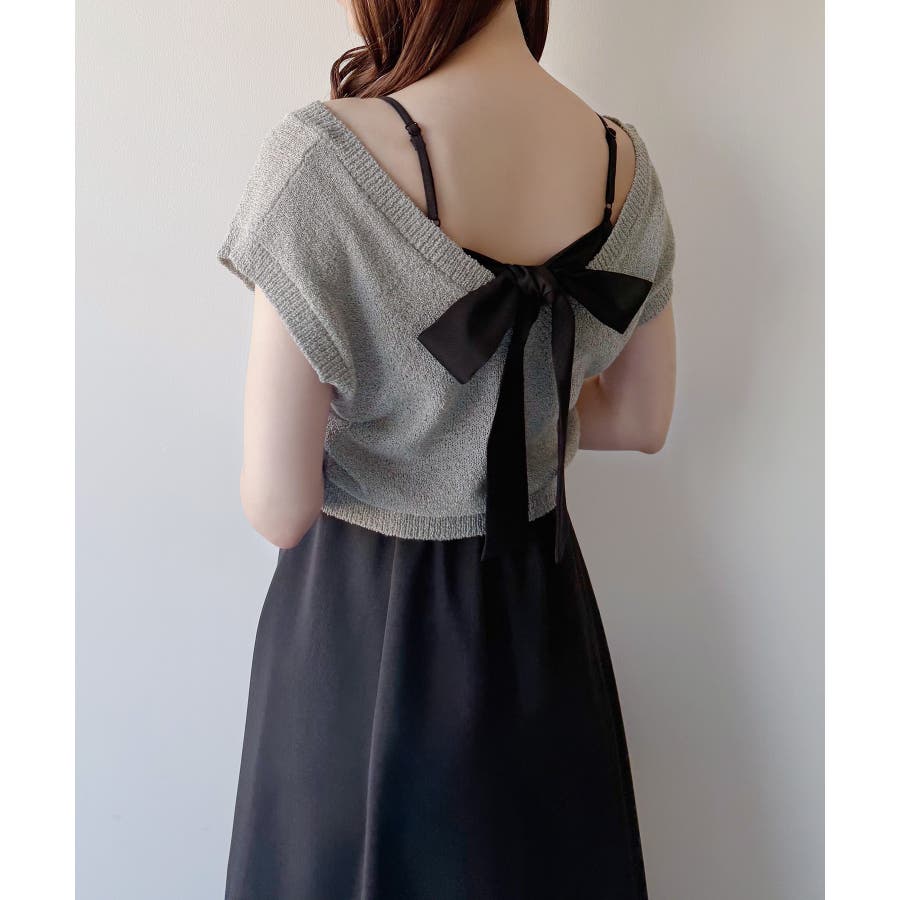 【グレー】mipiarl ラメニットベスト+バックリボンキャミワンピースset