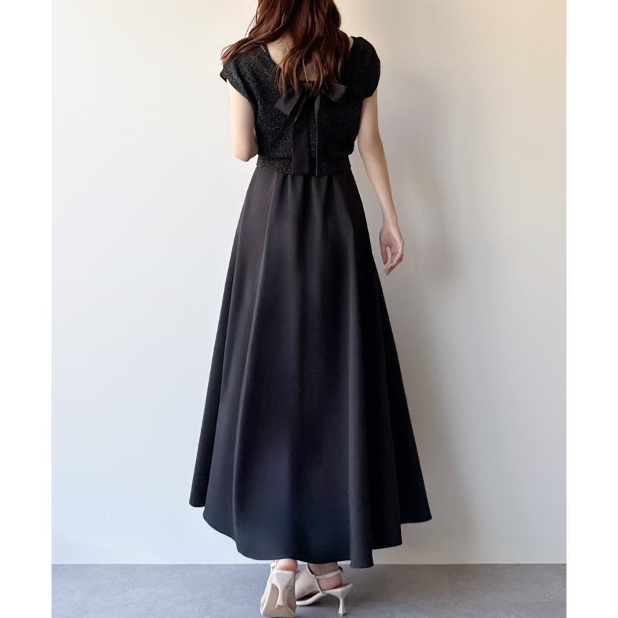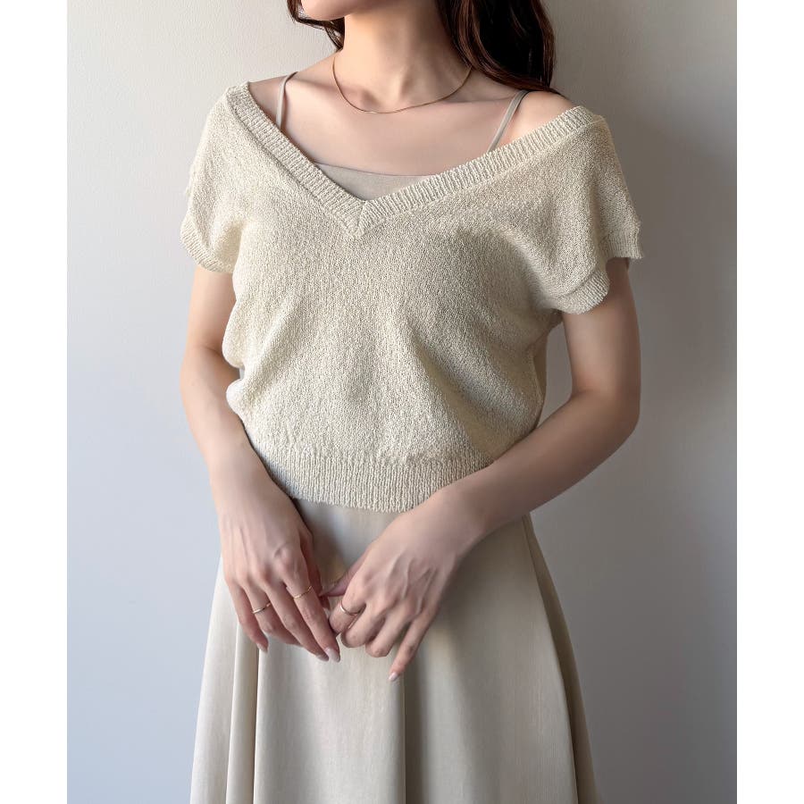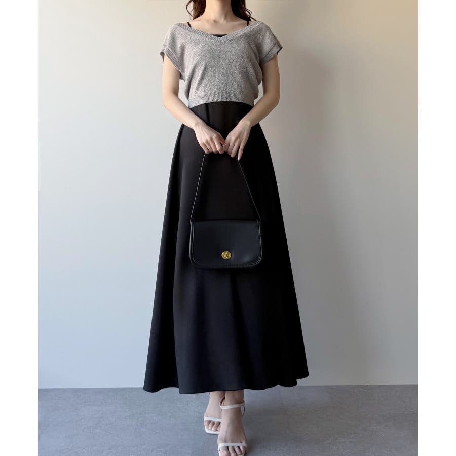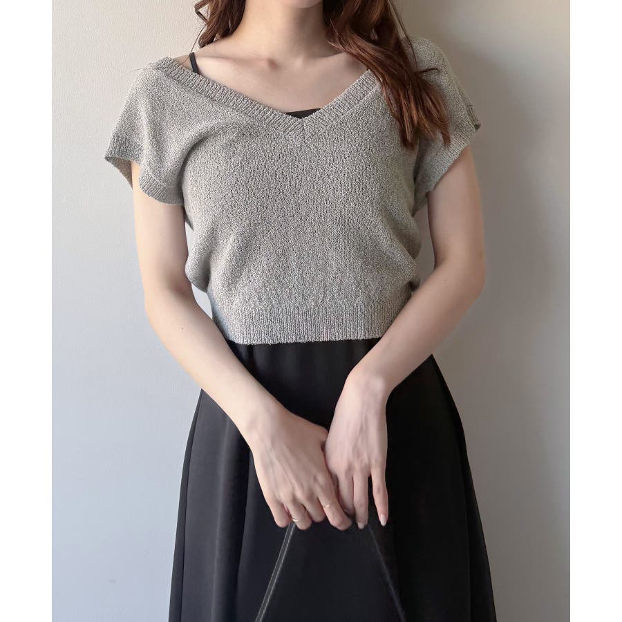 【グレー】mipiarl ラメニットベスト+バックリボンキャミワンピースset
