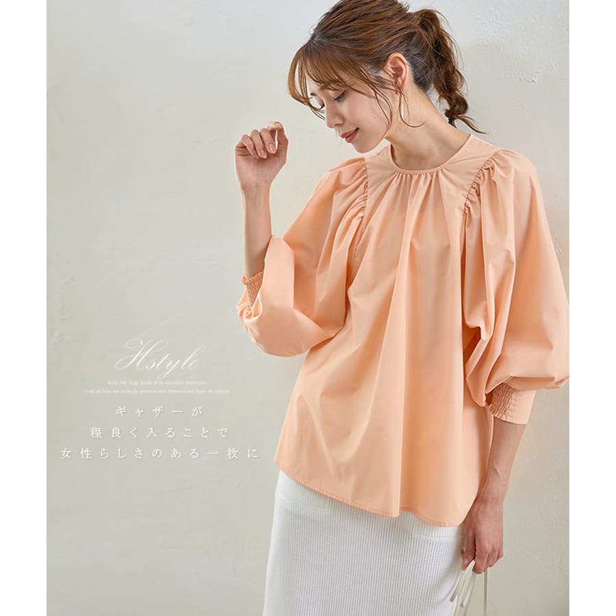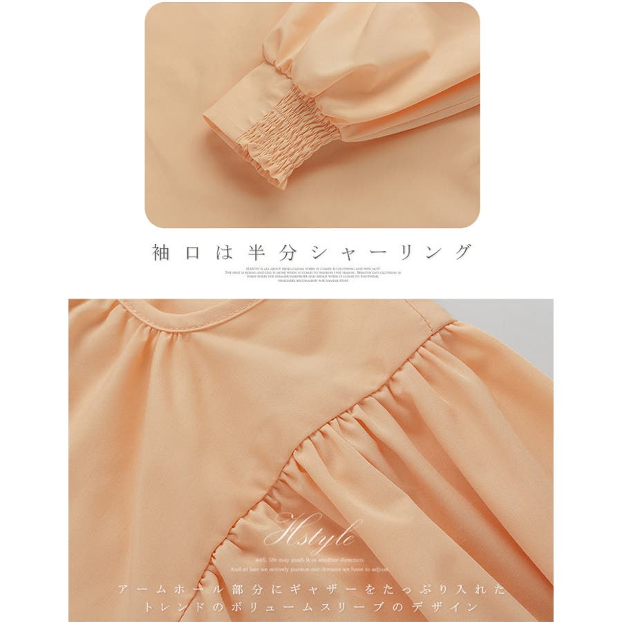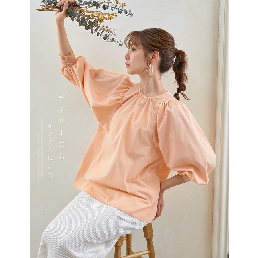 女性らしさのでるシルエット、スリーブまわりはギャザー入り、