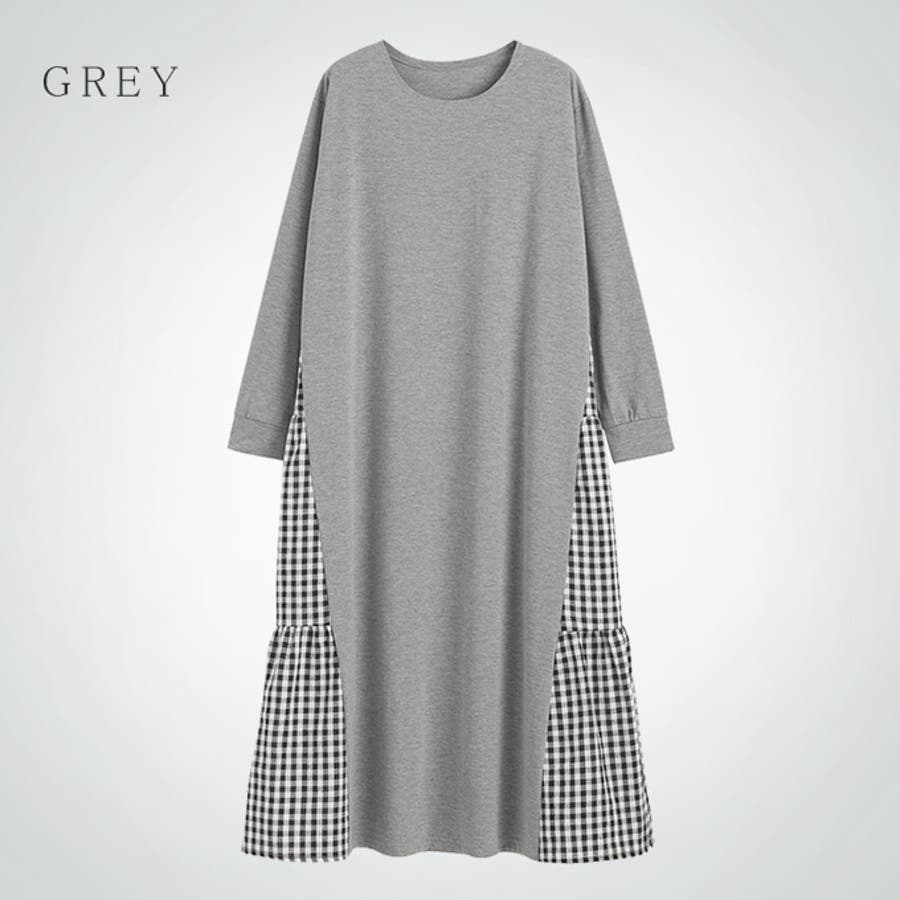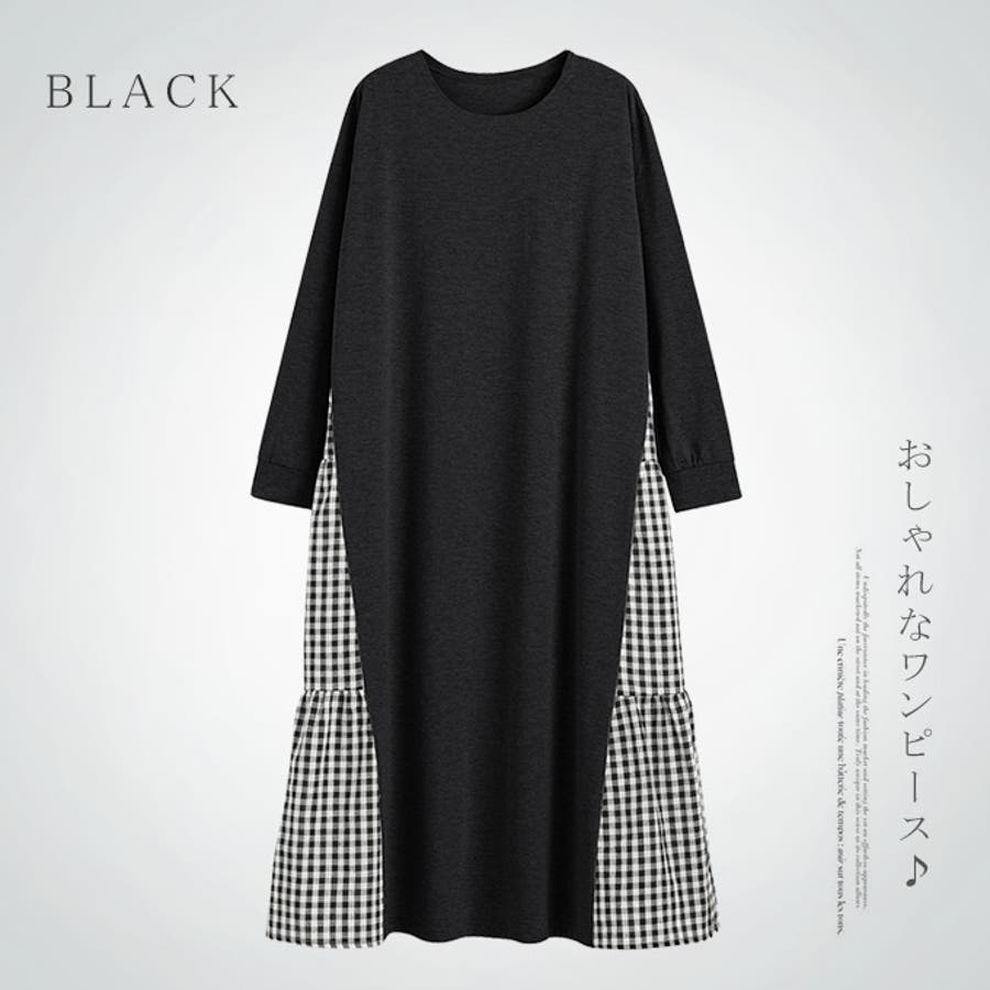 脇裾はチェック柄に接ぎ合わせたワンピース????