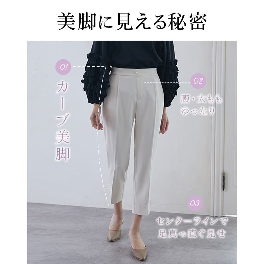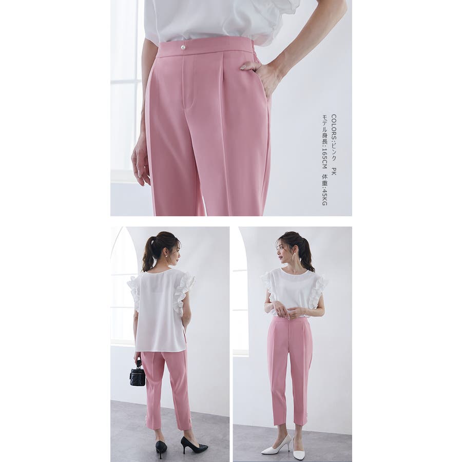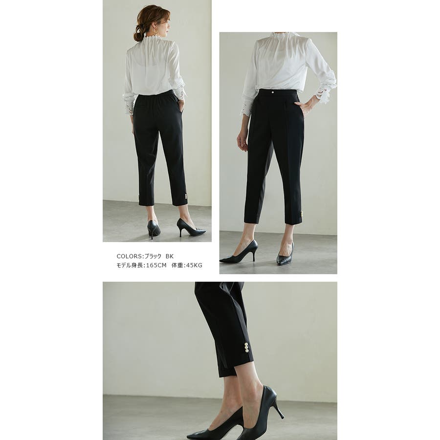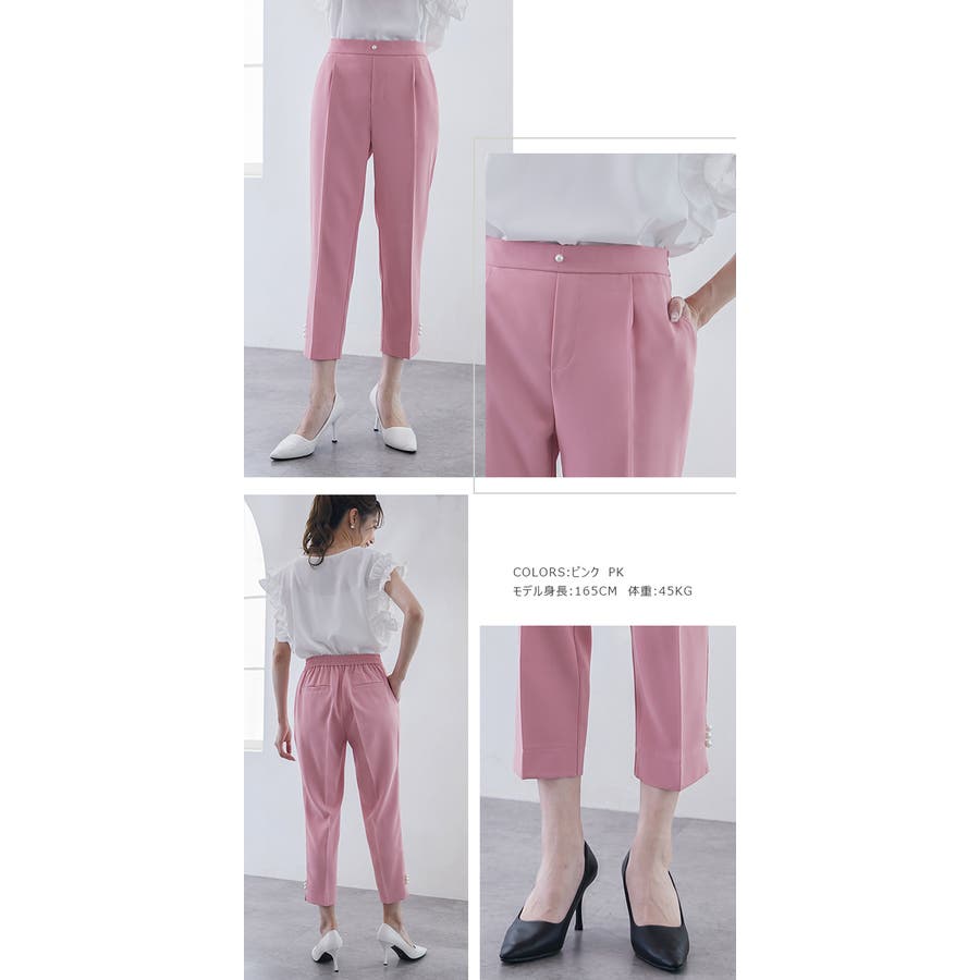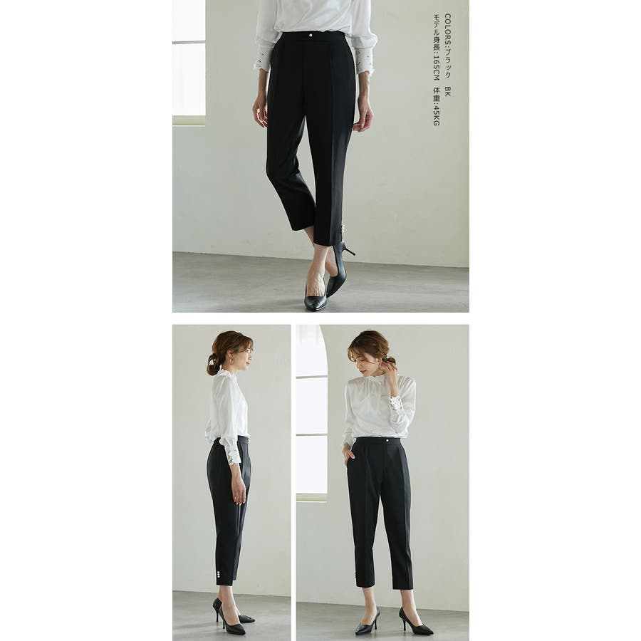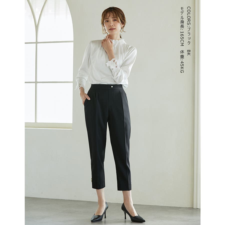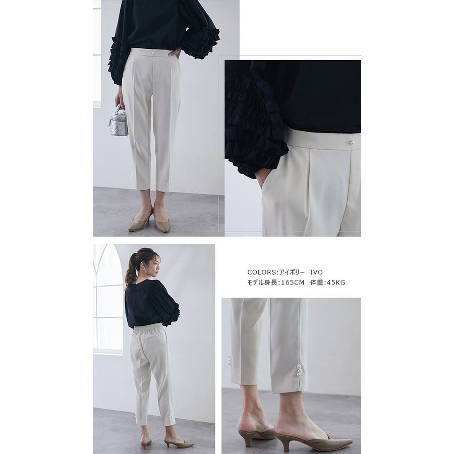 ちらりと見せるフェミニンアクセント“パールスリットテーパードパンツ”