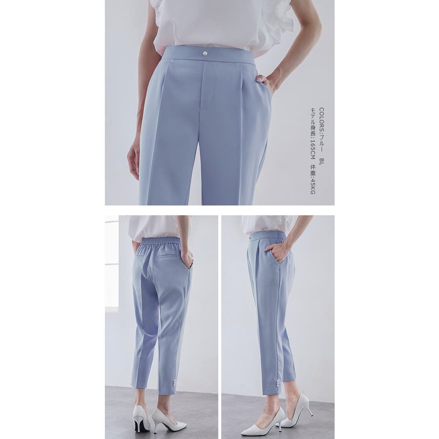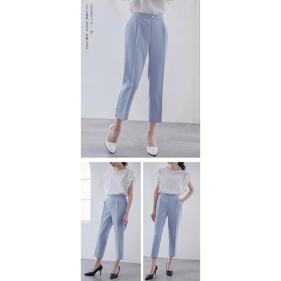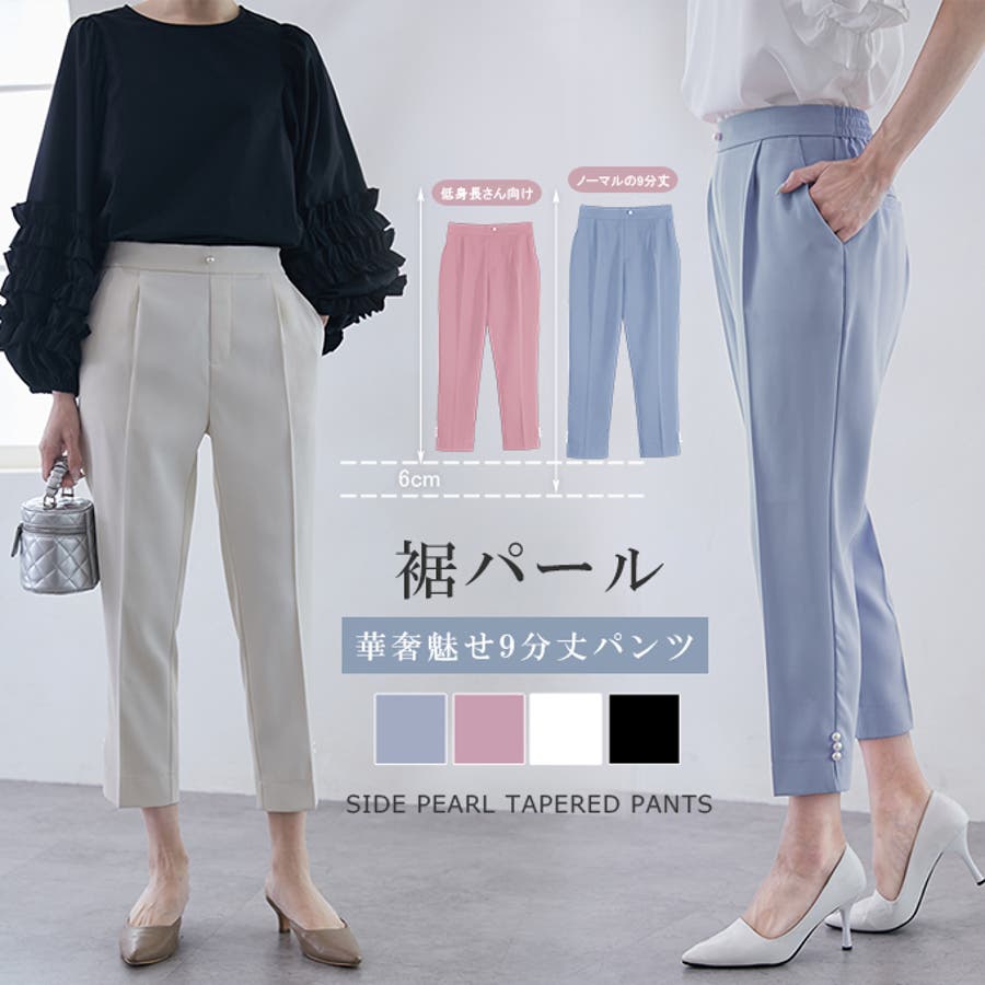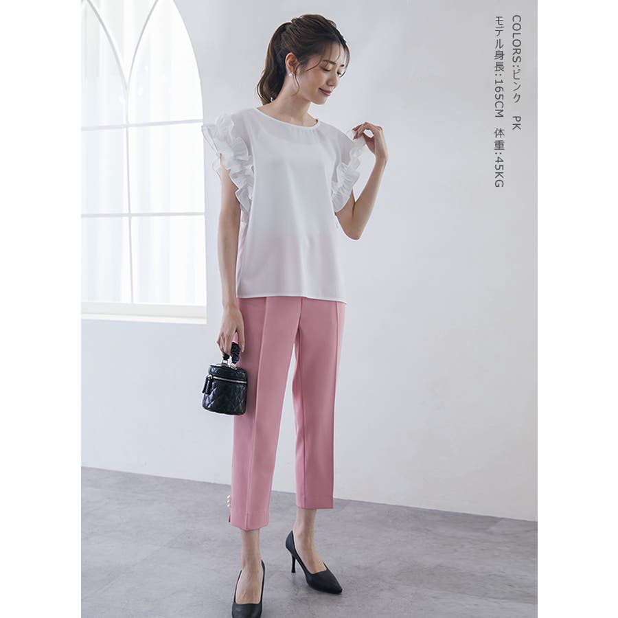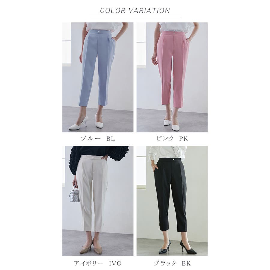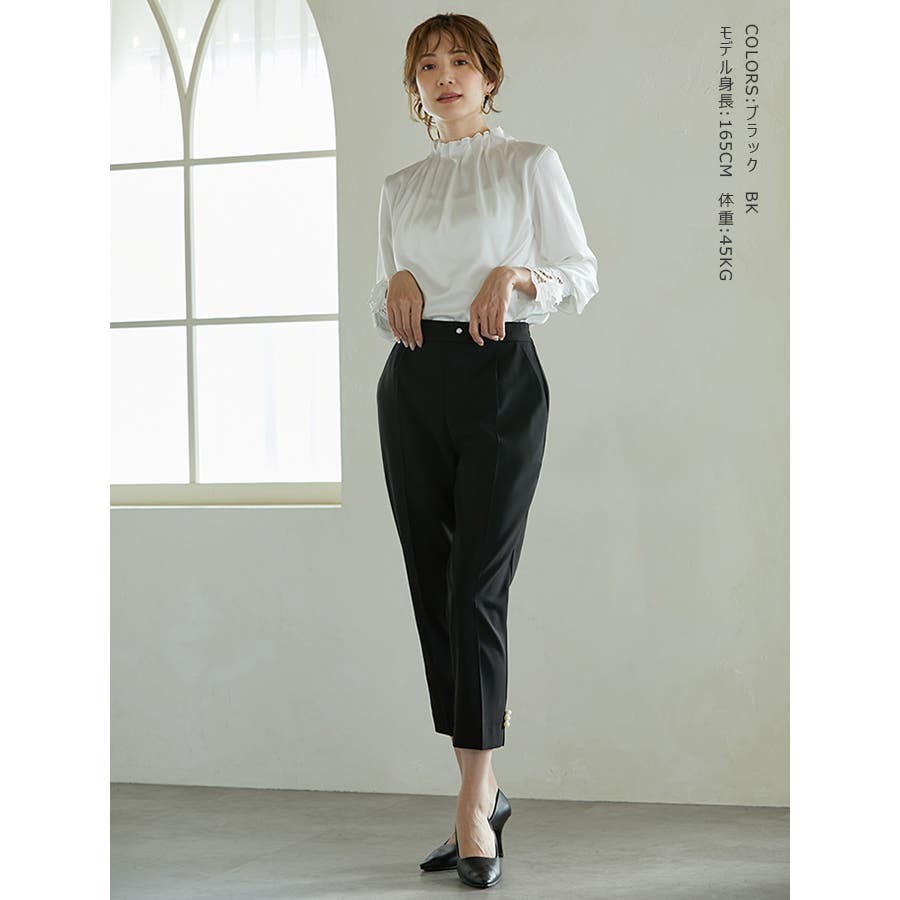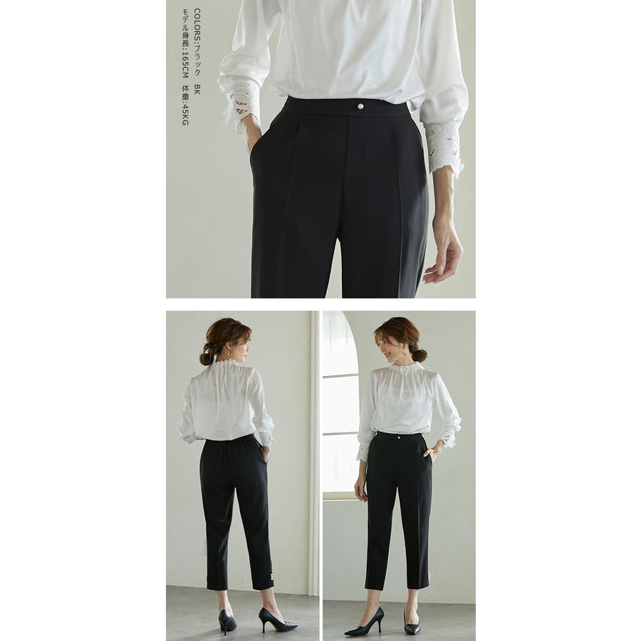 ちらりと見せるフェミニンアクセント“パールスリットテーパードパンツ”