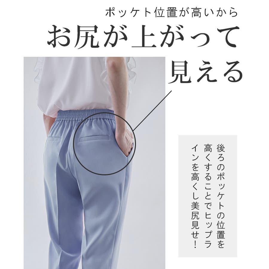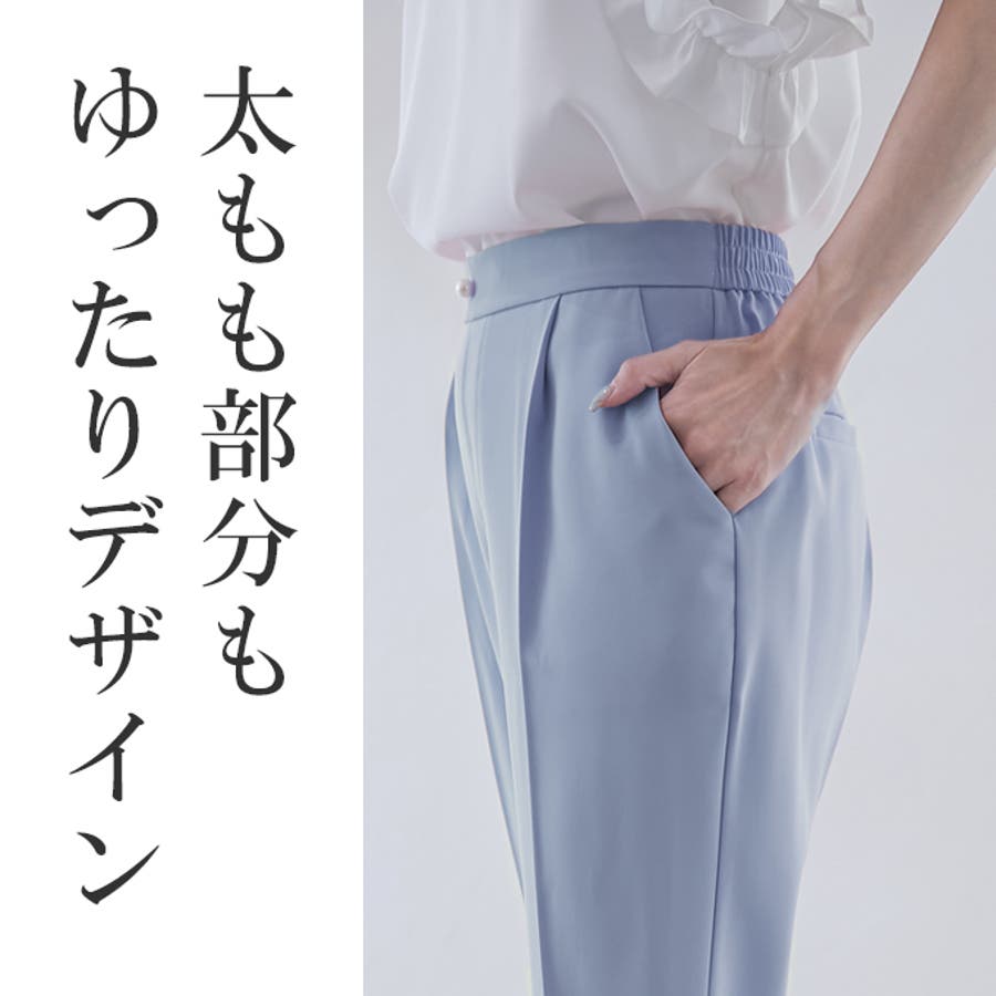 足首に向かって細くなるテーパードシルエットがすっきりとした大人らしい印象に仕上げます。