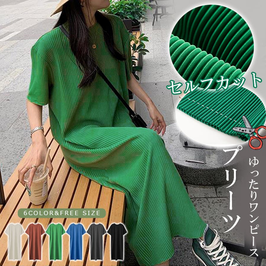 プリーツワンピース セルフカット 夏ワンピース