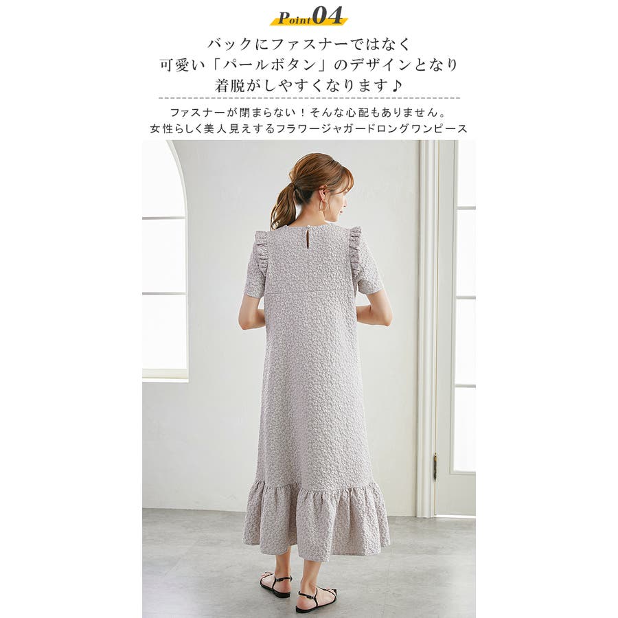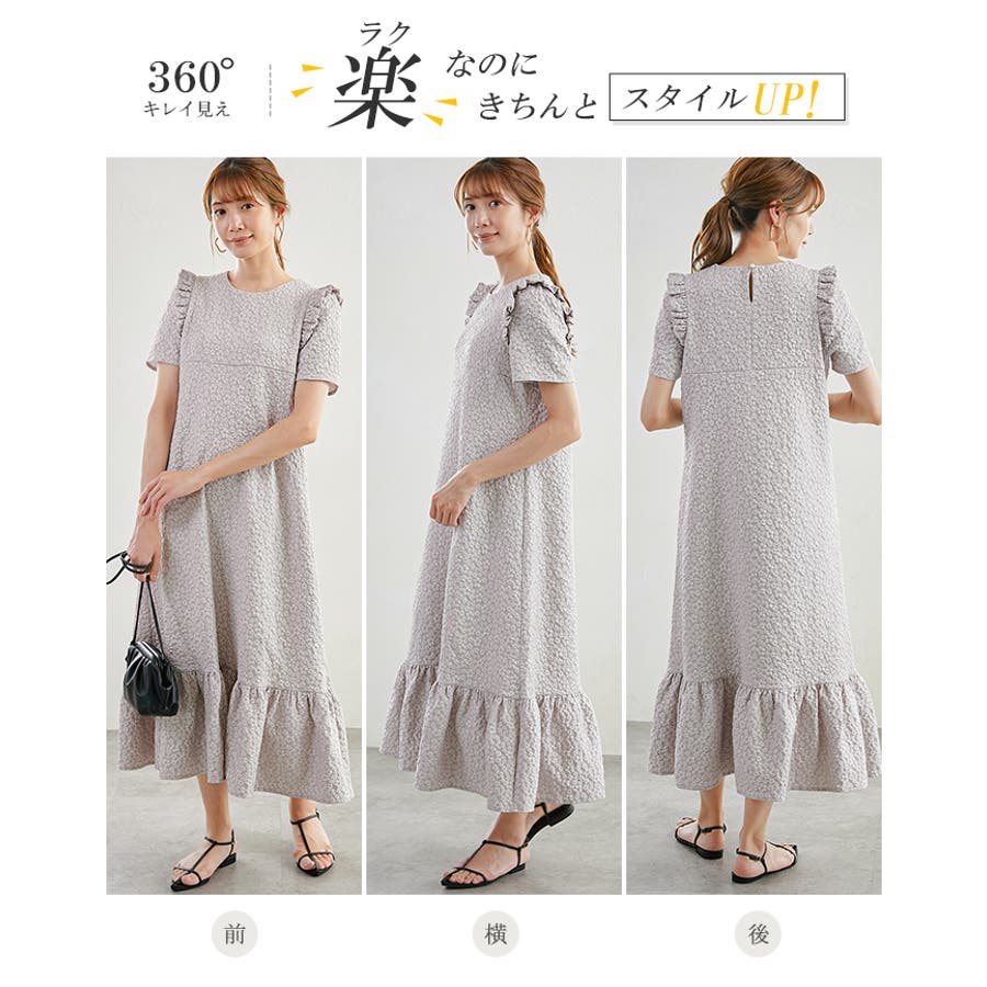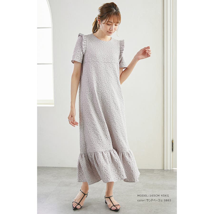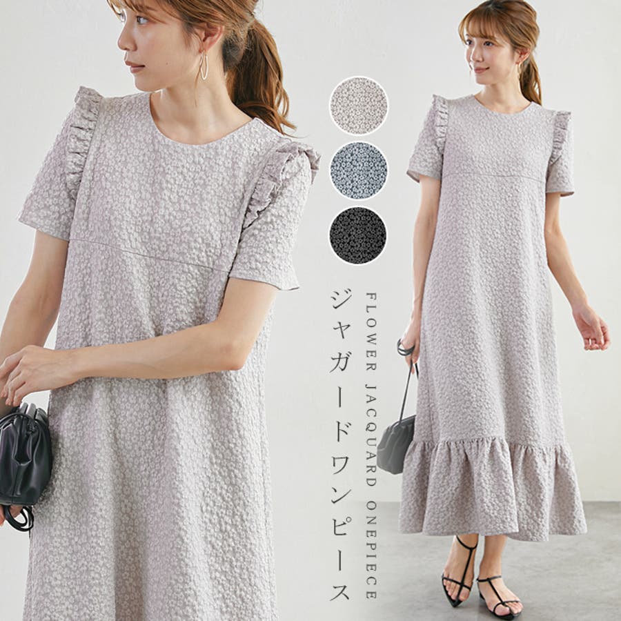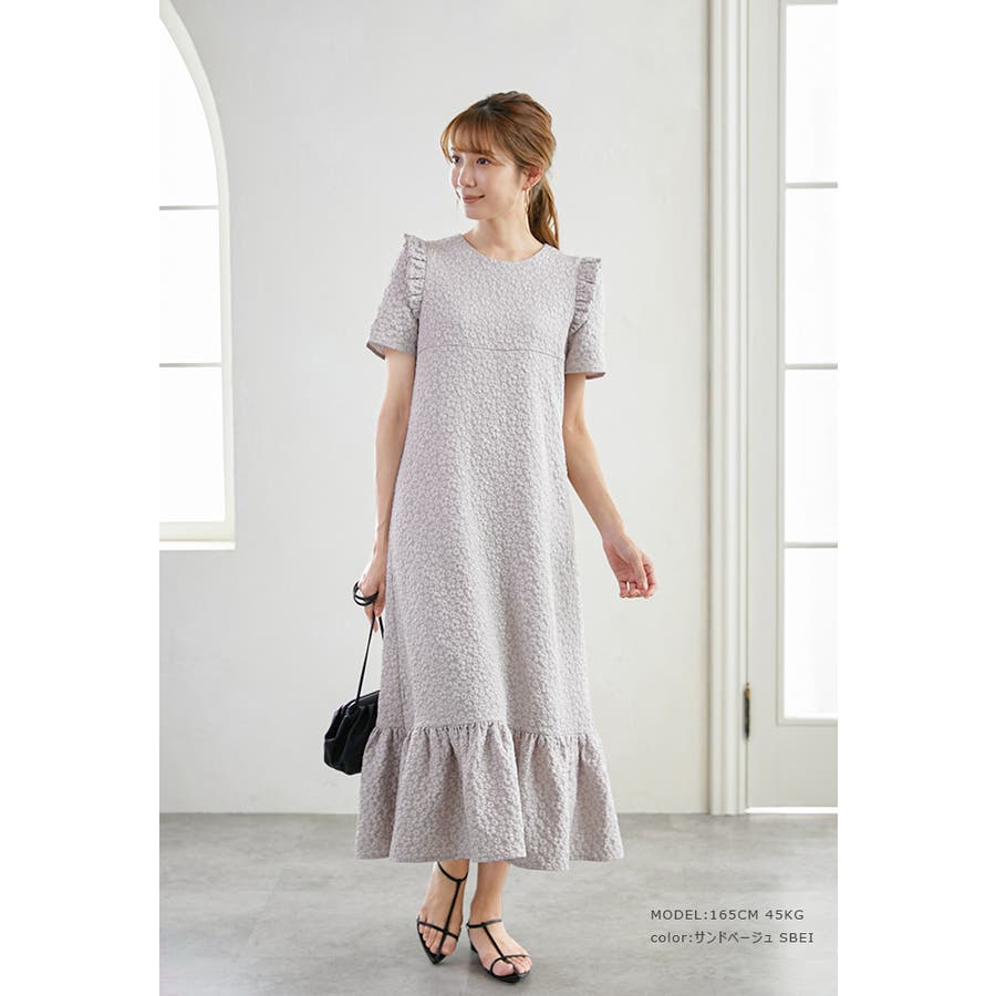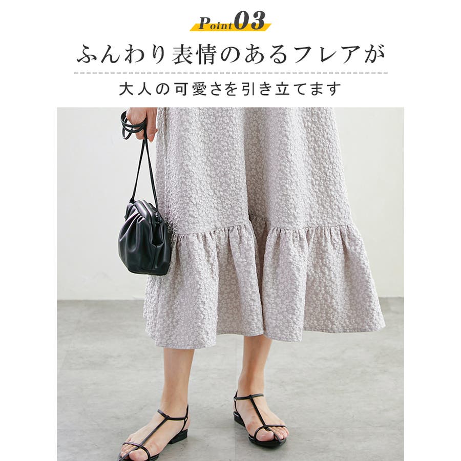 立体的なシルエットが可愛いフラワージャガードロングワンピースが登場。