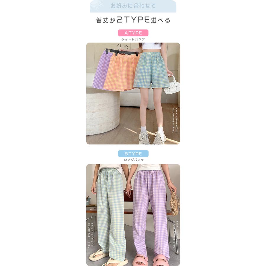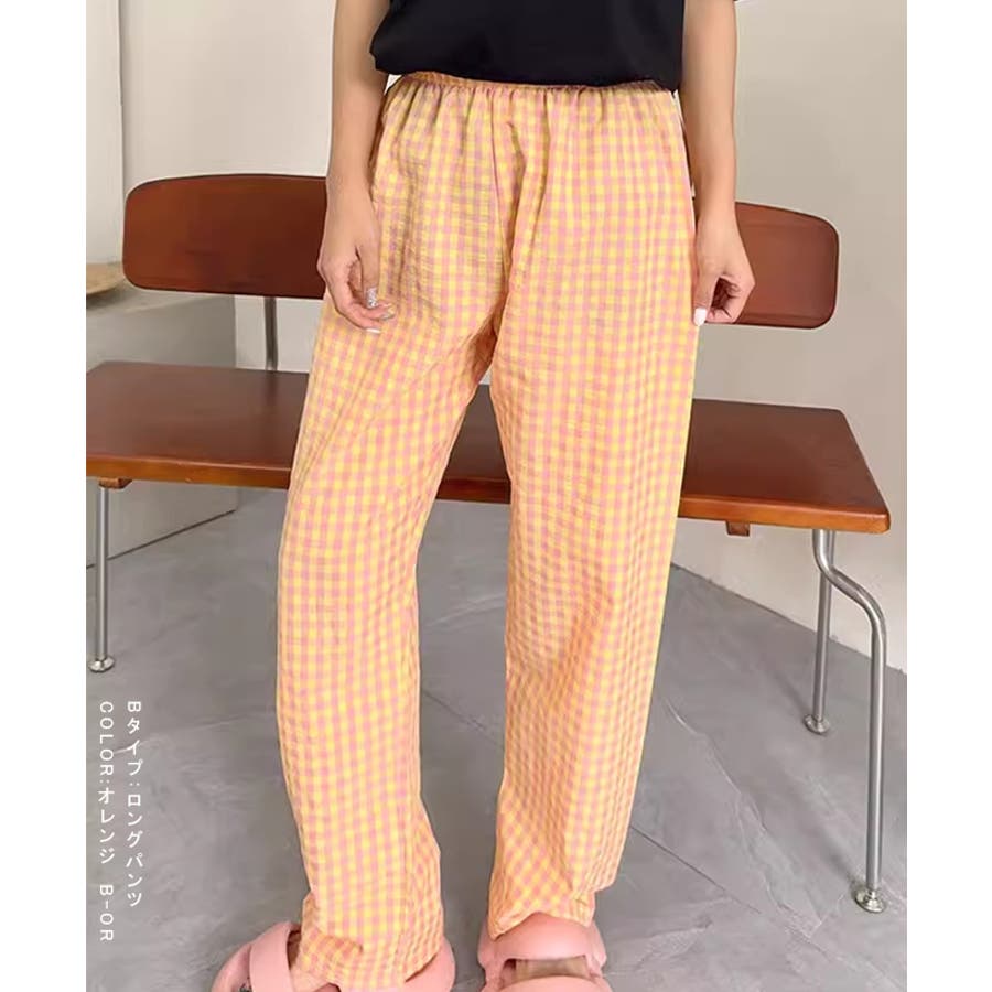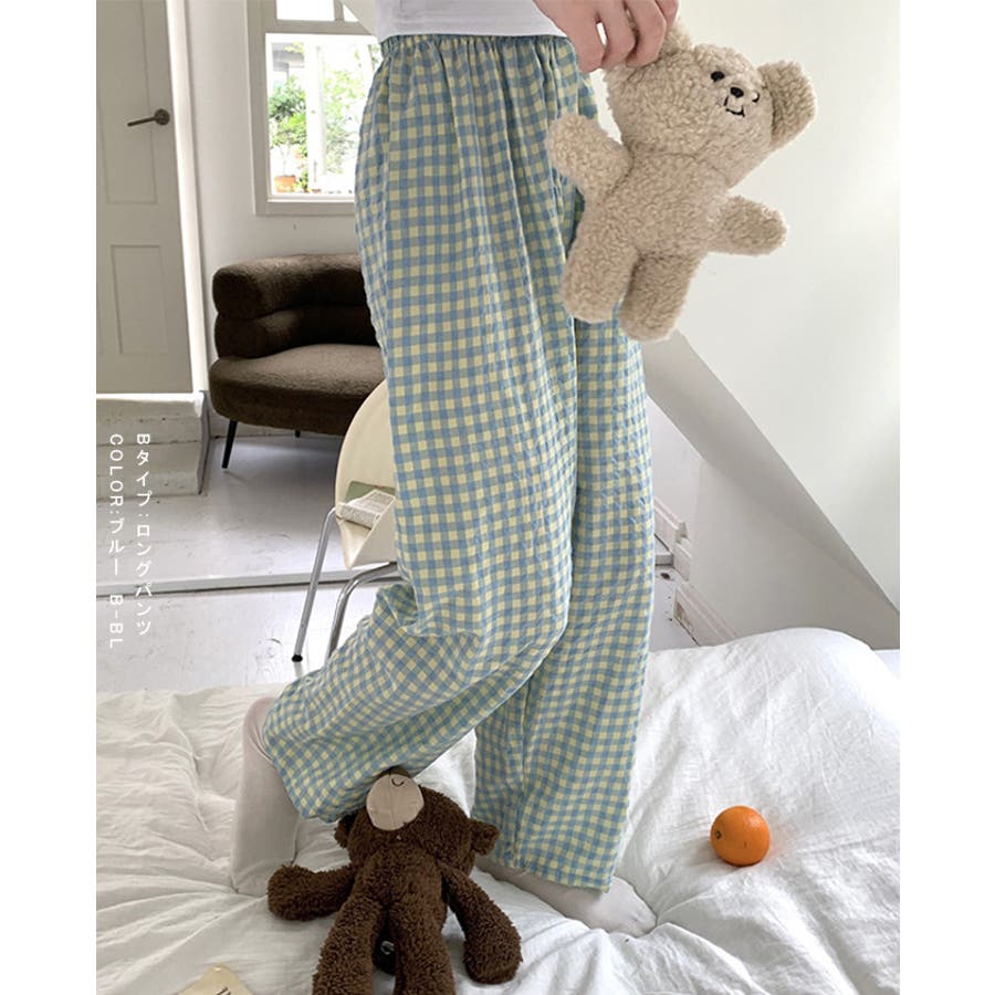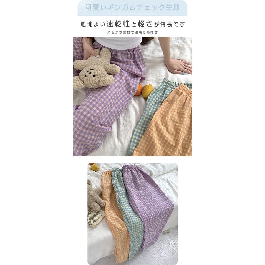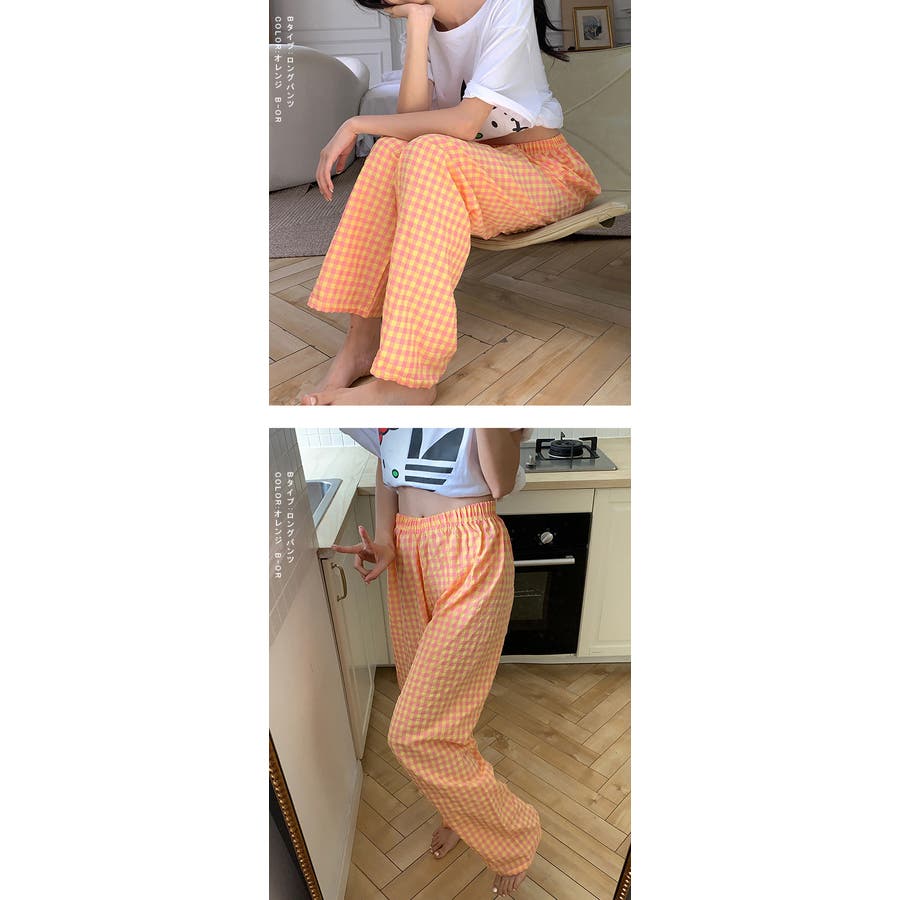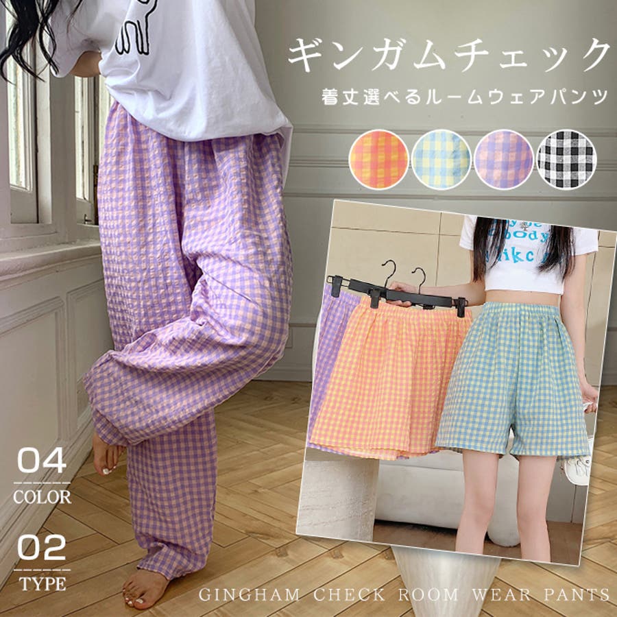 ギンガムチェックが可愛い、着丈選べる☆ルームウェアパンツ