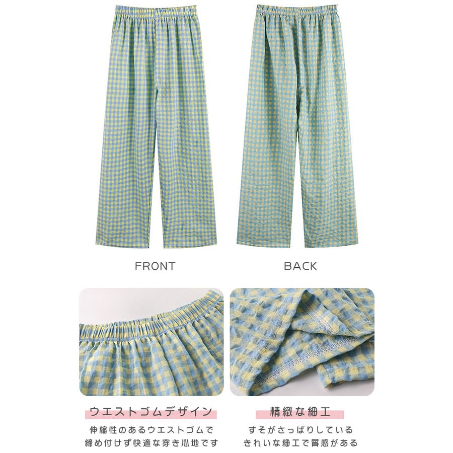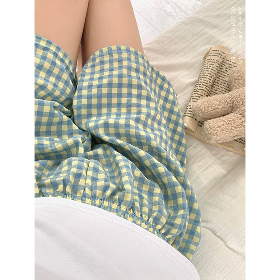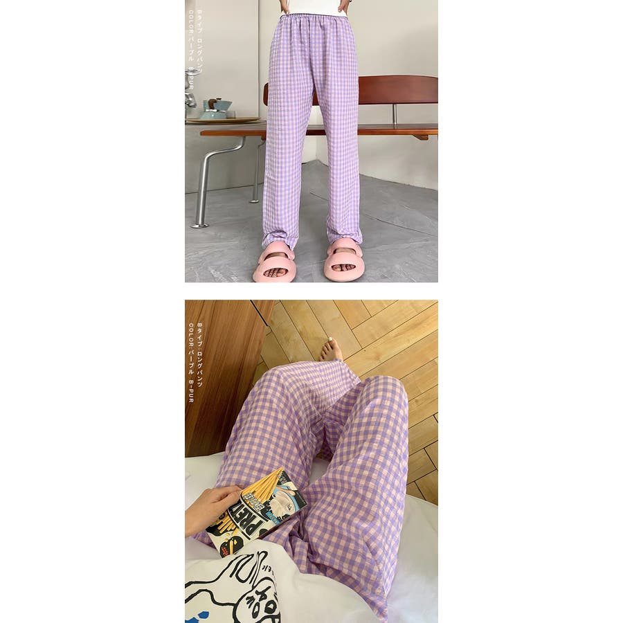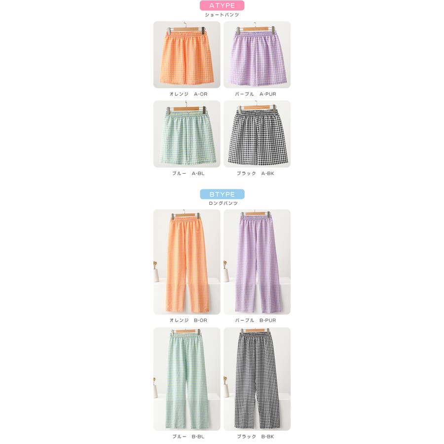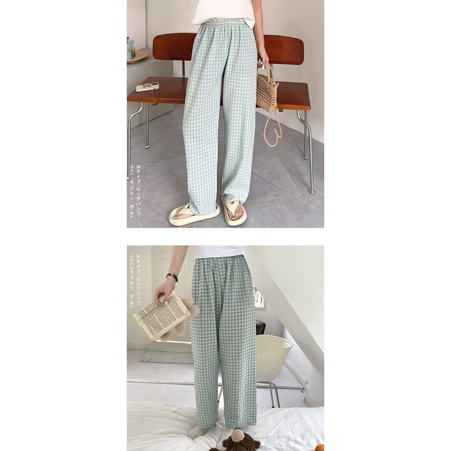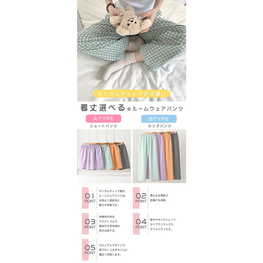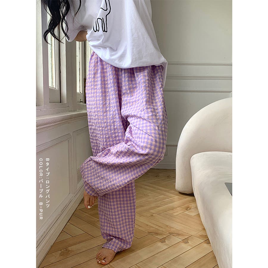 ギンガムチェックが可愛い、着丈選べる☆ルームウェアパンツ