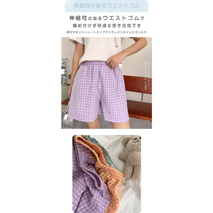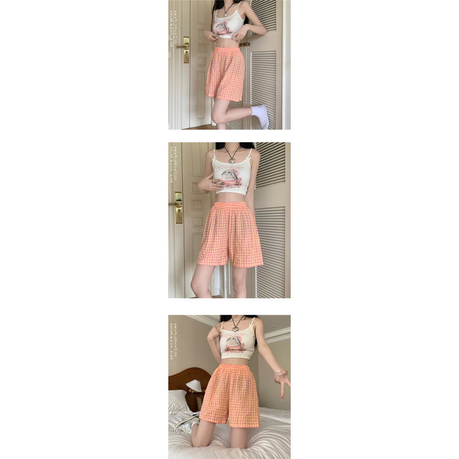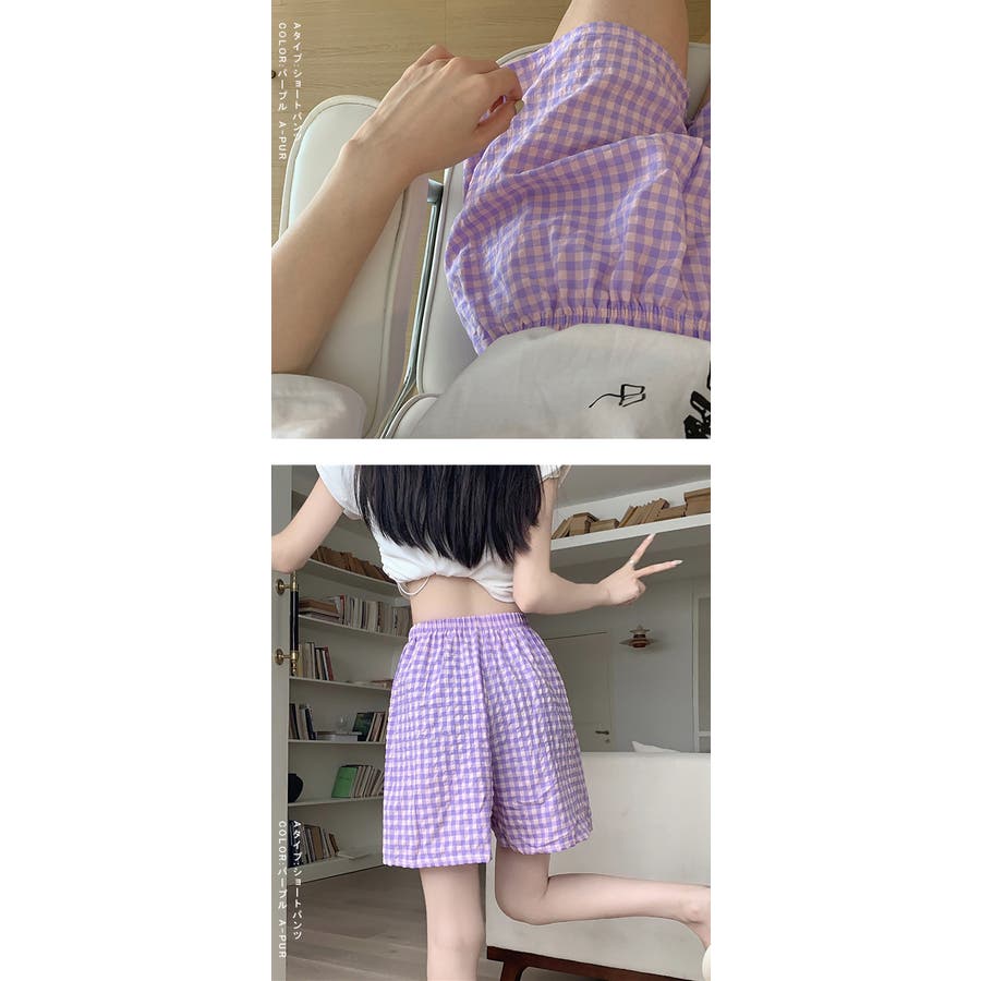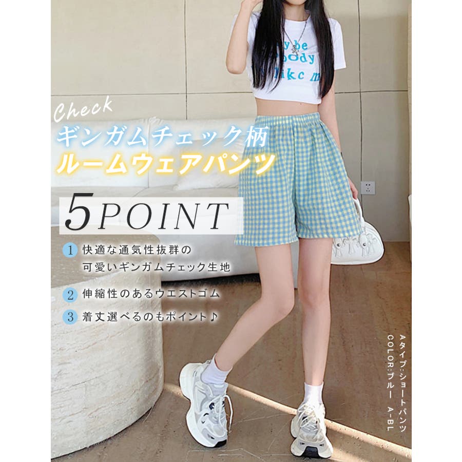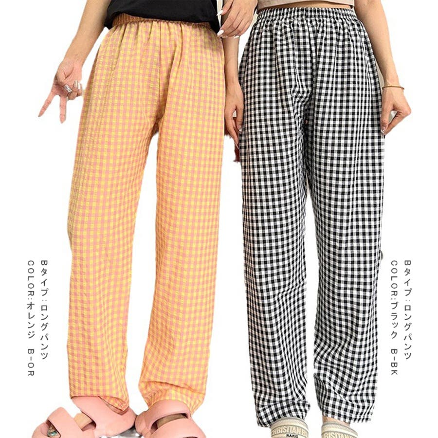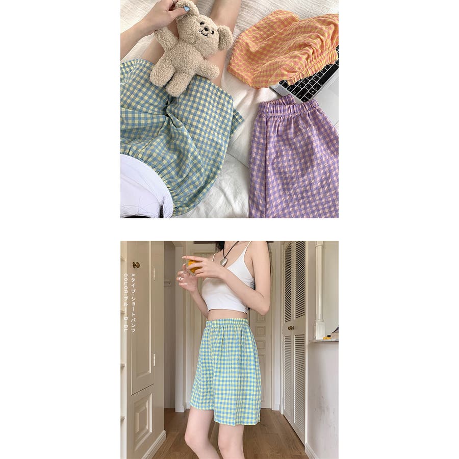 ギンガムチェックが可愛い、着丈選べる☆ルームウェアパンツ
