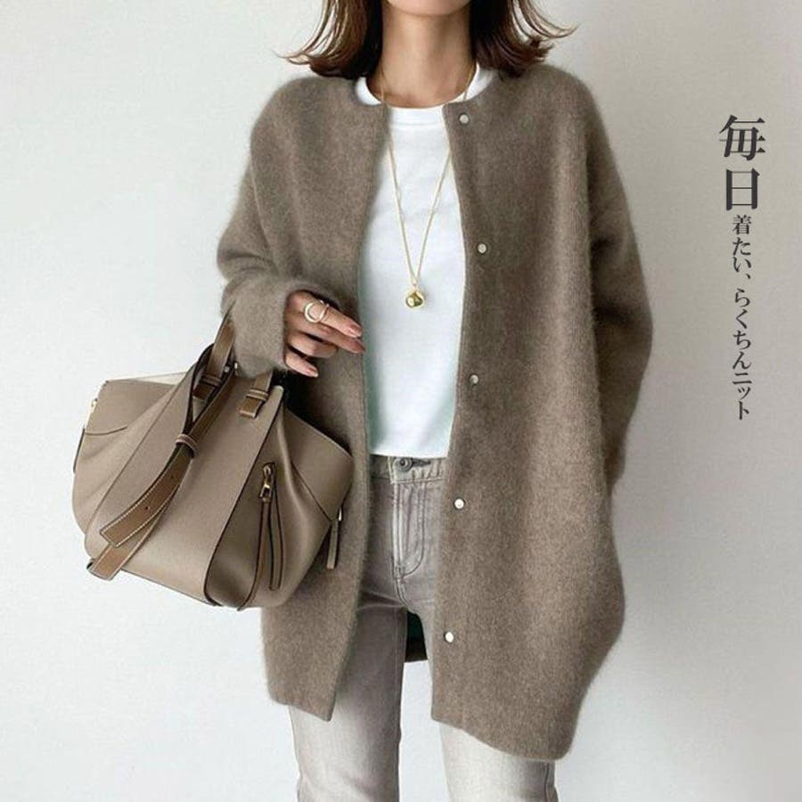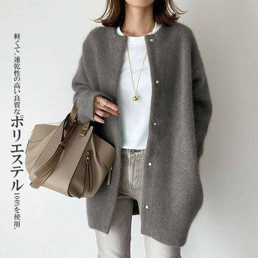 ステンカラーのニットコートは軽やかで快適な着心地がGOOD